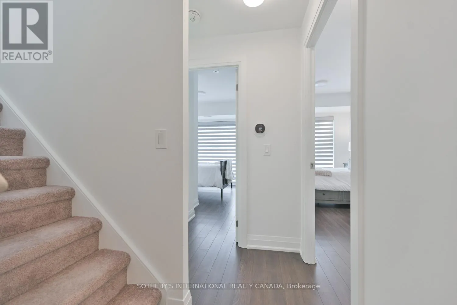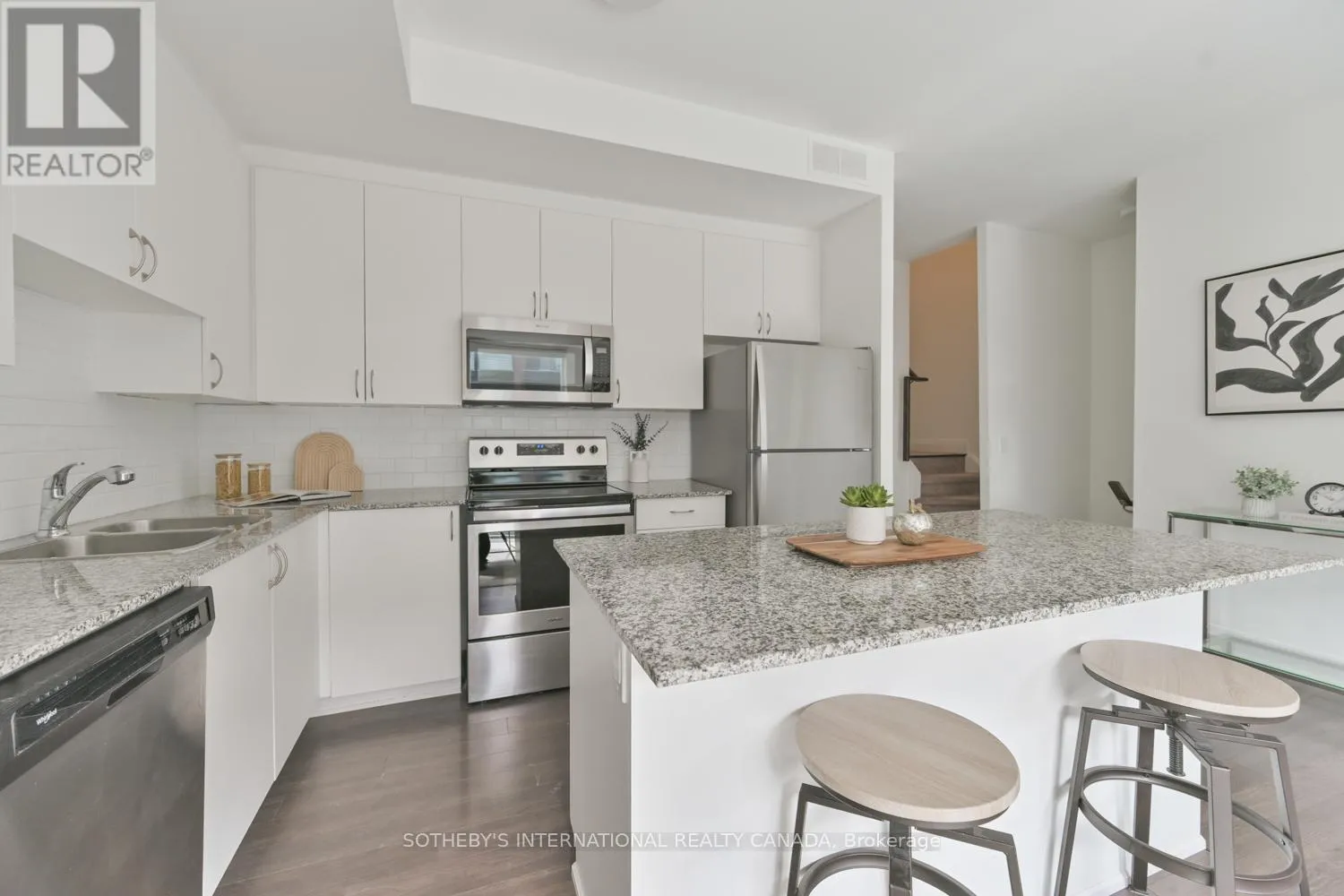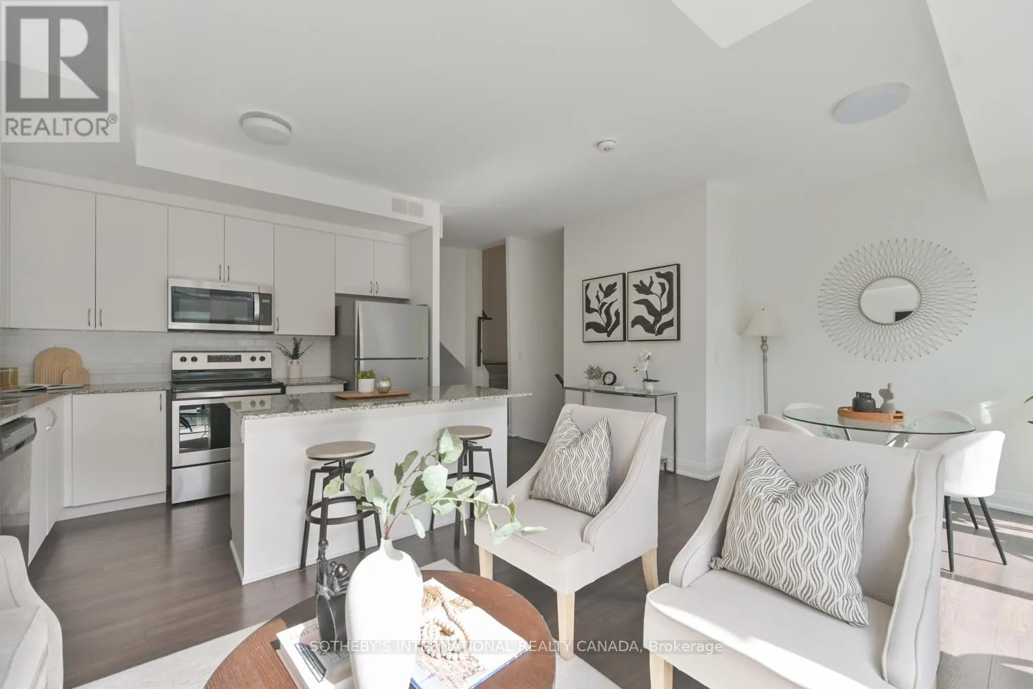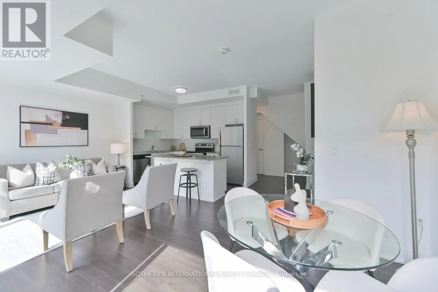Cross Streets: Highway 7 & Kipling Ave. ** Directions: South side of Highway 7, West of Kipling Ave. A rare opportunity to own a newly built stacked condo townhome featuring exceptional outdoor space, including two private balconies and a spectacular rooftop terrace with nearly 400 sq ft of combined outdoor living. With outdoor access from every level, this thoughtfully designed residence blends indoor comfort with effortless outdoor living. The south-facing exposure and floor-to-ceiling windows fills the home with natural light, creating a bright and welcoming atmosphere throughout. The main level features an open-concept kitchen, living and dining area ideal for both everyday living and entertaining. The kitchen is equipped with granite countertops, a subway tile backsplash, centre island and ample cabinetry, while a walkout to the balcony extends the living space outdoors. Laminate flooring and smooth ceilings run throughout, complemented by Hunter Douglas motorized blinds. A convenient 2-piece powder room with ensuite laundry completes the main level. Upstairs, two generously sized bedrooms offer excellent privacy, each with access to their own bathroom. The primary bedroom features a walk-in closet and a private 4-piece ensuite. The second bedroom offers a private balcony and is conveniently located beside the 3-piece hallway bathroom. The expansive south-facing rooftop terrace offers 271 sq ft of private outdoor space, perfect for outdoor dining, entertaining, or lounging in the sun. Additional highlights include 2 tandem parking spaces and an oversized storage locker. Ideally located minutes from Vaughan Metropolitan Centre (VMC), an emerging urban hub with restaurants, retail, parks and public spaces. Enjoy excellent connectivity with quick access to Highway 400, 407 and 427, TTC subway access at VMC and rapid bus transit along Highway 7. (id:27476)