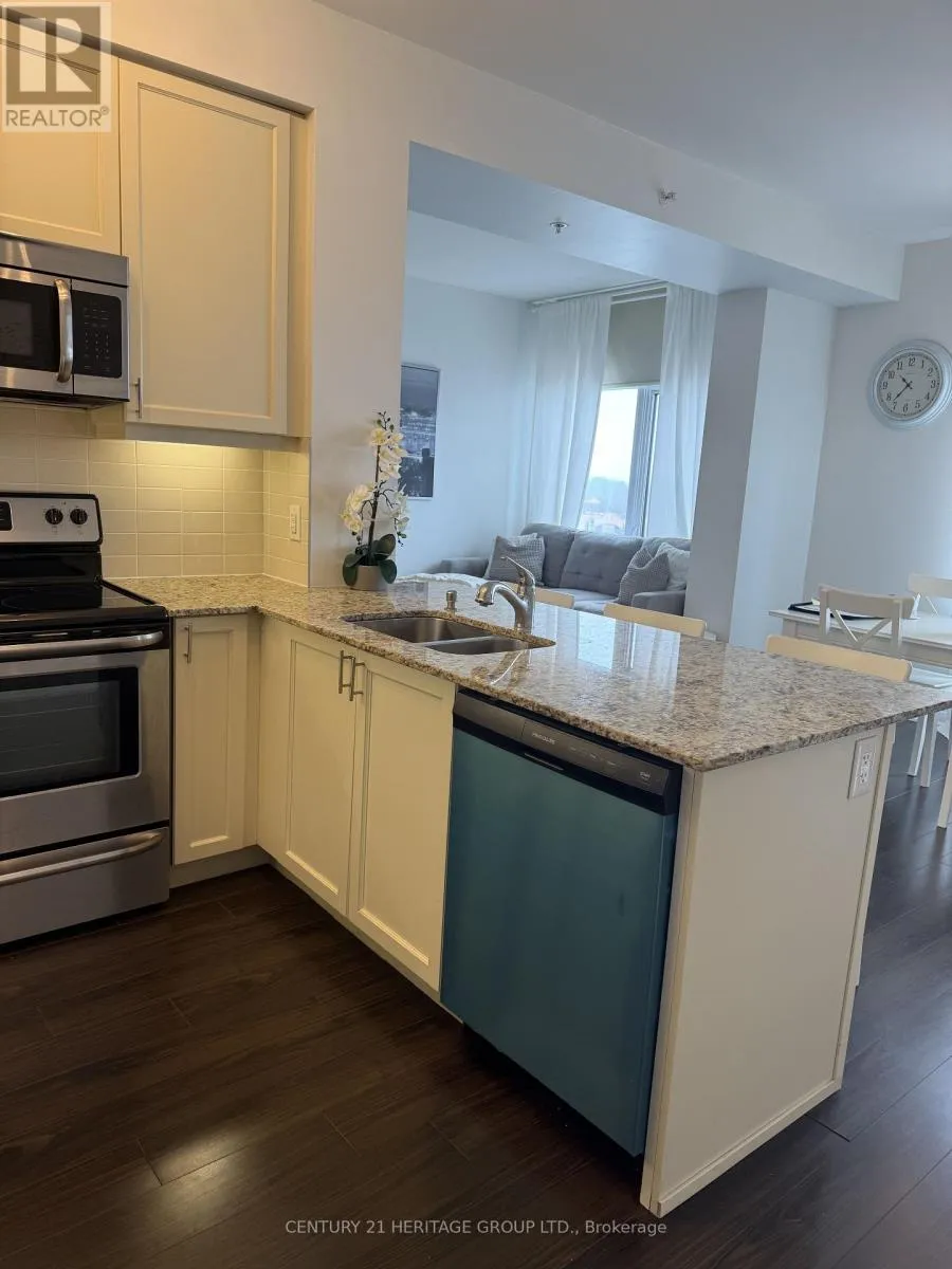 Highway 7 & Martin Grove Rd Welcome to this impeccably clean and move-in-ready fully furnished 1-bedroom sanctuary in the upscale Allegra Condos. Boasting 9-foot ceilings and a preferred south-facing orientation, this unit has natural light all day long. The functional open-concept layout flows seamlessly to a large private balcony perfect for your morning coffee or evening wind-down. The kitchen features premium granite countertops, a custom backsplash, stainless steel appliances, and a convenient breakfast bar for casual dining. The primary bedroom is generously sized featuring a dream walk-in closet and large walkout to the balcony. Beautiful laminate flooring throughout and a contemporary 4-piece bathroom with an upgraded vanity. It comes with in-suite laundry, one parking space, and one locker. Allegro Condos have 24-hour concierge and security for peace of mind, fitness centre and party rooms. Everything you need is at your doorstep. Located in a prime area with immediate access transit, highways, premier shopping and diverse dining options. One of the most well-maintained buildings in the area with high-end finishes. (Unit can be leased unfurnished) (id:27476)