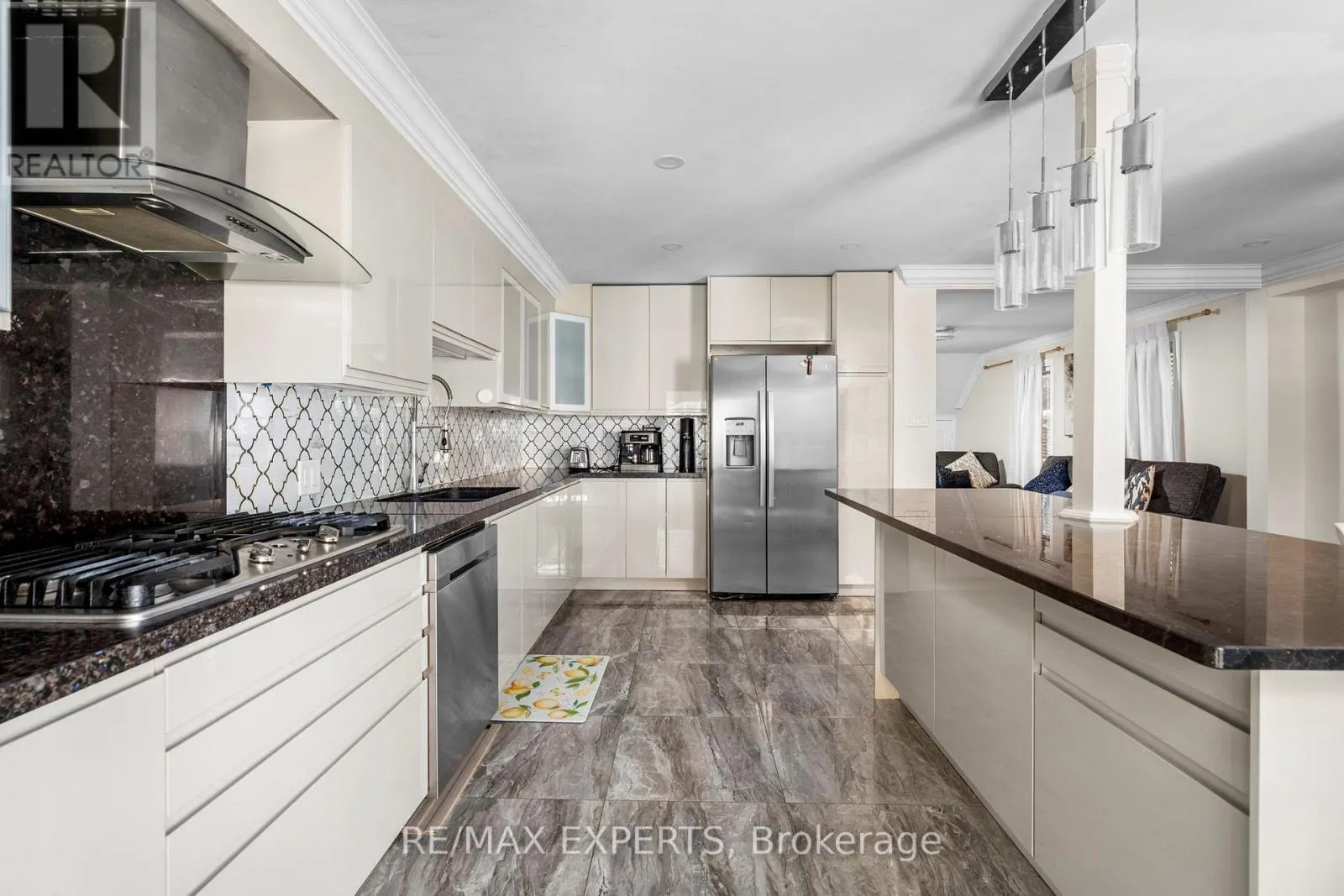 Cross Streets: Keele St. & Teston Rd. ** Directions: SW corner pocket of Keele/Teston. Well-kept & recently renovated semi-detached home in a quiet, private pocket of Maple with wide streets and a family-friendly feel. This home offers 4 bedrooms above grade (3 on the second floor plus an additional room), along with convenient second-floor laundry. The primary bedroom features a walk-in closet and a 4-piece ensuite, while the other two second-floor bedrooms share a full 4-piece bath. Approximately $50,000 invested in quality upgrades throughout the home, highlighted by a rare oversized open-concept kitchen (larger than typically found in similar properties) with pot lights, a large generous island, and a walkout to the backyard. Thoughtfully designed as the heart of the home, the kitchen flows seamlessly into the dining area, creating a cohesive & inviting space well-suited for both everyday family living and refined entertaining. Finished basement includes 2 additional bedrooms, a full bathroom, second kitchen, and its own laundry area-ideal for extended family or added flexibility. Situated on a 25' x 112' lot with plenty of windows for natural light. Total parking for up to7 vehicles, including 1 garage space. Conveniently located close to schools, parks, transit, grocery stores, Highway 400, and Canada's Wonderland. (id:27476)