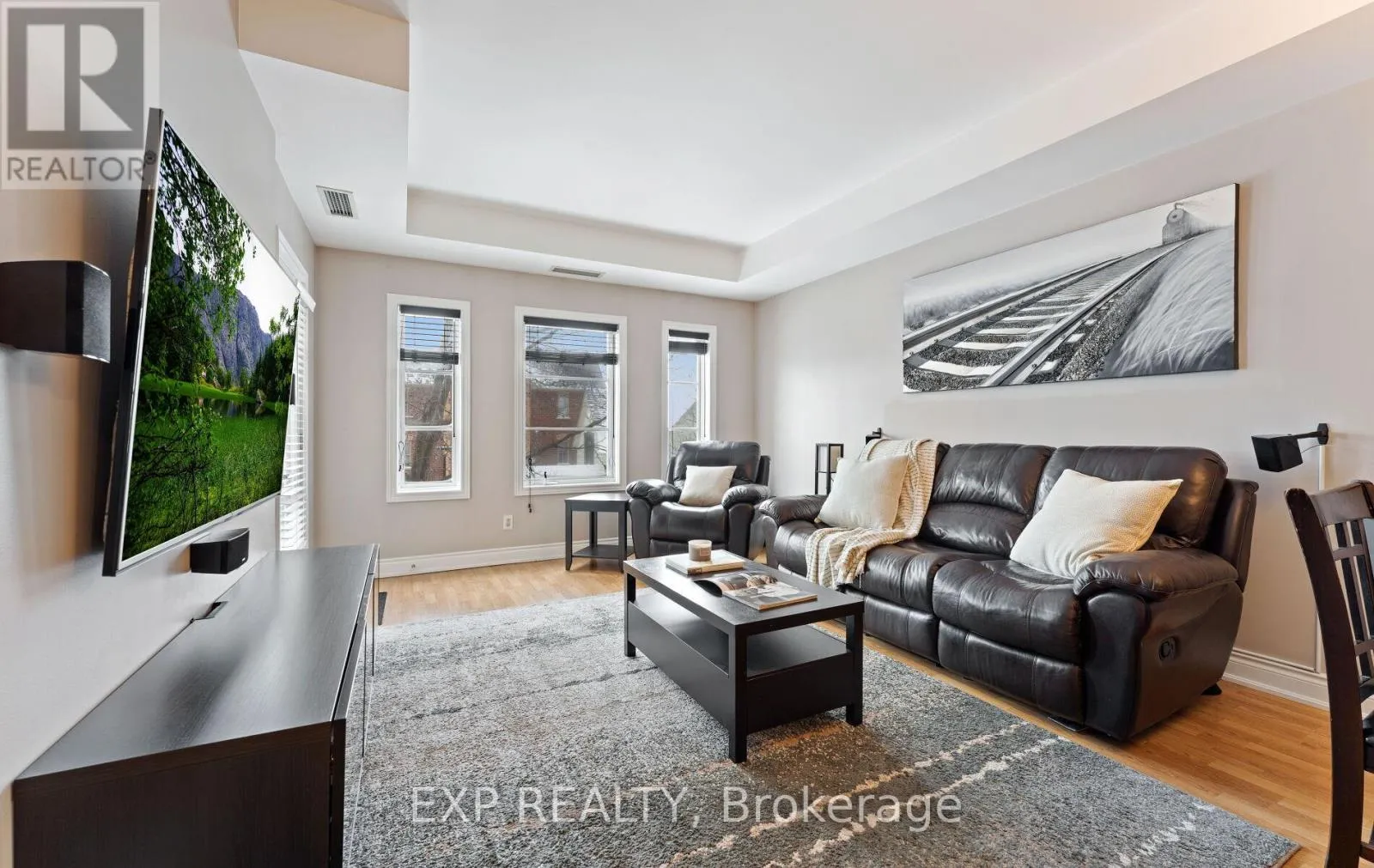 Cross Streets: Keele St. / Major Mackenzie Dr. ** Directions: East side of Keele St, South of Major Mackenzie Dr. At 850 squarefeet, this impeccably maintained corner suite offers a level of space and comfort that is nearly impossible to find in today's "shoebox" condo market. The sun-drenched, south-facing sanctuary features a sprawling living room, complete with built-in 5.1 surround sound, that easily fits a large sectional and a full dining set.The kitchen boasts granite counters, a 3M Reverse Osmosis water system, and newer full-size stainless steel LG appliances. Retreat to a primary bedroom that comfortably fits a queen bed plus a full workstation. With 9-ft smooth ceilings, a spacious hallway complete with wainscoting, and a private balcony with custom decking, this home feels like a boutique residence rather than just a floor plan.This exclusive 24-unit building is perfectly positioned for both lifestyle and commuting. You are steps away from the iconic Maple Bakery, North Maple Regional park, and the GO Station. This spacious, upgraded residence offers the rare combination of significant square footage and a quiet, well-managed community in the heart of Maple. Includes 1 underground parking space and an oversized heated locker conveniently located on the top floor. (id:27476)