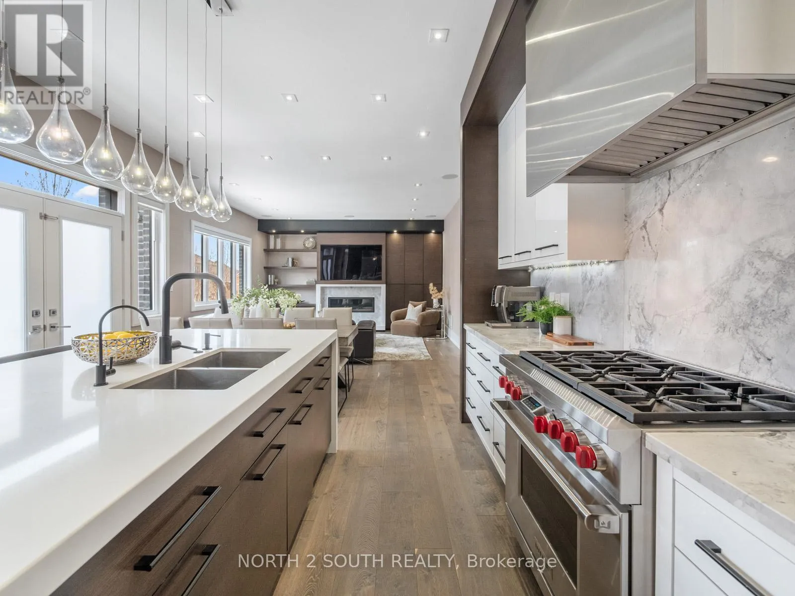 Cross Streets: DUFFERIN/APPLE BLOSSOM. ** Directions: From Highway 7, North on Dufferin St & East on Apple Blossom Dr, North on Kylemount. Set On A Rare 75' Wide Lot In Prestigious Thornhill Woods, 36 Kylemount Court Is A Fully Custom Built Residence Showcasing Elevated Design, Premium Finishes, And Resort Style Outdoor Living. Boasting over 5386 sqft of total living space. A Covered Porch Double Entry Doors Leads Into A Home Featuring 10' Ceilings, 7" White Oak Hardwood Floors, 8' Solid Doors, Glass Railings, Italian Porcelain Slab Walls, Italian Mosaic Staircase Accents, And Custom Millwork And Built-Ins Throughout. Every Space Reflects Exceptional Craftsmanship. The Chef's Kitchen Features Quarter cut White Oak Cabinetry, Quartz Centre Island, Marble Countertops And Backsplash, Custom Stainless Steel Hood, Appliance Garage, Double Pull Out Pantry, Water Filtration, And Premium Appliances Including A Wolf Dual Fuel Stove, 72" Icon Fridge And Freezer, And Paneled Asko Dishwasher. A Walkout Leads To A Glass Railed Deck For Seamless Entertaining. The Family Room Offers A Built-In Gas Fireplace With Custom Marble Surround, Phillip Jeffries Grasscloth Wallpaper, Custom Wall Unit, Built-In Speakers, And 75" Built-In Samsung TV. Living, Dining, And Office Spaces Feature Coffered Ceilings, Panelled Walls, Pot Lights, And Oversized Windows. The Powder Room Includes A Geberit Wall Hung Toilet. All 4 Bedrooms Offer Hardwood Floors, Walk-In Closets With Custom Organizers, And Private Ensuites. The Primary Suite Features A Custom Built-In Wall Unit And A Spa Inspired 5 Piece Ensuite With Freestanding Jacuzzi Air Tub. The Finished Lower Level Includes A Home Theatre With Projector And Built-In Speakers, Recreation Area, Exercise Room, Nanny Suite With Ensuite, Powder Room, Storage, And Rough-In For Future Kitchen. The Backyard Retreat Features A Salt Water Pool With Built-In Hot Tub And Waterfalls, Trex Decking, Coverstar Automatic Safety Cover, Cedar Pergola, Outdoor Speakers, Irrigation, And Landscape Lighting. Complete With Surveillance System And 2 Car Garage, This Is A Rare Luxury Offering In Thornhill Woo (id:27476)