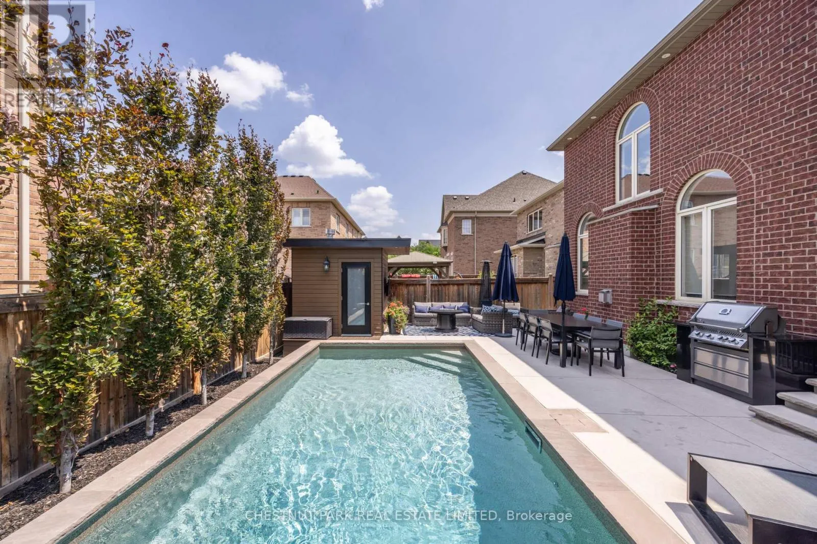 Cross Streets: Major Mackenzie and Poetry Road. ** Directions: North of Major Mackenzie, East of Poetry Rd. Experience refined living in prestigious Vellore Village with this meticulously maintained residence, where elegance, comfort, and thoughtful upgrades come together. Perfectly situated near top schools, parks, shopping, transit, and Vaughan's vibrant downtown, this home balances sophisticated design with everyday convenience. Inside, rich maple hardwood floors, detailed millwork, and an open-to-above family room create a dramatic yet welcoming atmosphere. The modern kitchen features quartz counters and a glass/ceramic backsplash, flowing seamlessly into the coffered dining room with built-ins. Main-floor laundry with exterior and garage access and upgraded eight-foot entry doors add both function and style. Upstairs, the private primary suite offers dual closets and a spa-inspired ensuite, while three additional bedrooms feature custom organizers. Two bedrooms with a shared bath, and the fourth enjoys its own ensuite. Premium window coverings, including an automated high family-room shade, complete the level. The fully finished basement provides a spacious recreation area, gym, office, three-piece bath, cold cellar, and abundant organized storage. Step outside to a resort-style backyard designed in 2021. The saltwater pool is fully automated with a rare safety cover, surrounded by patterned concrete, mature privacy trees, and landscape lighting. An outdoor oasis with built-in gas BBQ and a dedicated pool shed with premium storage complete this private retreat. Additional highlights include a double-car epoxy-finished garage with heavy-duty wall storage, four-car driveway, exterior security cameras, smart thermostat, HRV system, and 200-amp electrical service. This home is a rare offering in one of Vaughan's most desirable neighbourhoods, combining sophisticated interiors with an unmatched backyard oasis-a true life. (id:27476)