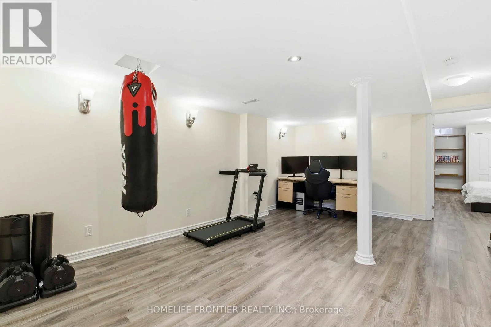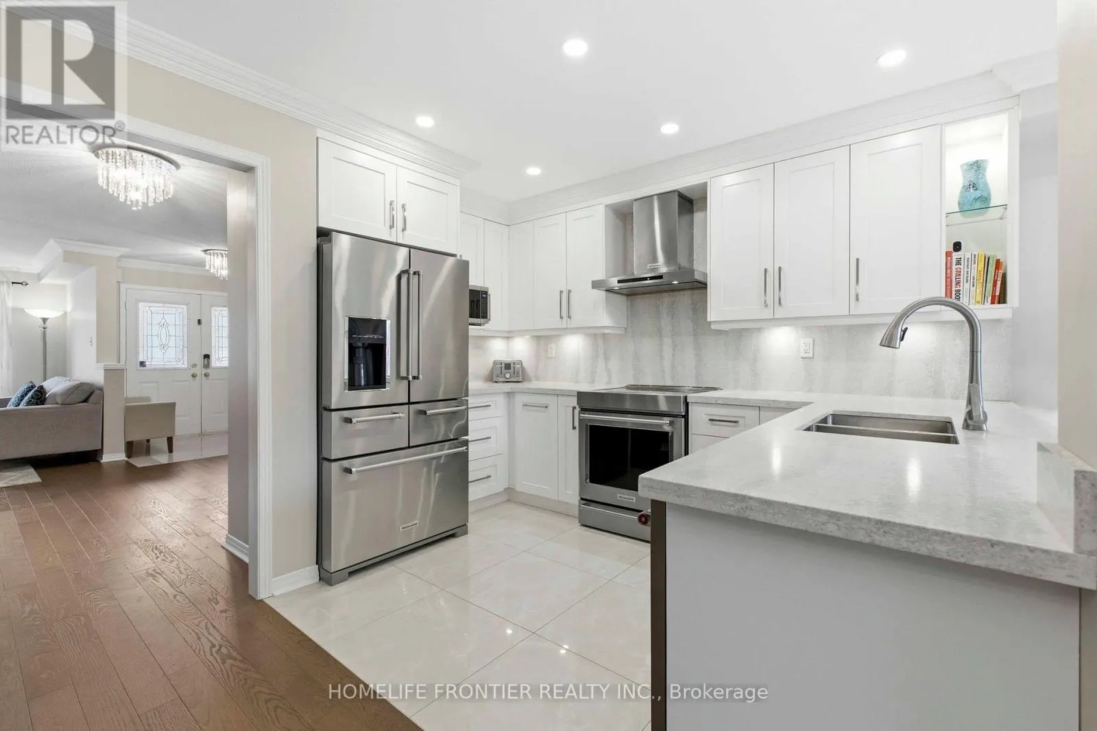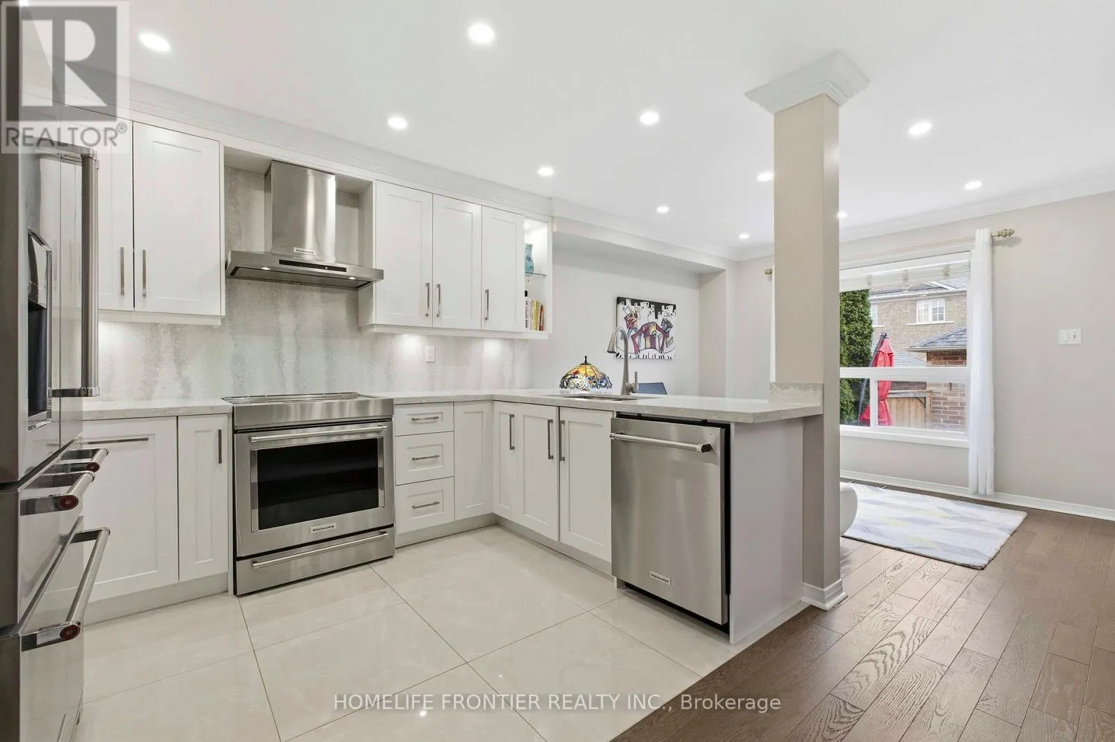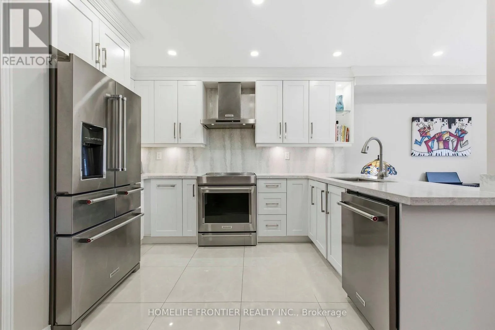 Dufferin/Summeridge Welcome To This Beautifully Upgraded 2-Storey Freehold Townhome In The Highly Sought-After Thornhill Woods Community. Featuring 3+1 Bedrooms, A Rare Full 2-Car Garage, And A Finished Basement, This Home Offers The Perfect Blend Of Comfort, Functionality, And Modern Upgrades. The Main Floor Showcases Newer Upgraded Hardwood Flooring And Tiles, Crown Moulding, Updated Light Fixtures Throughout, And LED Pot Lights In The Kitchen And Breakfast Area. A Custom-Designed Closet With Built-In Organizer Is Ideally Situated Between The Garage/Rear Entry And Main Living Space For Added Functionality. The Stylish Kitchen Is Equipped With High-End KitchenAid Stainless Steel Appliances, Granite Countertops, And Backsplash. Enjoy Added Comfort With An Ecobee Smart Thermostat And A Stunning Amantii 3-Sided Built-In Electric Fireplace, Creating A Warm And Inviting Living Space. An Elegant Oak Staircase With Iron Pickets Leads To The Upper Level, Where You'll Find Spacious Bedrooms And Updated Bathrooms Featuring Upgraded Vanities And Faucets Throughout. The Finished Basement Adds Valuable Living Space With A Rec Room, Additional Bedroom, And Office/Gym Area, Along With Newer Upgraded Laminate Flooring. Major Mechanical And Energy-Efficient Upgrades Include A Carrier High-Efficiency Furnace And Heat Pump (2022), Rinnai Tankless Water Heater (2022), Solar Panels (2019) Providing Minimal To No Electricity Costs In Summer Months, Updated Roof (2019), And R60 Attic Insulation (2019).The Backyard Has Been Professionally Leveled And Enhanced With A Privacy Fence, Additional Access Door, And An Extended Patio Connecting To The Garage - Ideal For Outdoor Enjoyment. Conveniently Located Close To Top-Rated Schools, Parks, Community Centre, Pool, Library, Shopping, And Transit. A Truly Turn-Key Home In A Fantastic Family-Friendly Neighbourhood - Don't Miss This Opportunity! (id:27476)