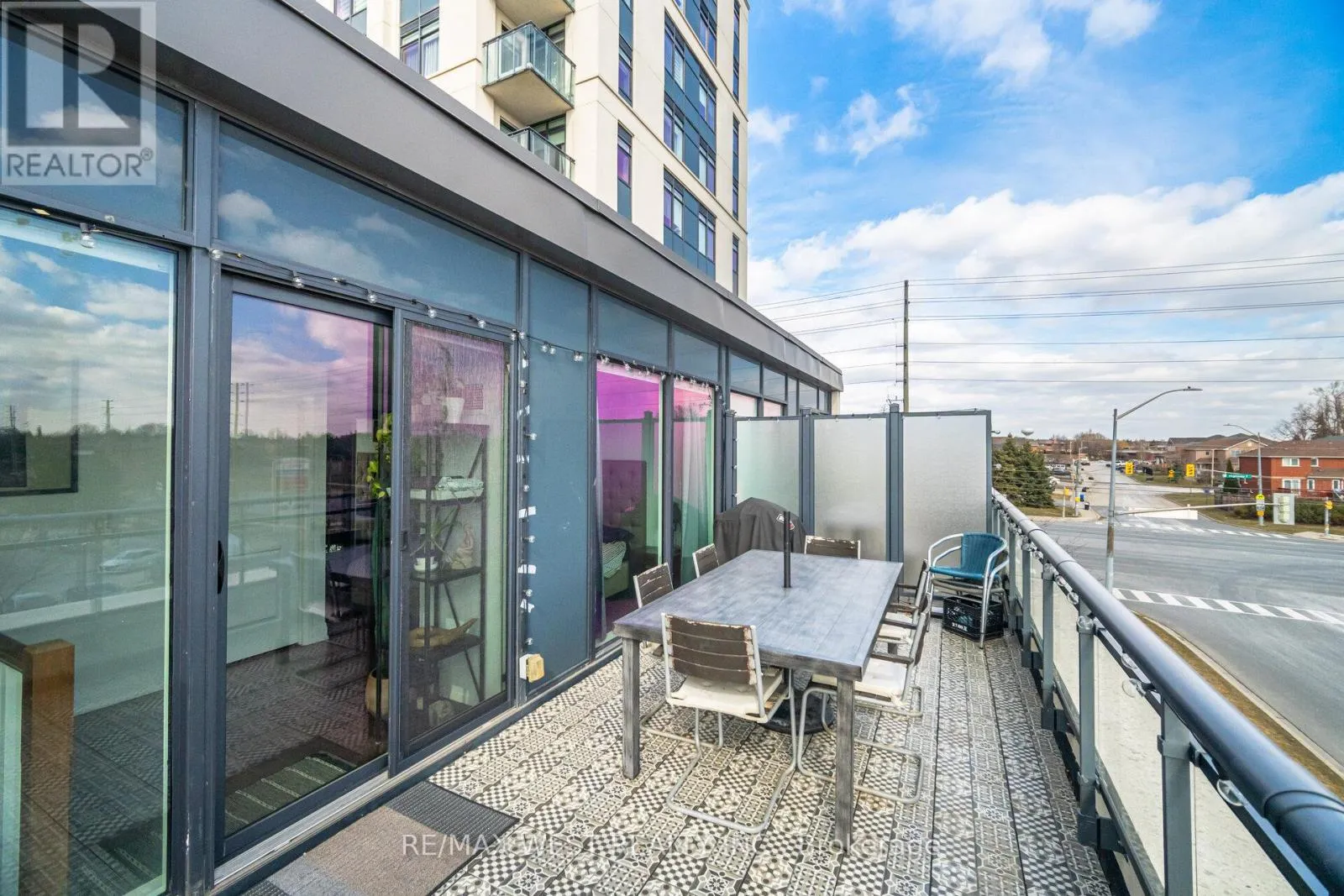 HWY 7 & Martin Grove Modern three-storey townhome featuring a private rooftop terrace. The living room offers soaring ceilings and expansive wall-to-wall windows, providing exceptional natural light throughout. The contemporary kitchen is beautifully appointed with granite countertops, a centre island, and stainless steel appliances. This home includes three stylish bathrooms and a spacious primary bedroom with direct walk-out access to the terrace. One parking space and one locker are included, with additional visitor street parking conveniently located directly in front. The storage locker is ideally situated along the side of the building. Within walking distance to public transit and a variety of shops and amenities. (id:27476)