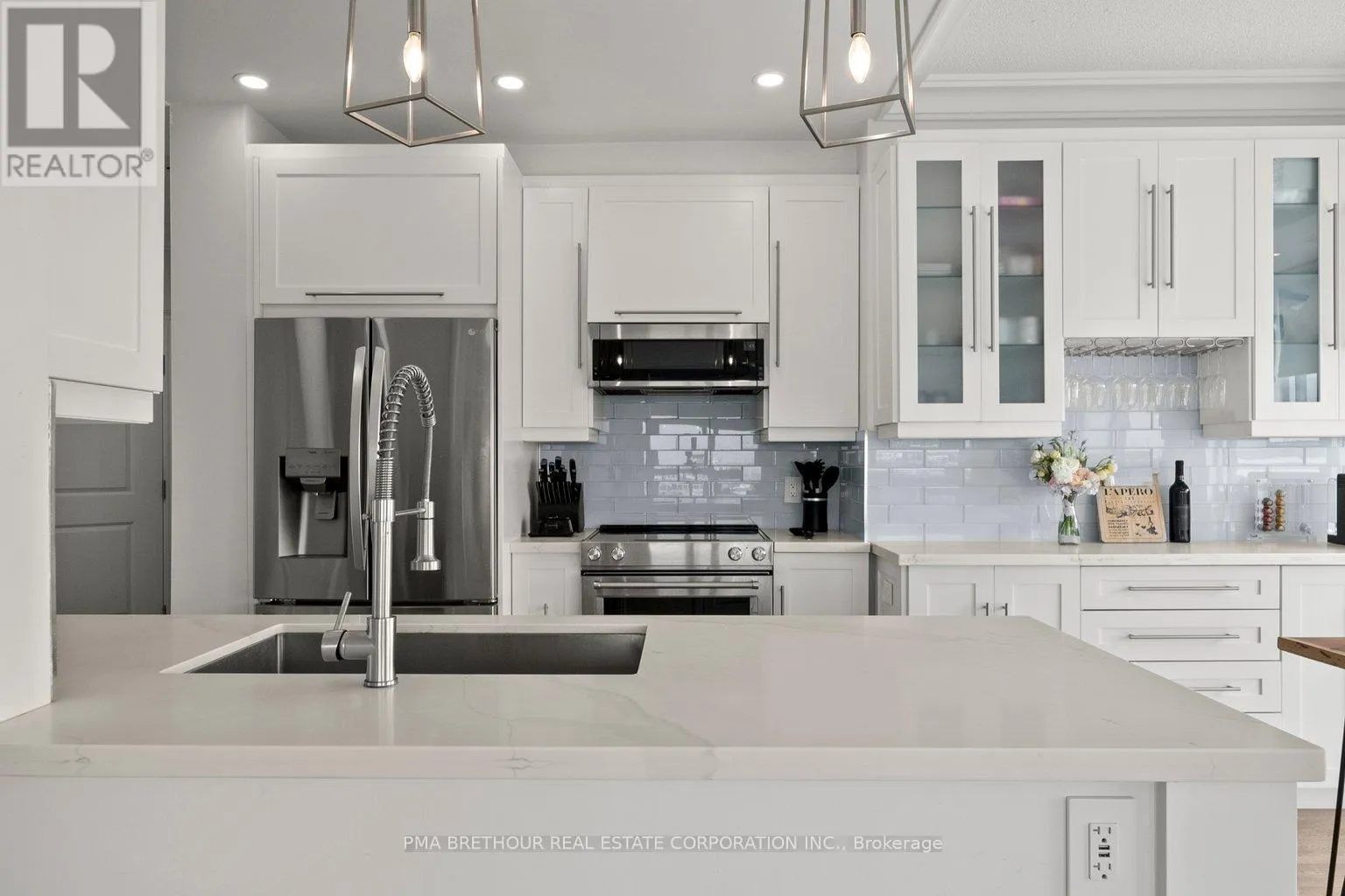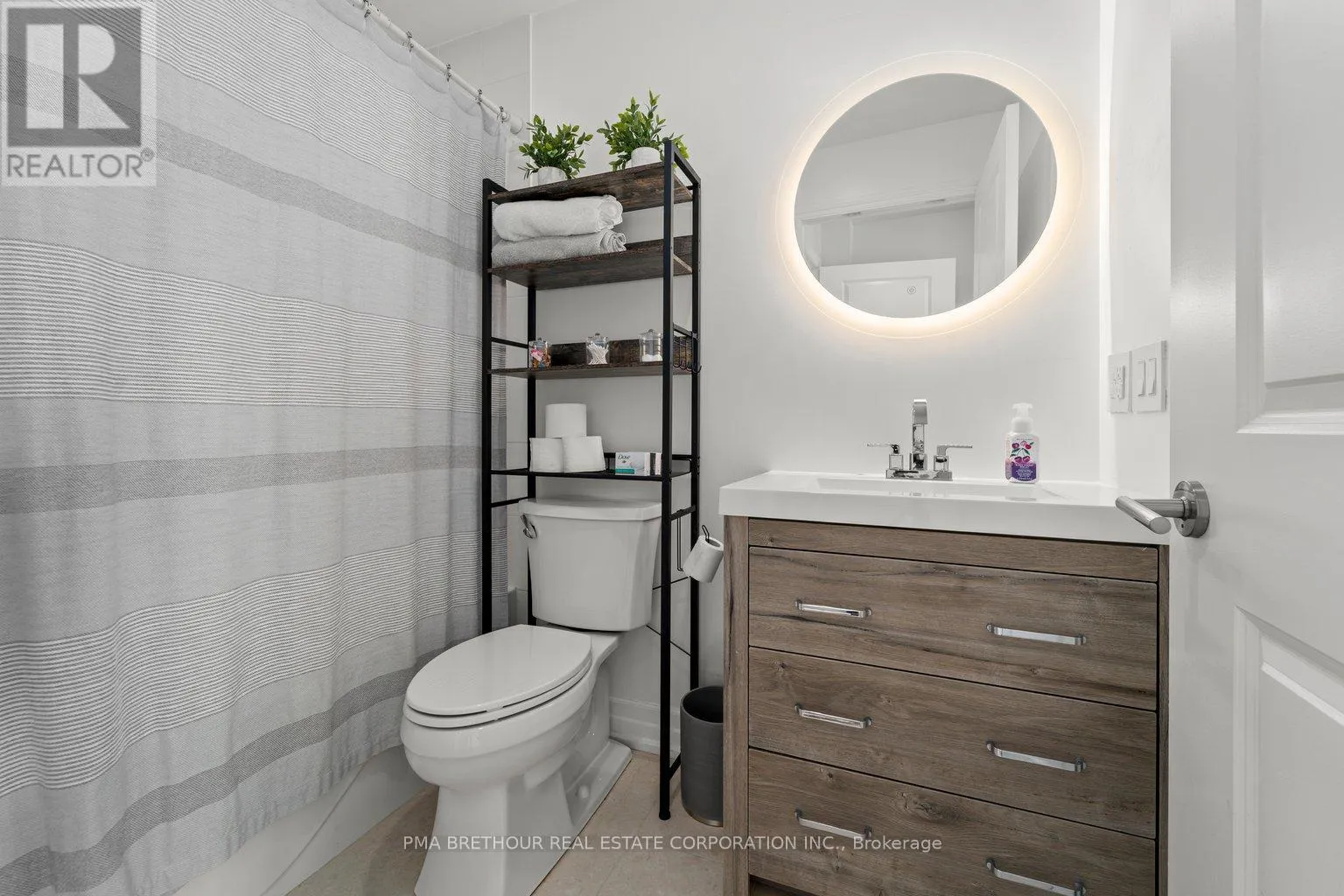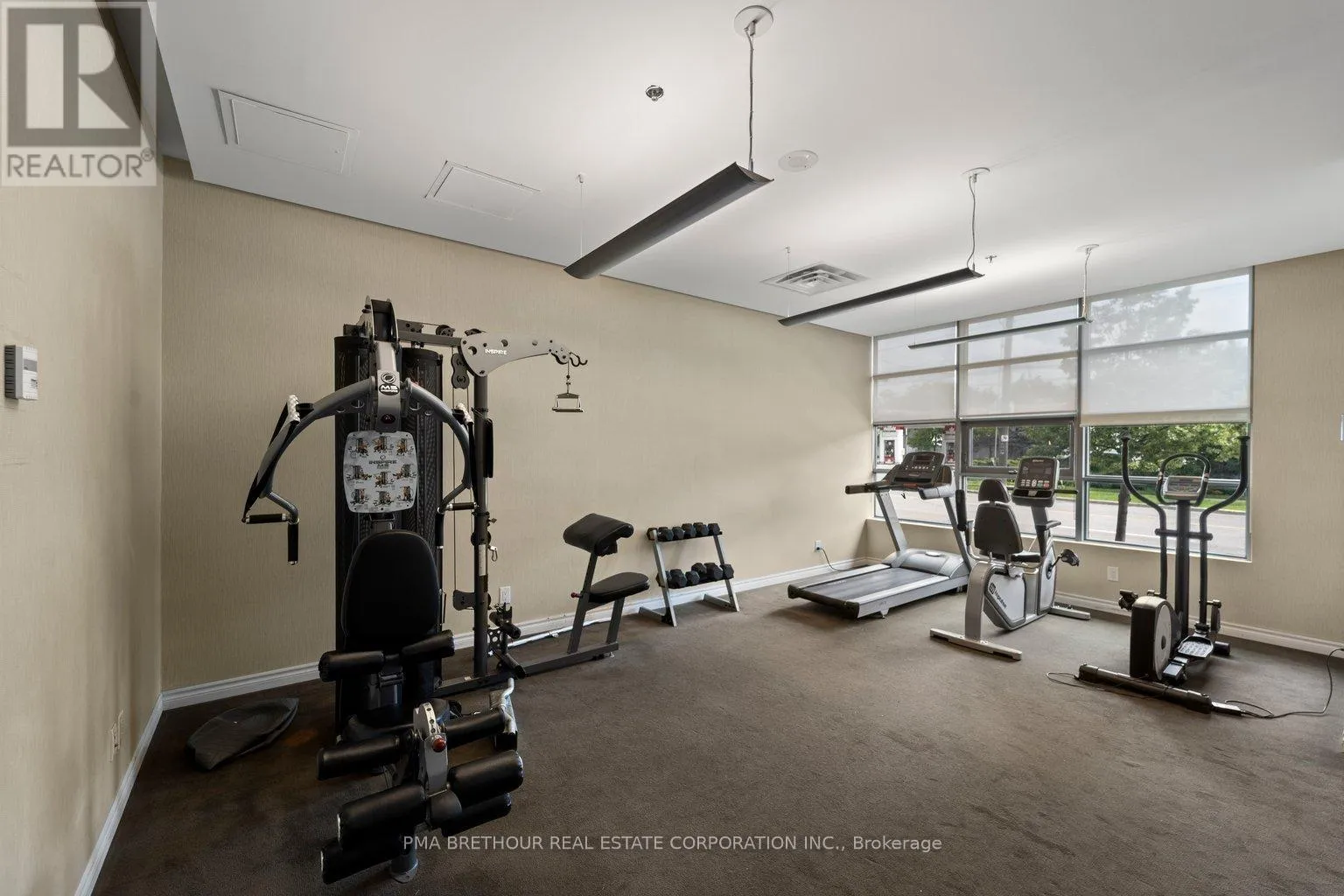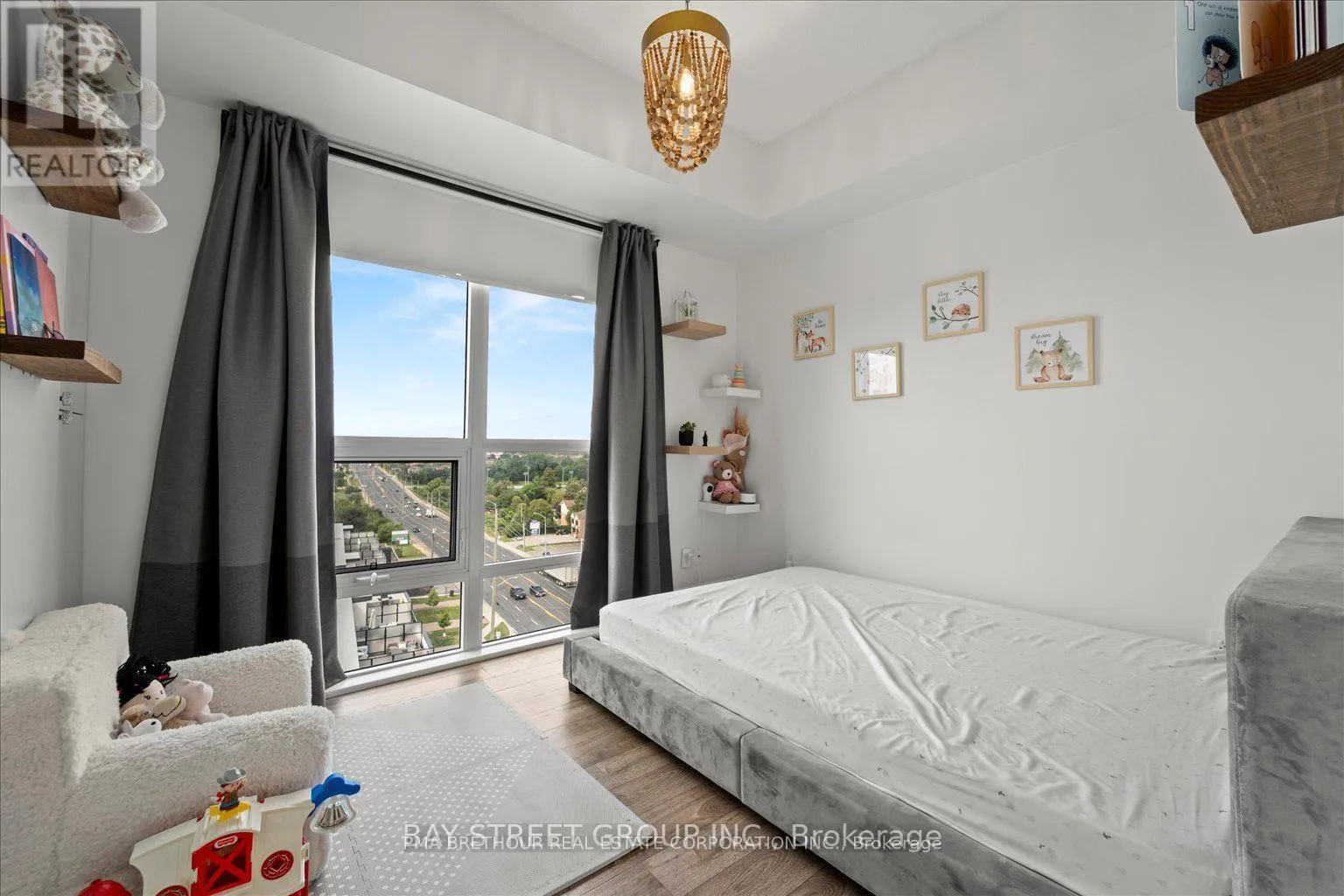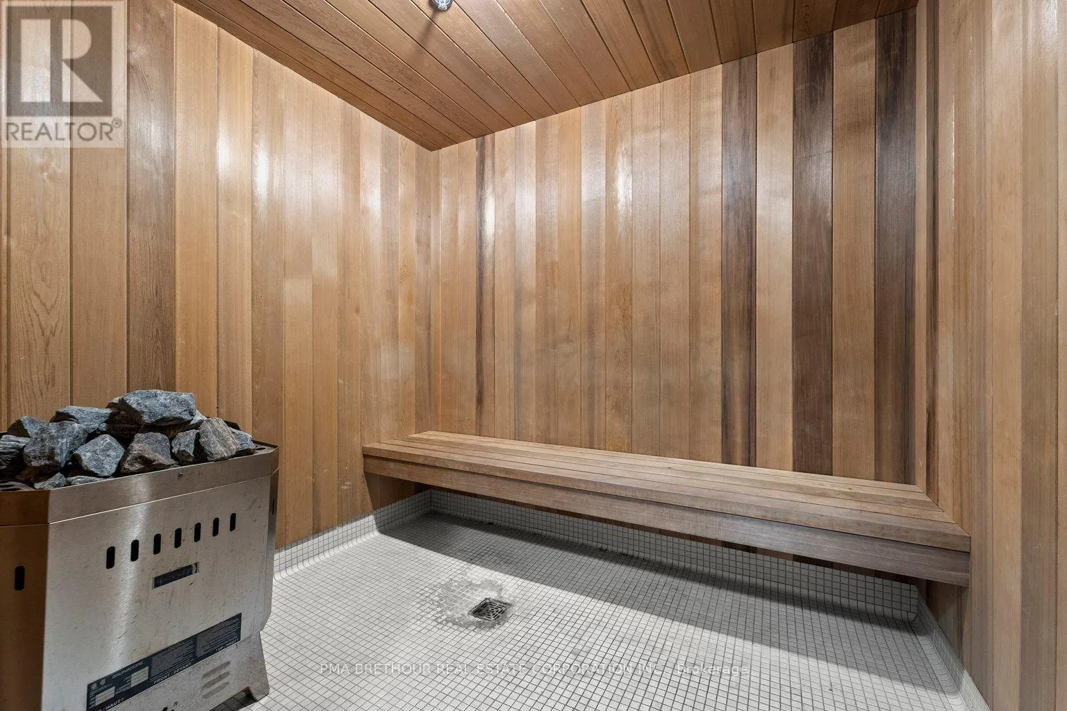 Kipling & Highway 7 Absolutely stunning southwest-facing corner suite in the heart of Vaughan's West Woodbridge! This rare 2-bedroom, 2-bathroom layout offers approximately 920 sq ft of sun-filled, open-concept living and a spectacular wrap-around balcony with breathtaking, unobstructed views of the Veneto ravines and Toronto skyline. Floor-to-ceiling windows flood the space with natural light, complemented by motorized blinds and a modern rustic design that is both stylish and inviting. The chef-inspired kitchen features quartz countertops, custom backsplash, stainless steel appliances, centre island, valance lighting, crown moulding, and pot lights, flowing seamlessly into spacious living and dining areas with walk-out to your private outdoor retreat-perfect for entertaining. The primary bedroom offers a built-in closet and a beautifully upgraded 4-piece ensuite with marble floors and LED mirror, while the second bedroom showcases floor-to-ceiling windows and ample storage. Additional highlights include a large welcoming foyer, ensuite laundry, built-in speakers, upgraded lighting with USB outlets, 1 owned underground parking space, and 1 owned locker conveniently located on the same level. Well-managed building with premium amenities including gym, party room, rooftop terrace, sauna, security system, and visitor parking. Steps to parks, schools, transit, library, and recreation centre. A rare opportunity to own a bright, upgraded corner unit with incredible views-this one shows beautifully! (id:27476)