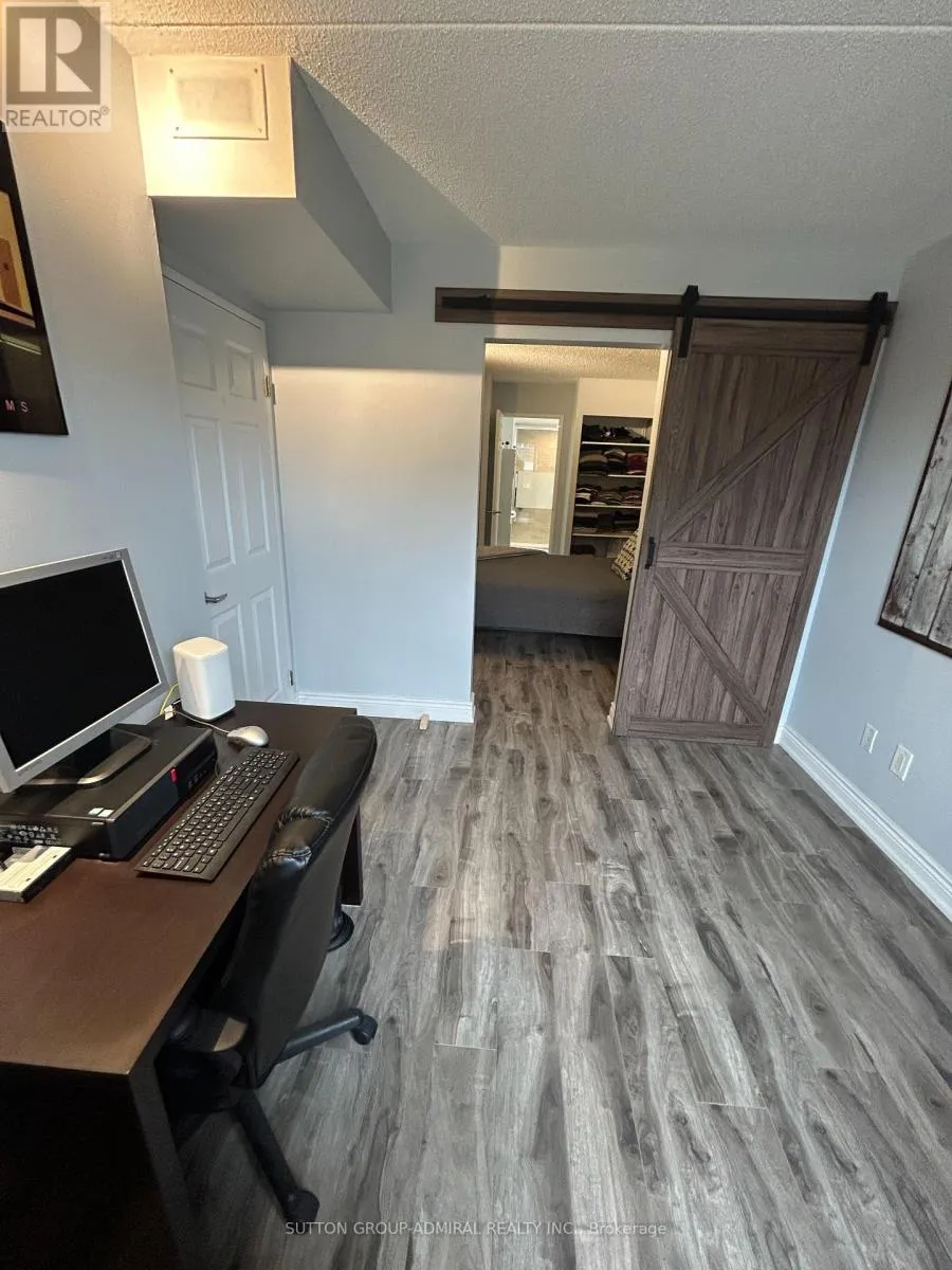 Islington & Langstaff Immaculate condo nestled beside the scenic Humber River and Boyd Conservation Park. Thispremium 1+1 bedroom suite includes parking and a locker, offering the perfect blend ofcomfort, style, and convenience. Featuring modern laminate flooring throughout and abeautifully renovated bathroom with a sleek glass shower, it is Freshly Painted and move-inready. The spacious primary bedroom provides a relaxing retreat, while the versatile den isideal as a home office or can easily function as a second bedroom. Enjoy a welcoming foyer, in-suite laundry, and an open, functional layout designed for everyday living. Step out ontoyour oversized private balcony-perfect for morning coffee or unwinding in a peaceful setting.Residents have access to excellent amenities including a party room, rooftop terrace, securitysystem, and ample visitor parking. Ideally located just steps to transit, schools, parks, andthe Humber River trails, with quick access to Highways 7, 400, and 407-making commuting abreeze. A perfect opportunity for first-time buyers, downsizers, or investors seeking a well-appointed home in a prime location. (id:27476)