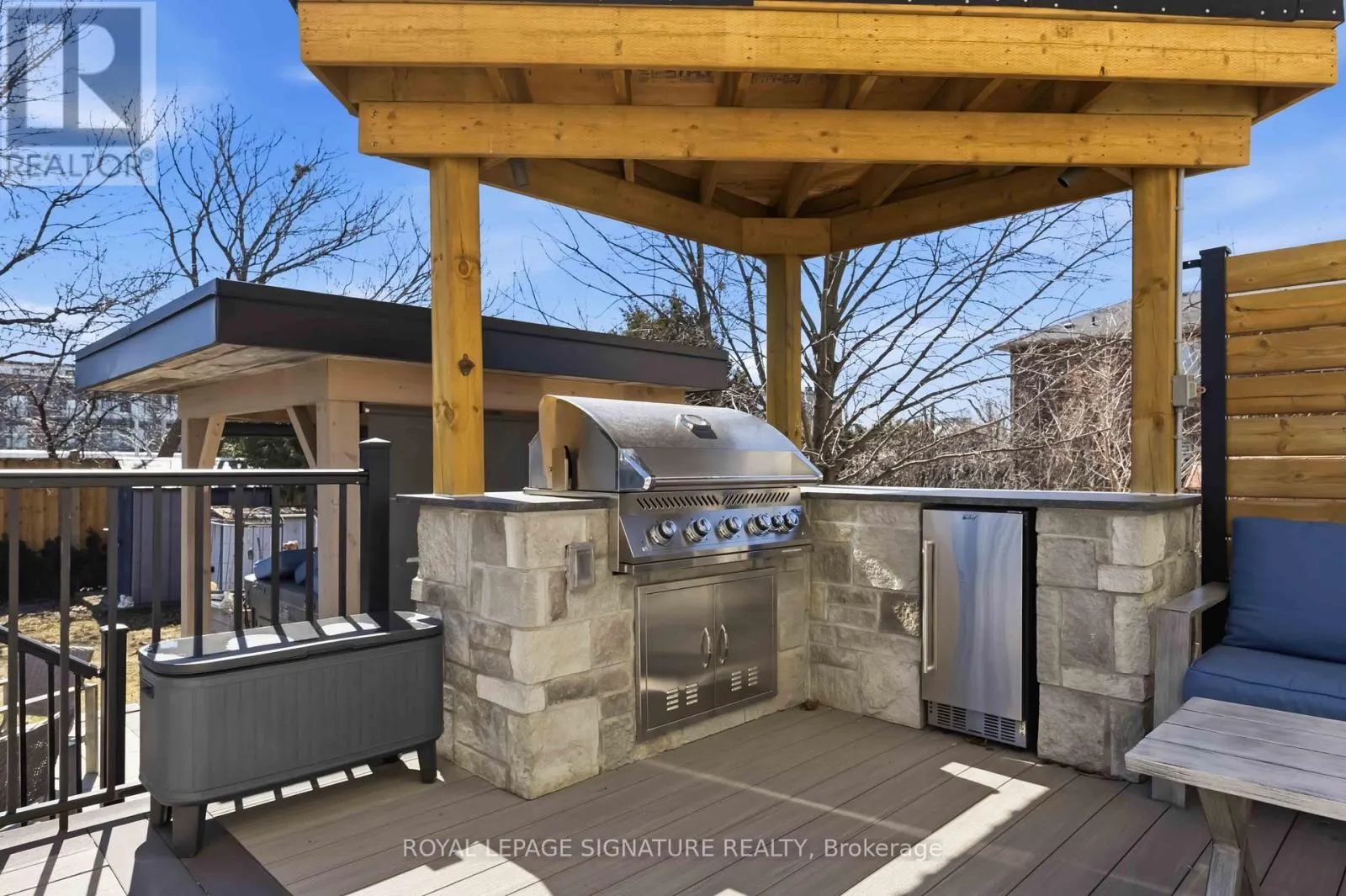 Kipling Ave & Hwy 7 Step into 35 Rainbow Drive, a beautifully updated home where modern comfort meets thoughtful design. Expanded with a second-storey addition 12 years ago, the main floor boasts soaring 8.5-foot ceilings, while the upper level features 9-foot ceilings, filling every room with light and openness. Rich hardwood floors and fresh professional paint create a warm, move-in-ready atmosphere throughout. The main floor offers a cozy, open-concept layout with a functional design, perfect for everyday living and entertaining, complemented by a separate walk-in pantry for added storage. The primary suite is a sun-filled retreat with an elegant tray ceiling, spa-inspired ensuite featuring floating vanities, and a spacious walk-in closet that blends style with function. Every detail has been carefully considered, including 7.5-inch baseboards, built-in surround sound, and fully owned, updated systems: furnace, tankless hot water, humidifier, water softener, and updated plumbing, and electrical, providing comfort and peace of mind. Step outside to a spacious backyard designed for entertaining and relaxation. Relax in the saltwater hot tub beneath a custom louvered pergola crafted from 100-year-old reclaimed barn wood, complete with a skylight that fills the space with natural light. Entertain on the low-maintenance PVC deck, gather around the cozy gas fire pit, or enjoy the built-in outdoor kitchenette with Napoleon gas BBQ, fridge, and granite countertops. Located just steps from public transit and minutes from the Humber River Trail, Market Lane, schools, shopping, and highways, 35 Rainbow Drive blends lifestyle, convenience, and thoughtful upgrades. Lovingly maintained and move-in ready, this home offers the perfect setting for comfortable living and memorable gatherings. (id:27476)