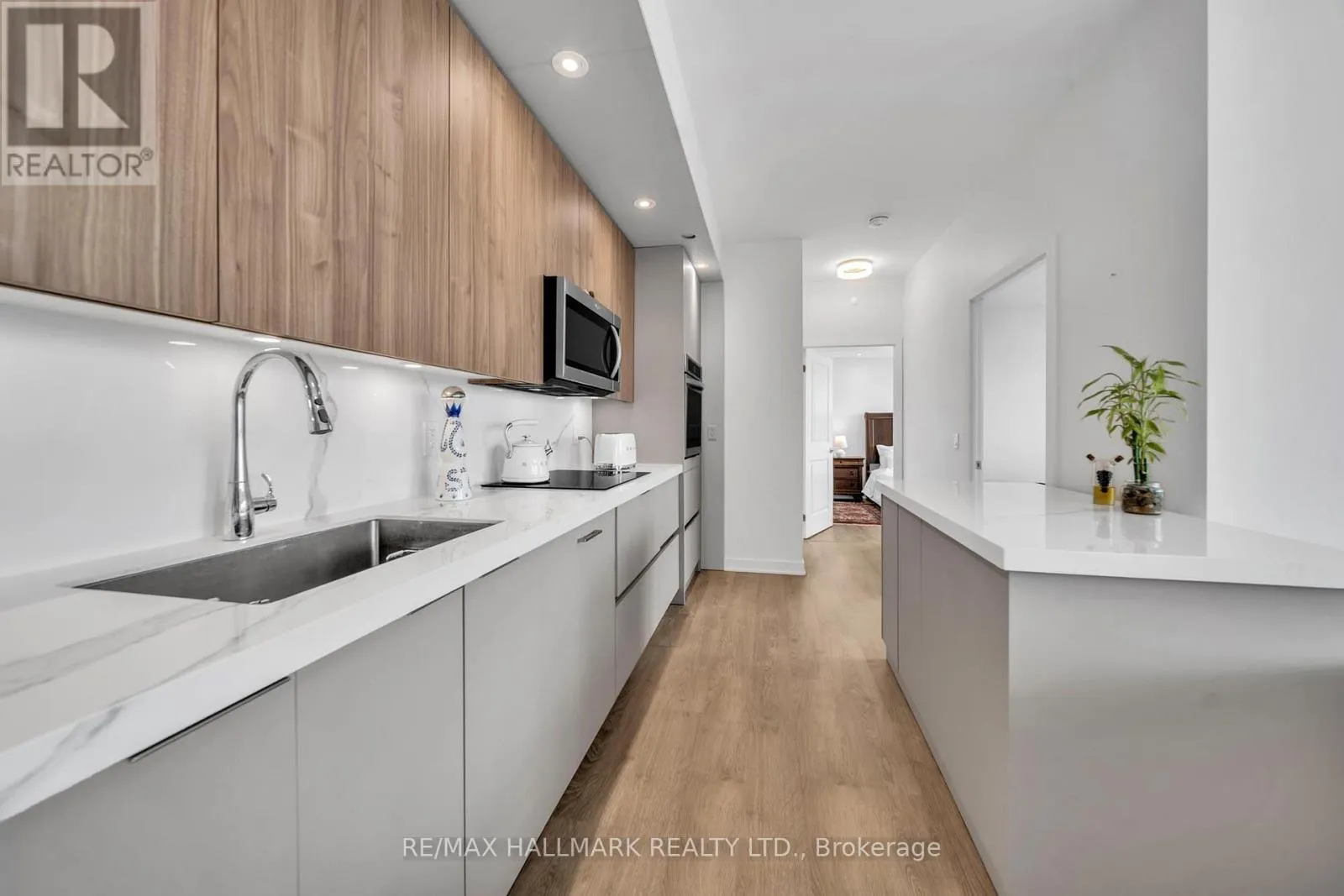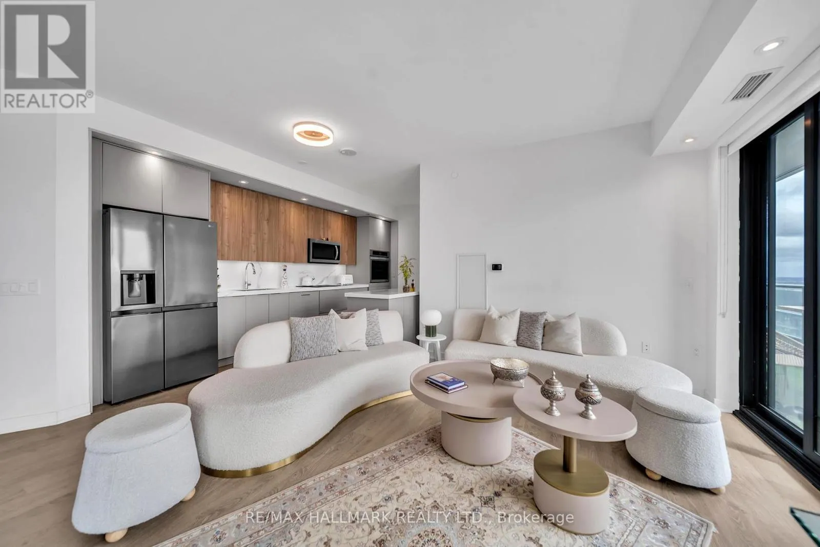 Major MacKenzie Dr / Keele Experience refined living in this extensively upgraded 3+Den, 3-bath corner residence at The Mackenzie by Pemberton. Offering approximately 1,250 sq. ft. of bright, open-concept space with south-east exposure, floor-to-ceiling windows, and a private balcony, this suite delivers both functionality and elegance. Fully redesigned in 2024, the modern kitchen showcases porcelain countertops and backsplash, custom cabinetry, a large island, and premium upgraded appliances, including an LG refrigerator, Bosch induction cooktop, and Frigidaire oven. A custom TV feature wall, upgraded bathrooms, pot lights, and thoughtfully designed storage throughout elevate the overall finish. Ideally located steps to Maple GO, major highways, schools, parks, and everyday amenities, and just a 5-minute walk to Walmart and RONA. Includes 1 parking and 1 locker. A turnkey opportunity in a highly desirable Vaughan community. (id:27476)