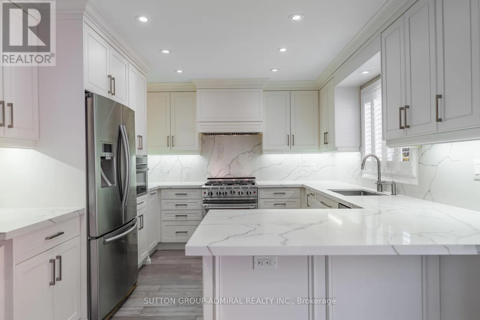 Bathurst/Worth Beautifully renovated family home in one of Thornhill's most sought-after neighbourhoods. This spacious residence features 5 generously sized bedrooms and 3 full washrooms on the upper level, offering an ideal layout for growing families. The primary bedroom boasts a spa-inspired 5-piece ensuite, creating a private retreat. The fully renovated kitchen with stainless steel appliances flows seamlessly into the large family room, creating a perfect space for everyday living. The living and dining rooms connect to create an expansive space complete with a built-in buffet/bar area. Hardwood flooring and a grand staircase add warmth and elegance throughout. The finished basement includes a full second kitchen, providing excellent flexibility for extended family or additional living space. Enjoy a quiet and private backyard setting. Roof recently re-done ('23). Upgraded attic insulation ('21). Conveniently located near top-rated schools including Ventura Park French Immersion, Wilshire Elementary and Westmount high school, as well as public transit, parks, walking trails, soccer fields, Promenade Mall, Walmart and places of worship. A truly turnkey opportunity ready to be enjoyed from day one. See virtual tour! (id:27476)
