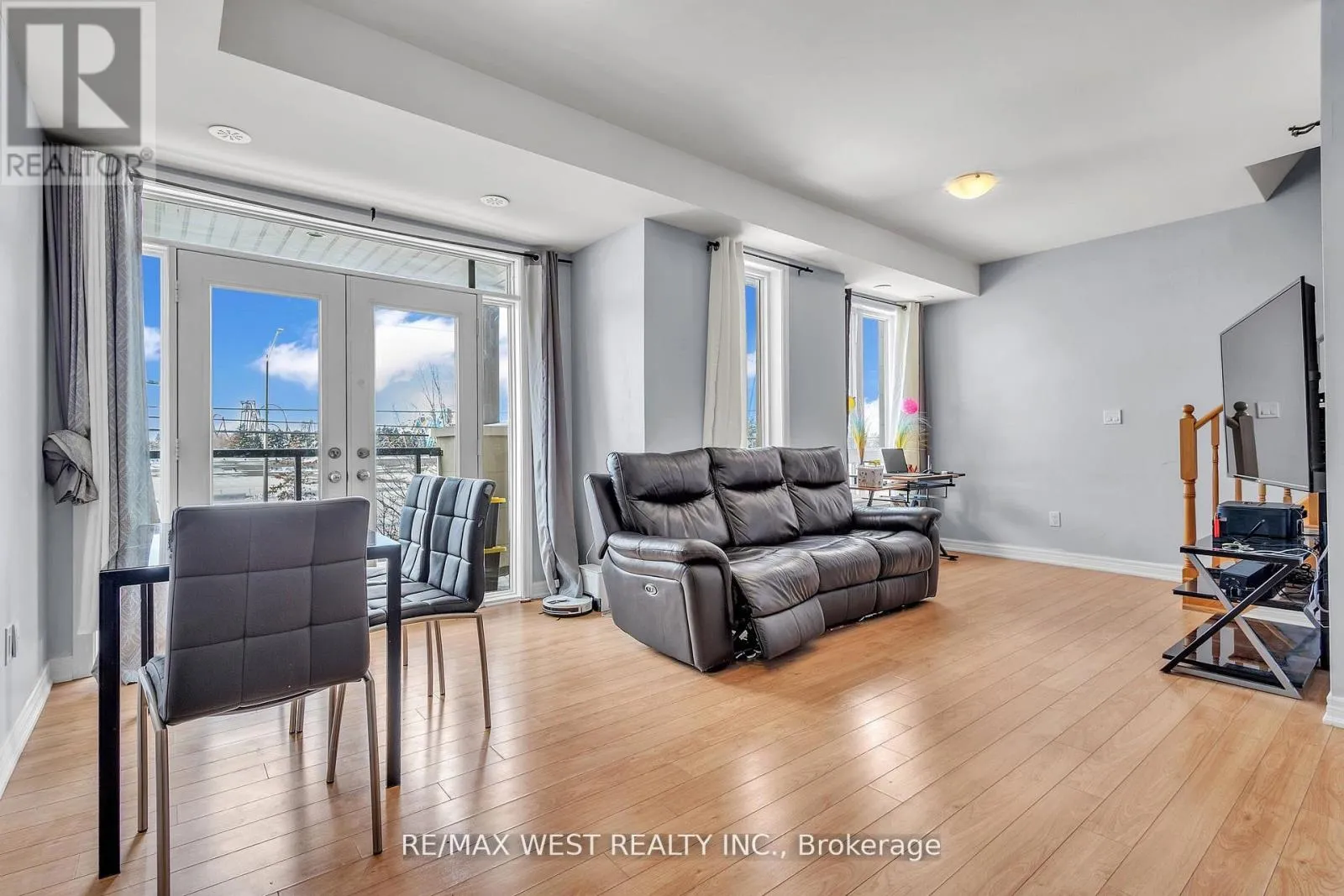 Jane and Rutherford/Major Mackenzie Welcome to this stunning Topaz model townhome offering 1,110 sq. ft. of thoughtfully designed living space plus two private balconies. This bright and airy 2-bedroom, 2-bathroom residence features a desirable open-concept layout with seamless living, dining, and kitchen areas, perfect for both everyday living and entertaining. The modern kitchen is equipped with stainless steel appliances, a breakfast bar, and sleek finishes, while French doors open to sun-filled west-facing balconies, creating a warm and inviting atmosphere throughout. Enjoy tranquil living in a quiet, well-maintained complex with low maintenance fees, ideal for professionals, couples, or investors. Unbeatable location, just steps to shopping, dining, transit, and everyday amenities. One surface parking spot included. A perfect blend of comfort, style, and convenience in one of Vaughan's most sought-after communities. (id:27476)