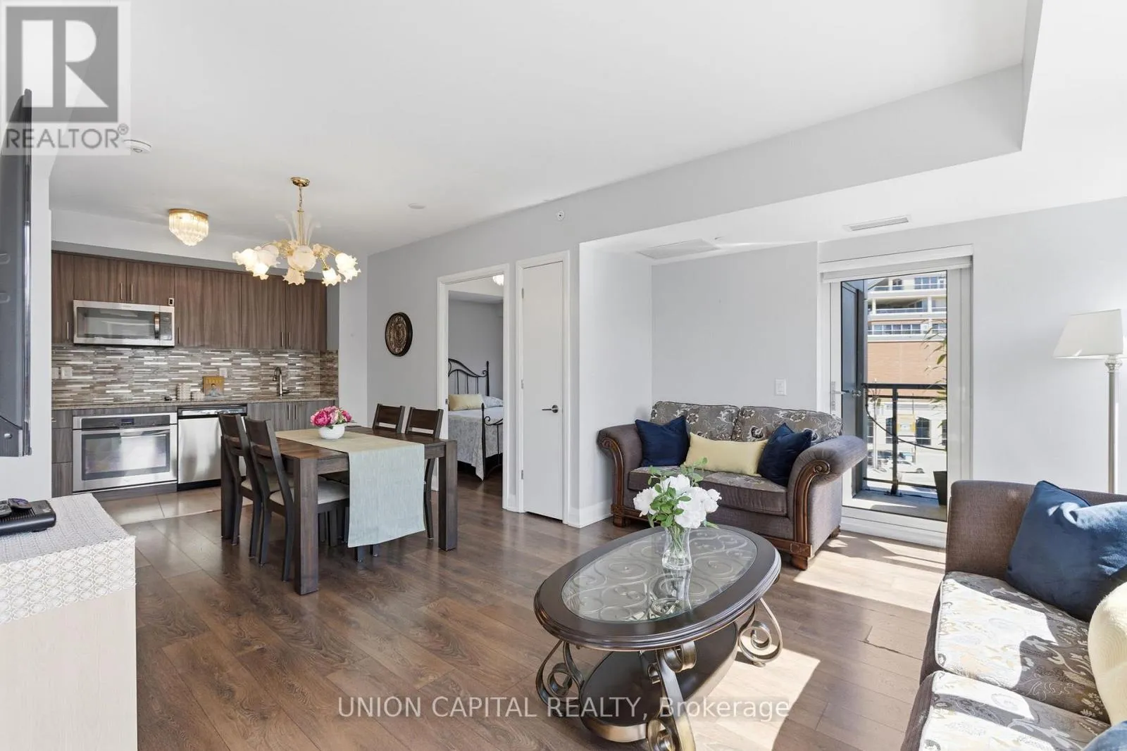 Hwy 7/ Islington Ave. Welcome to Suite 412 at Grand Manor Condos, located in the heart of Market Lane-one of Woodbridge's most charming and sought-after communities! This beautifully designed 2-bedroom, 2-bathroom corner suite offers approximately 900 sq ft of bright and spacious living space, elevated by expansive windows and multiple exposures that flood the home with natural light. Designed for both comfort and entertaining, the open-concept living and dining areas flow seamlessly into a well-appointed kitchen, perfect for everyday living and effortless entertaining. Step outside to not one, but two private balconies, where you can unwind or host while taking in the views of the lively village below. Nestled within a boutique building, residents enjoy the convenience of underground parking, visitor parking and BBQ allowances. Step outside and you're immersed into the vibrant culinary and shopping scene that Market Lane has to offer, with convenient access to transit and all essential amenities right at your doorstep. A rare offering in an unbeatable location. Experience the best of urban living in one of Woodbridge's most desirable communities. Don't miss out on the opportunity to make this exquisite condominium your new home! (id:27476)