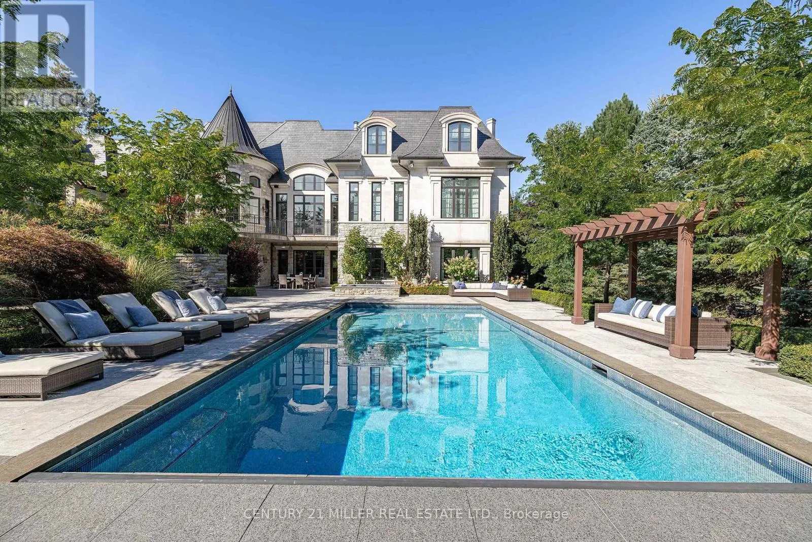 Woodland Acres / Rebecca Court Exquisite French Parsian Home in coveted Woodland Acres. Architect Frank Falcone and Designer Robin Nadel. Over 1 acre of private grounds with pristine manicured gardens, pool and outdoor entertaining spaces. Made with Indiana limestone, natural slate roofing, natural stone, granite and copper detailing. Over 13,000 sq ft of total living space with refined craftsmanship, finest luxury finishes and no detail overlooked throughout this incredible property. Cathedral great room, gourmet kitchen by Bellini Kitchens with Rotunda breakfast area. Extensive millwork, vaulted ceilings and wall panelling throughout. Mahogany wine cellar with capacity of over 500 bottles, elevator, gym, theatre, wet bar, outdoor kitchen, stone fireplace with pizza oven. Separate one bedroom apartment above garage. 4 car garage and 12 parking spots. (id:27476)