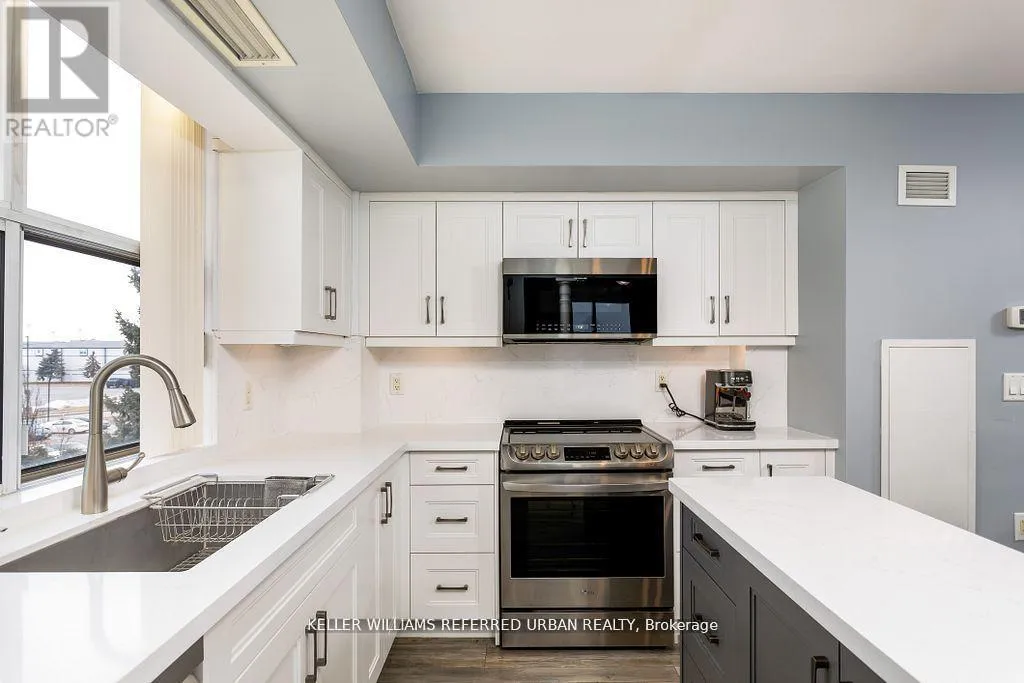 Jane and Rutherford Introducing a Gorgeous, Newly Renovated 2-Bedroom, 2-Bathroom Suite in Villa Giardino! Over $50,000 in thoughtful upgrades have transformed this bright corner suite - featuring a huge wrap-around balcony perfect for relaxing or entertaining. The brand-new kitchen boasts stainless steel appliances, a centre island, and a stylish open-concept dining area. Enjoy a large primary bedroom with a beautifully renovated ensuite and walk-in shower, plus a second bedroom and full bathroom for comfort and flexibility. New laminate flooring runs throughout, and there's lots of storage, in-suite laundry, underground parking, and a locker included. Don't miss your chance to fall in love with this condo! (id:27476)