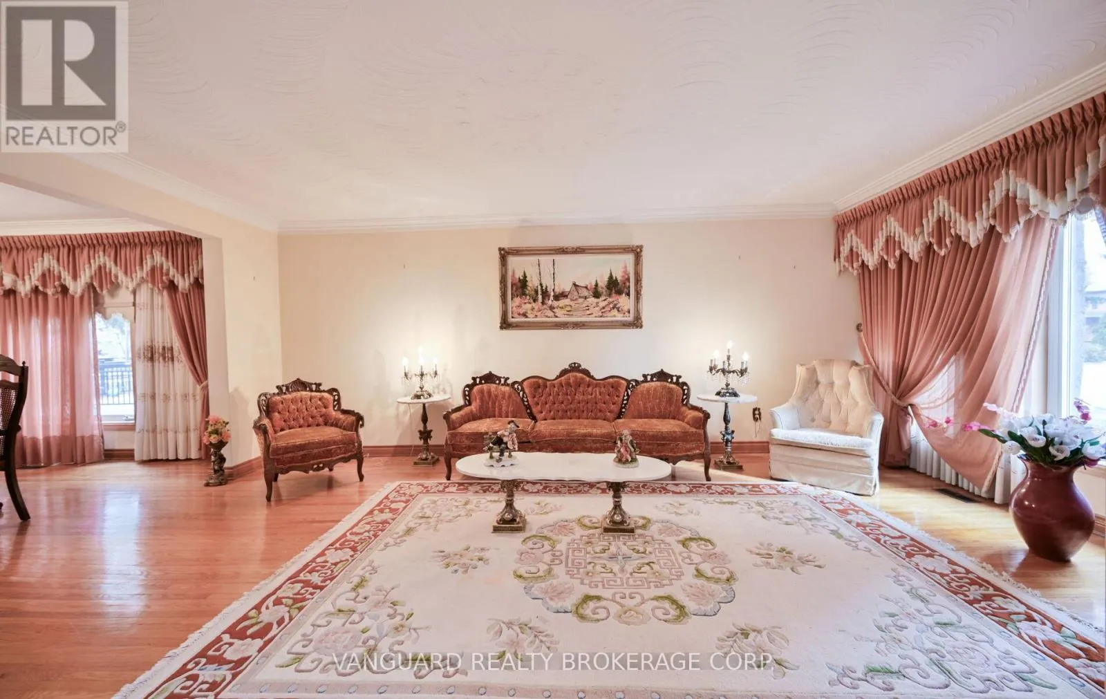 Islington Ave/ Hayhoe Lane Experience refined living in the coveted Islington Woods community of Woodbridge. This 4-bedroom residence offers 2 full kitchens with kitchenette seating, a grand dining area flowing into a sun-filled living room with windows fronting Firglen Ridge, and a private family room for relaxed entertaining. The finished 2,000 sq.ft. basement includes a walkup and abundant of storage.Constructed with durable cement block and brick, this home offers exceptional structural integrity and long-lasting durability. The property also features a custom solid high beam spanning all three garages, providing massive additional storage space.Situated on a generous lot measuring 75.08 x 134.15 feet, the home provides 3,500-5,000 sq.ft. of living space with ample outdoor space and mature trees. Sold as-is, this property is the perfect canvas to create your dream estate in one of Woodbridge's most prestigious and established neighborhoods. (id:27476)
