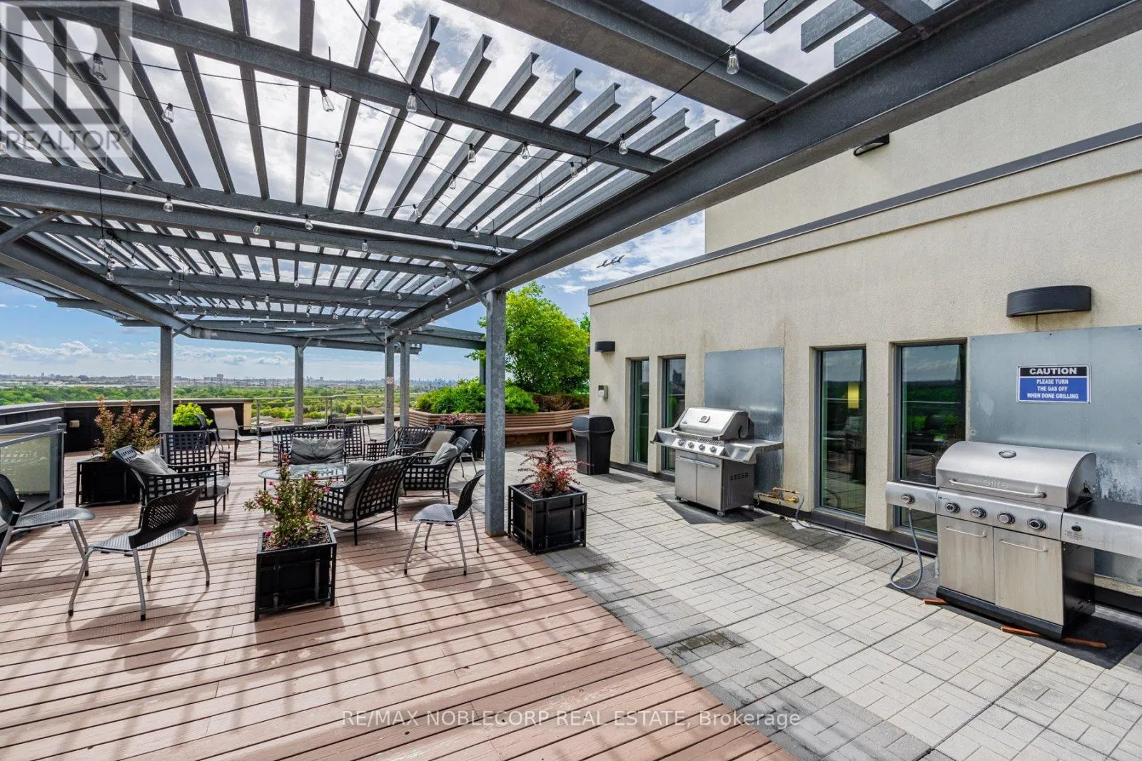 Hwy 7 & Kipling Ave. Welcome to this stunning sun-drenched corner unit offering the perfect blend of space, style, and convenience. This beautifully maintained 2-bedroom, 2-bathroom condo features an exceptional layout with floor-to-ceiling windows throughout, filling the home with natural light and showcasing unobstructed south-facing views. Designed for both comfort and entertaining, the unit boasts a massive private terrace with walkouts from the primary bedroom and living room-ideal for relaxing or hosting guests-along with a second balcony off the additional bedroom. The kitchen is equipped with stainless steel appliances, a large granite slab countertop, and ample cabinetry, while the dining area is enhanced with a custom built-in, providing both charm and valuable extra storage. Enjoy the convenience of an ensuite laundry, two underground parking spaces, and a dedicated locker! Located in a highly desirable area, this condo is just minutes from major highways, Market Lane, shops, restaurants, and everyday essentials. Public transit is right at your doorstep, with proximity to the subway, library, and recreation centre. Residents also enjoy access to premium building amenities, including a gym, visitor parking, party room, rooftop terrace, and sauna. A rare opportunity to own a bright, spacious, and well-appointed home in a prime location-this one truly has it all! (id:27476)