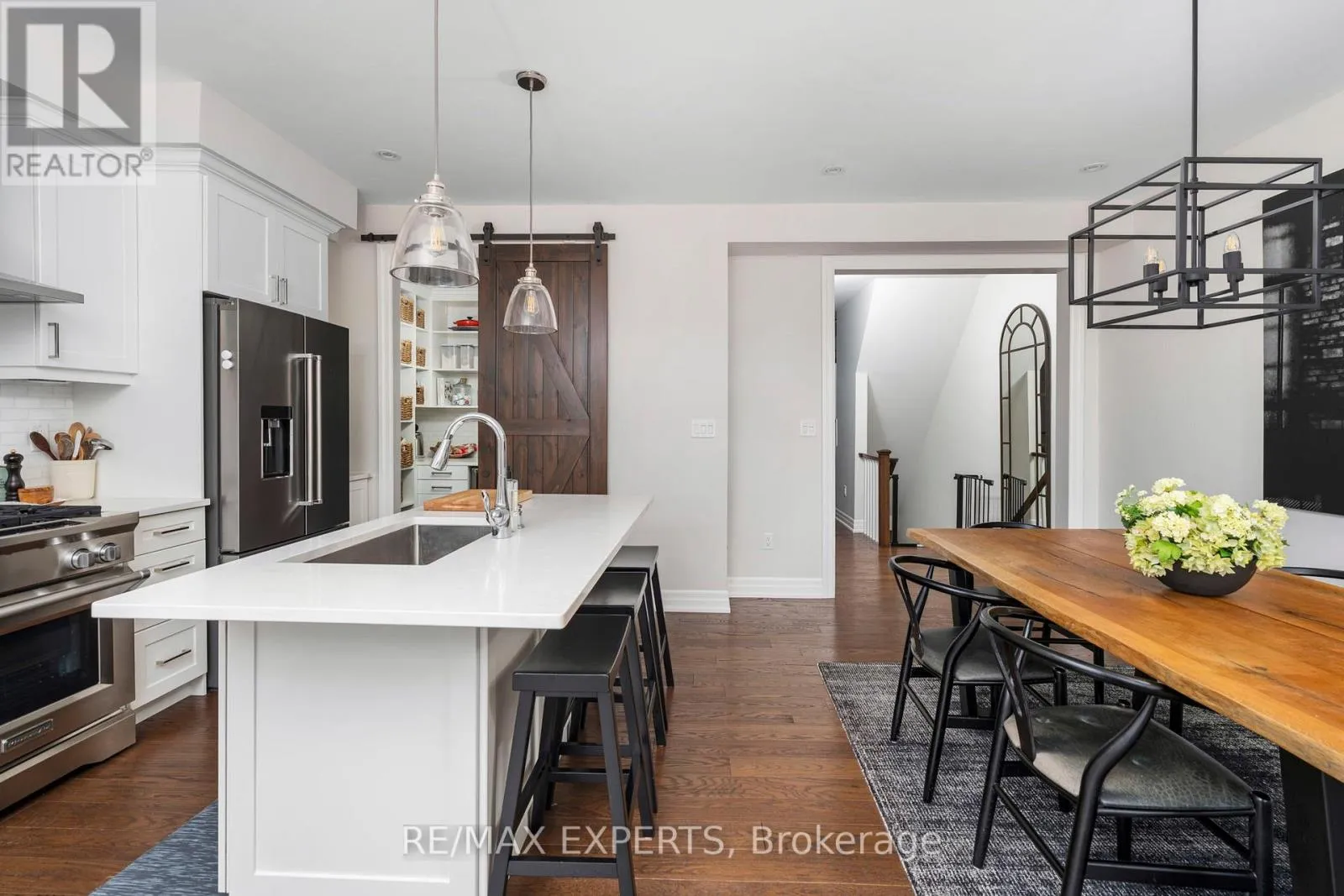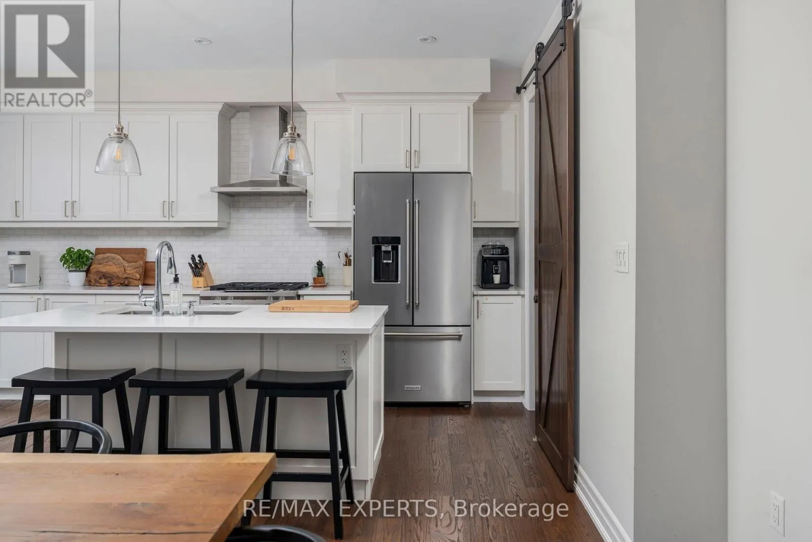 KLEINBURG SUMMIT WAY & TESTON ROAD A rare and refined offering in the heart of prestigious Kleinburg - this exceptional 3-bedroom, 3-bathroom townhome spans approximately 2,000 square feet and showcases true pride of ownership, with an impressive array of upscale upgrades throughout. Designed for both elegance and function, the home features a chef-inspired kitchen with premium stainless steel appliances and a commercial-grade gas oven, complemented by a custom walk-in pantry with built-in cabinetry and a statement barn door. Entertain effortlessly on the oversized walk-out deck, while the upgraded stone porch and sophisticated, carpet-free interior add to the home's timeless appeal. The custom living room with bespoke built-in shelving creates a warm yet elevated living space. Enjoy the best of Kleinburg Village - steps to Bindertwine Park, the Humber River Trail, and downtown's boutique shops, cafés, and fine dining - surrounded by top-rated schools and exceptional community amenities. Complete with ample parking and a highly desirable 2-car garage - an essential for Canadian winter's - this turn-key residence is a rare offering in an exclusive Vaughan neighbourhood, where homes of this quality seldom come to market. (id:27476)