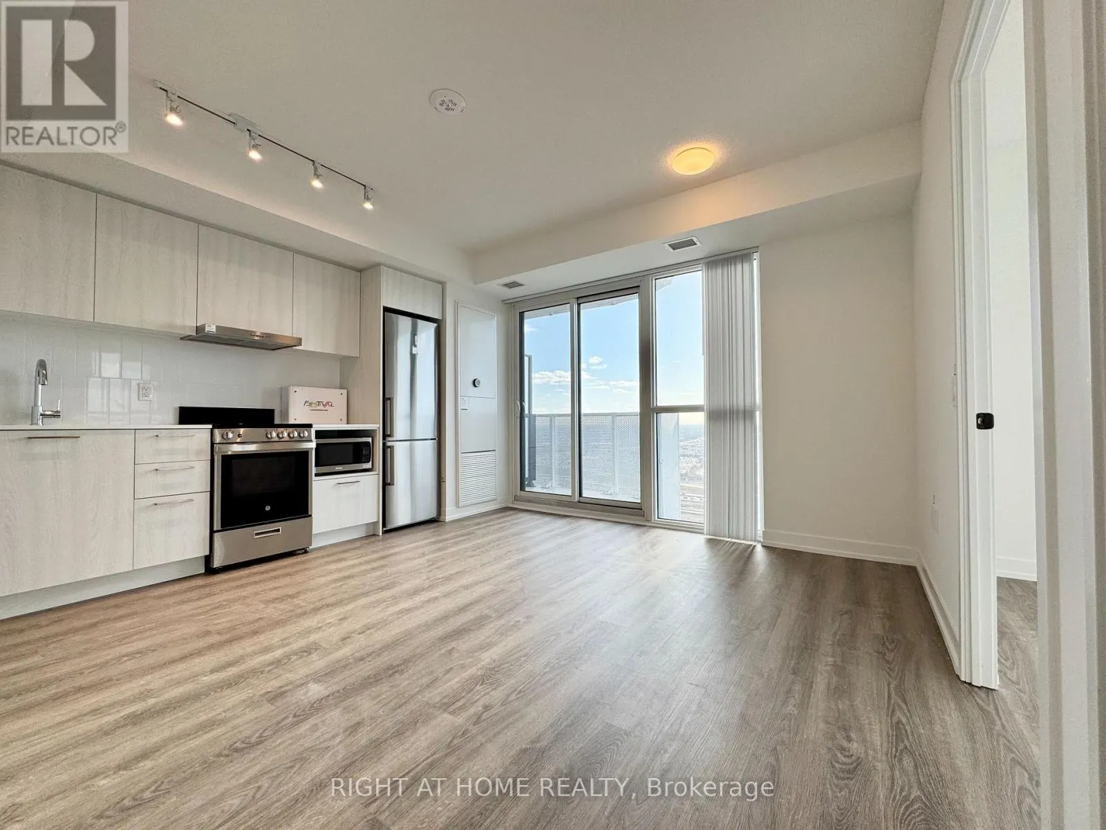 Hwy7 and Hwy400 Welcome to this 1-year-new, sophisticated 1 bedroom + den (CORNER UNIT) residence in the prestigious Festival Condo Tower B, located in the heart of Vaughan Metropolitan Centre. Offering 1 Bedroom + Den (large den can be used as 2nd bedroom, with separate door). This spacious corner unit features high ceilings and floor-to-ceiling windows, open-concept interior in natural light while offering breathtaking views from 33rd floor. The luxury kitchen boasts a sleek backsplash, top-of-the-line European appliances, and an integrated fridge and dishwasher, all complemented by laminate floors and high-end finishes. Designed by award-winning Menkes, Festival Condos offers unmatched convenience, steps from VMC subway & YMCA, with Highway 400, Cineplex, Costco, IKEA, and Vaughans vibrant dining and entertainment scene just minutes away. With Canadas Wonderland and Vaughan Mills nearby, this prime location is ideal for professionals, students, and those seeking modern, urban living at its finest. Enjoy luxury condo living with a full suite of amenities including a Gym, Party Room, Recreation Room, and more! Owners furniture can be used by the tenant (free of charge) (id:27476)