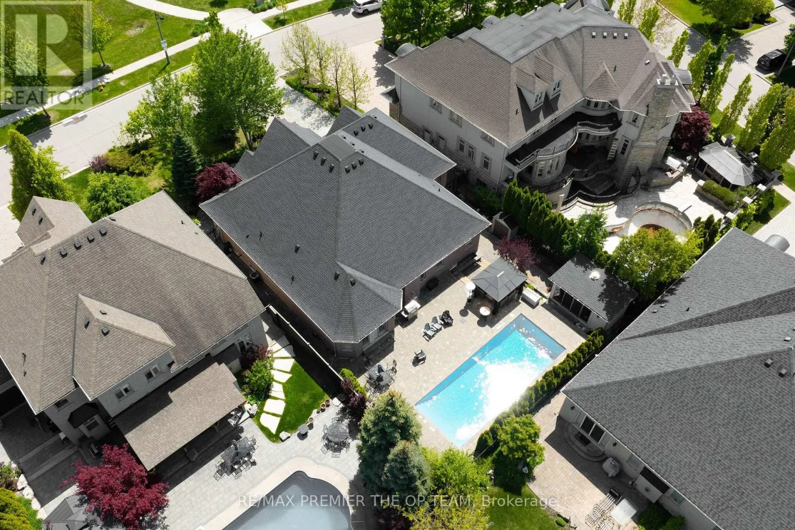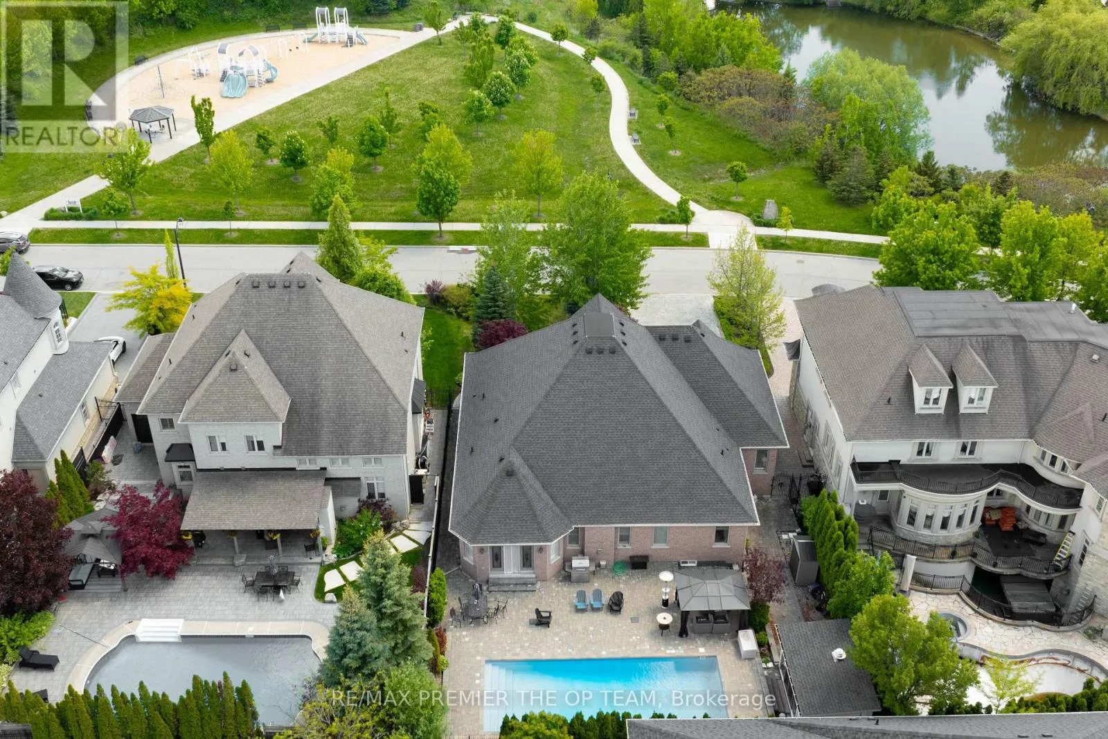 Major Mac & Hwy 27 Stunning Custom-Built Bungalow in Kleinburg! Just under 3000 sq ft of meticulously designed living space, ideally situated fronting a tranquil park and pond. The main level showcases cathedral dome ceilings, hardwood floors, and a gas fireplace in the family room. The maple kitchen with a center island opens to a backyard oasis featuring an interlocked patio, gazebo, and a year-round heated cabana, all surrounding a large in-ground fiberglass pool. The fully landscaped garden and privacy trees create a serene, private retreat. The lower level offers a separate entrance, industrial-grade kitchen, laminate flooring, a fireplace in the rec room, a dedicated office, and a spacious bedroom perfect for multi-generational living or rental income. Includes pool service and landscaping. (id:27476)
