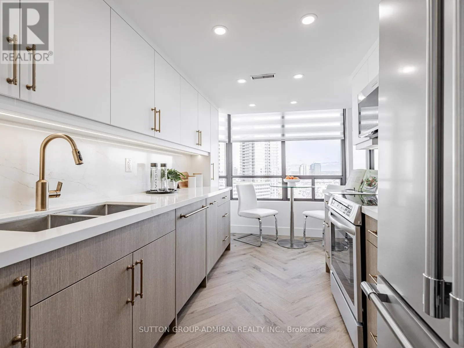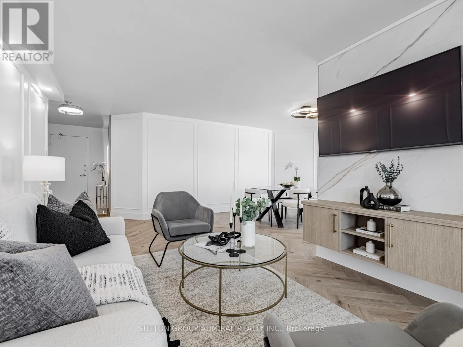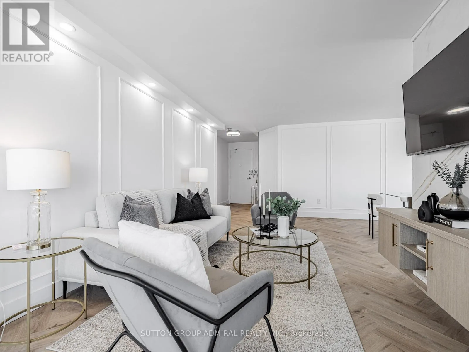 Bathurst/Clark Ave Absolutely stunning and meticulously renovated condo located in the prestigious Promenade Towers, offering approximately 1,250 square feet of luxury living in the heart of Thornhill. This bright and spacious 2-bedroom, 2-bathroom suite showcases top-tier finishes throughout, including elegant herringbone flooring, smooth flat ceilings, pot lighting, and premium window treatments. The designer kitchen is a true showpiece, featuring quartz countertops, modern cabinetry, and an efficient layout thats perfect for both everyday living and entertaining. Both bathrooms have been beautifully updated with spa-inspired elements: premium tiling and faucets, glass enclosed showers, automatic lighting and a private makeup vanity. Thoughtful custom closet systems maximize storage and organization, adding to the homes functionality and style. The expansive living and dining areas are perfect for relaxing or hosting, and include a bonus brand new TV , ready for your enjoyment. Two walkouts lead to an oversized private balcony with sweeping views of the Thornhill skyline, ideal for morning coffee or evening sunsets. This well run building offers low and all-inclusive maintenance fees with a full range of high-quality amenities, including 24-hour security, a swimming pool and indoor whirlpool, a fully equipped fitness centre, a renovated party room, and tennis/pickleball courts. Building is currently modernizing all hallways--almost complete! Enjoy the convenience of an unbeatable location just steps from Promenade Mall, public transportation, schools, parks, and places of worship. This is a rare opportunity to own a turnkey home in one of Thornhill's most desirable and vibrant communities, where luxury, comfort, and convenience converge. (id:27476)