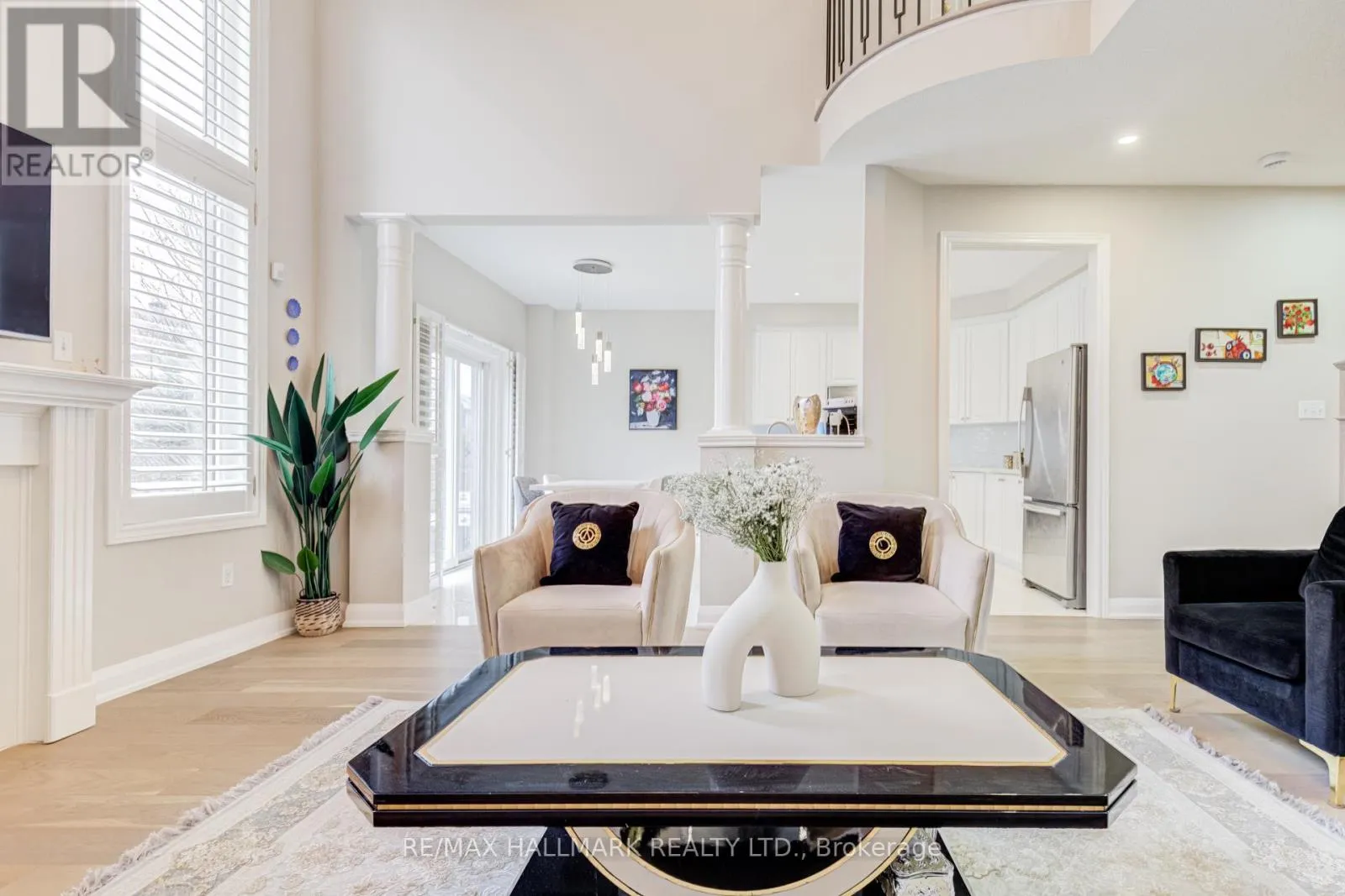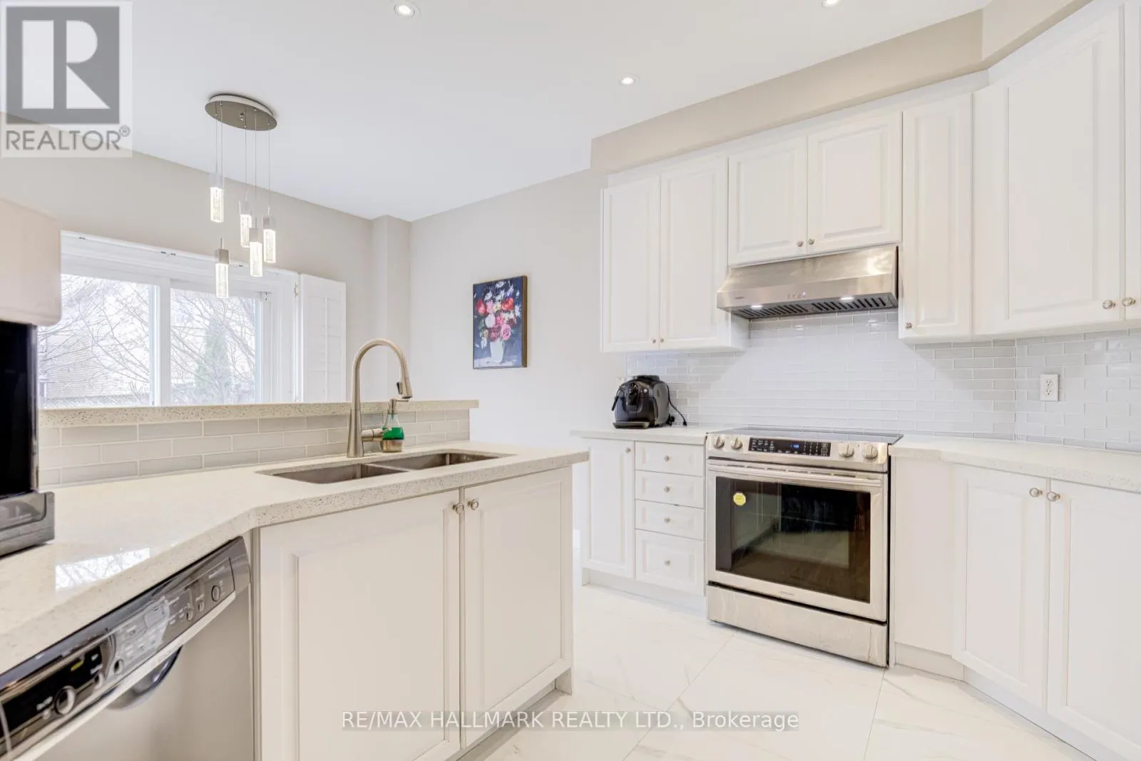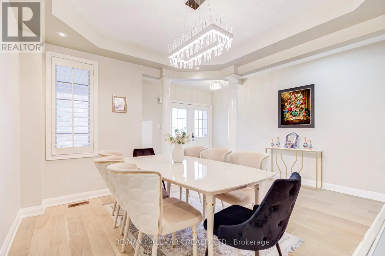 Ashberry/Oland For Lease | Upper Unit - 45 Oland Drive, Vaughan (Vellore Village)3 Bed | 3 Bath | 2,300+ Sq Ft | 4-Car Parking. Welcome to this stunning, extensively upgraded executive home nestled on a quiet, family-friendly street in the heart of Vellore Village. Over 2,300 sq ft of elegant living space features soaring 9-ft ceilings, new hardwood floors, a redesigned staircase with wrought iron pickets, pot lights, and California shutters throughout.The chef-inspired kitchen shines with white shaker cabinetry, quartz countertops, stainless steel appliances, and a grey subway tile backsplash. It flows effortlessly into the sun-filled breakfast area and the showstopping family room - where sky-high ceilings and a classic gas fireplace create a space that is both grand and welcoming. Sliding doors lead to a private interlocking stone patio and a beautifully landscaped backyard, yours to enjoy as the primary outdoor retreat.The formal dining room impresses with architectural columns and a dazzling chandelier. Three generous bedrooms include a serene primary suite, while three bathrooms feature updated quartz vanities. A dedicated main-floor laundry room with full-sized LG front-load washer and dryer adds everyday ease. Low-traffic street means kids can play safely outside - ideal for young families. The home is move-in ready and meticulously maintained, offering the rare combination of space, upgrades, and location that is nearly impossible to find at this level in Vaughan. Just a 2-minute walk to Vellore Woods Public School, groceries, restaurants, gyms, Vaughan Mills Mall, Cortellucci Hospital, and Hwy 400 .Tenant responsible for 70% of utilities and lawn maintenance. Includes double car garage + 2 driveway spaces (4 cars total) and primary use of the backyard. (id:27476)