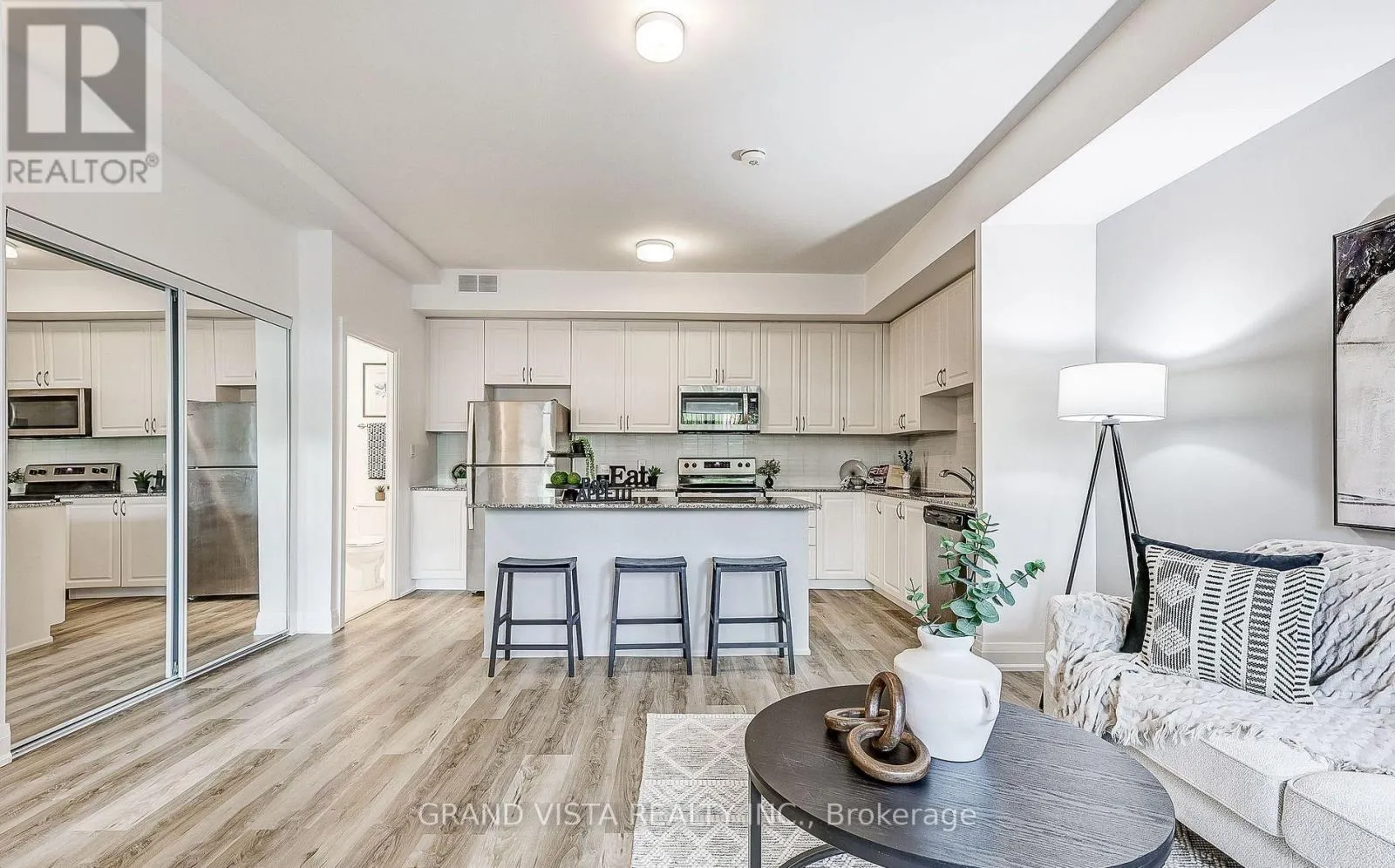 Cross Streets: Kipling & Hwy 7. ** Directions: Coles Ave or HWY 7. Welcome home! This bright and spacious stacked townhome offers a comfortable and functional layout with 3 bedrooms, a den, and 3 full bathrooms-perfect for families, professionals, or anyone looking for a little extra space. The open-concept main floor makes everyday living easy, with a natural flow between the kitchen and living area. The kitchen features stainless steel appliances, plenty of cabinet space, and a centre island that's great for quick meals or spending time with family. The living room opens onto a cozy porch, giving you a nice spot to enjoy your morning coffee or relax at the end of the day. There's also a bedroom on the main floor, ideal for guests or a home office. Upstairs, the primary bedroom includes its own ensuite and a walk-in closet, while the second bedroom is also generously sized. Both rooms have access to a private balcony, offering a quiet outdoor space to unwind. The open den on this level is perfect for working from home, studying, or creating a reading nook. You'll also appreciate the convenience of second-floor laundry. Additional features include underground parking and a private, oversized locker located right behind your parking space. The location is a major plus, with public transit just steps away and easy access to highways for commuting. You're also close to parks, shopping, restaurants, schools, Vaughan Mills, Canada's Wonderland, and more-everything you need is within reach. A great place to call home in a well-connected and growing community, A Must See!!! (id:27476)