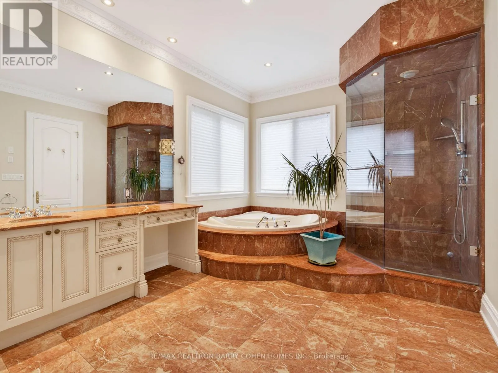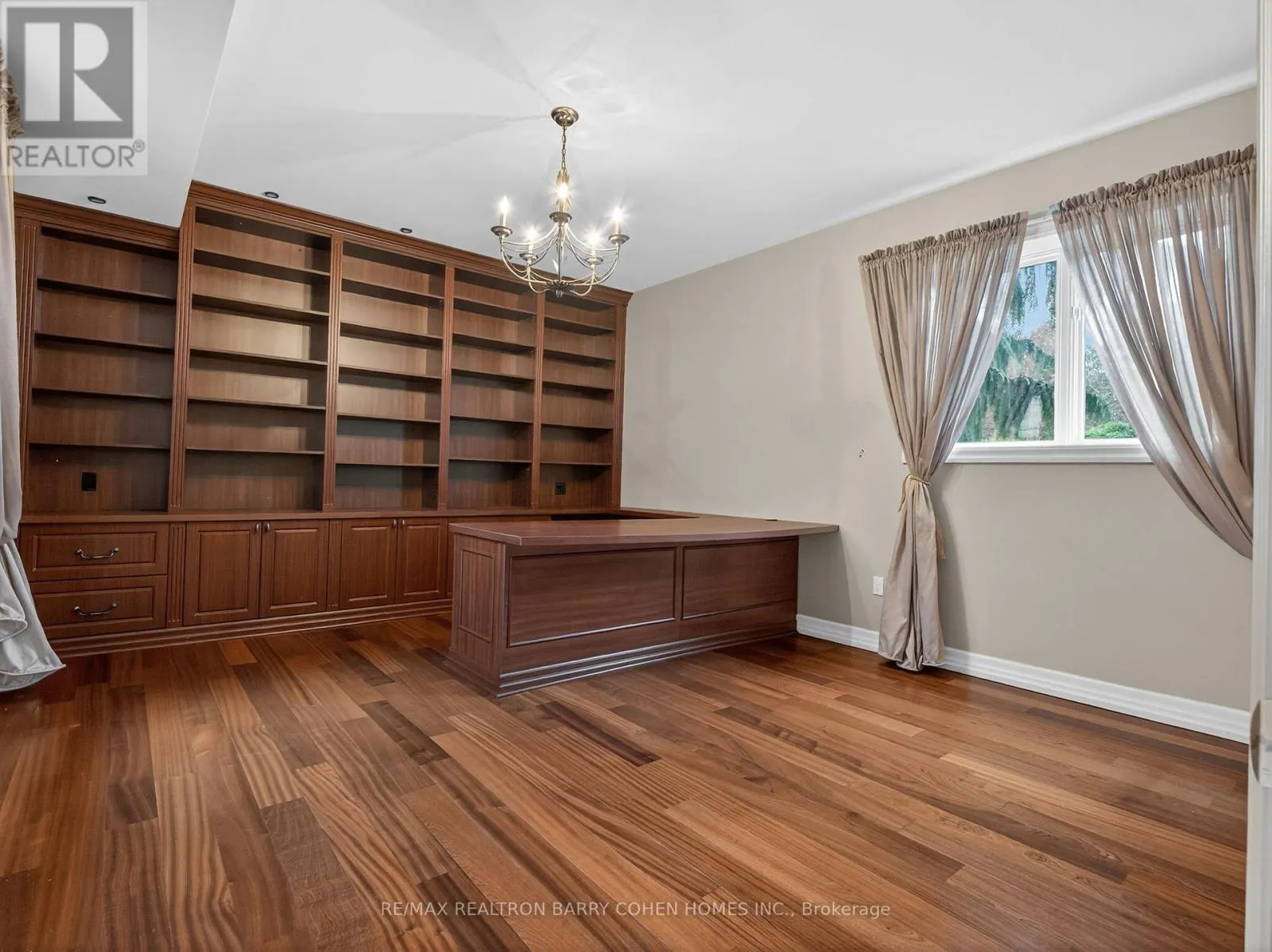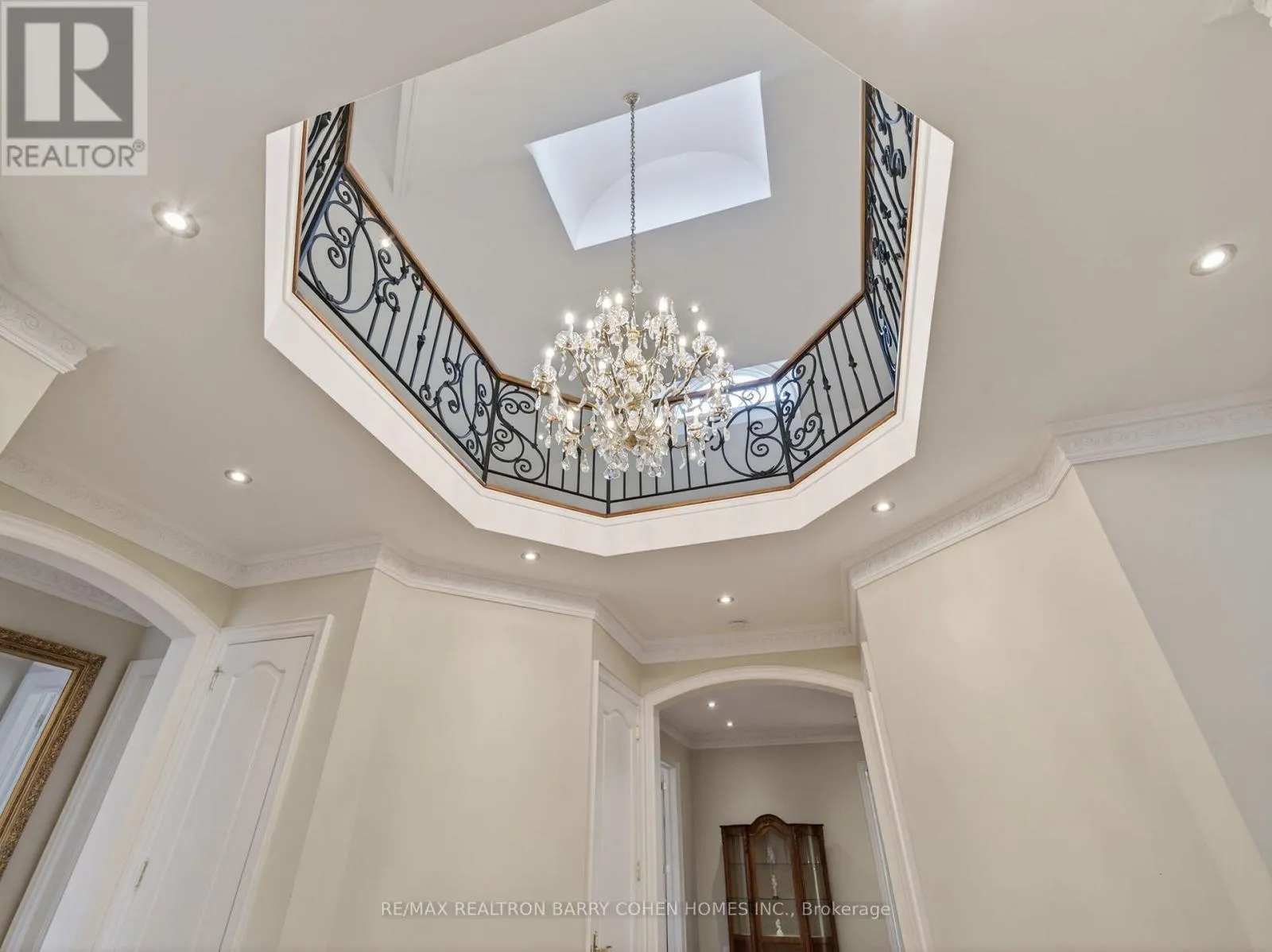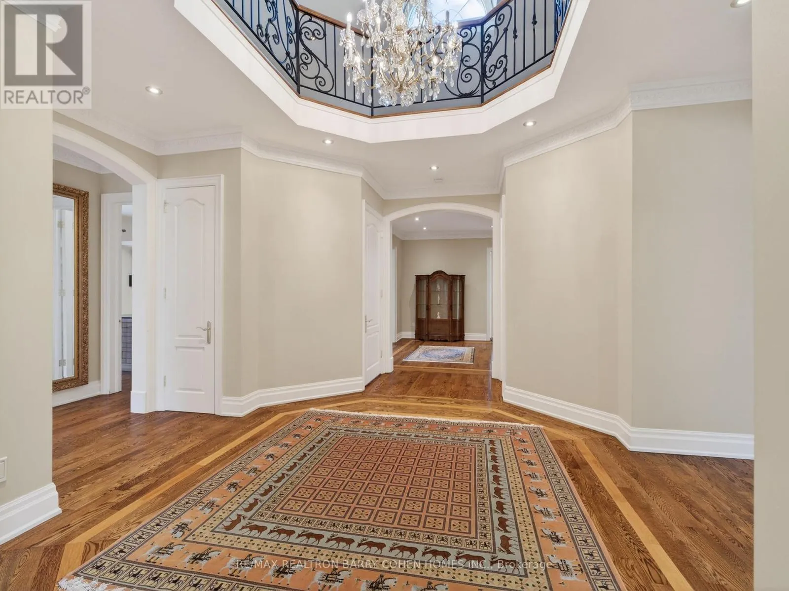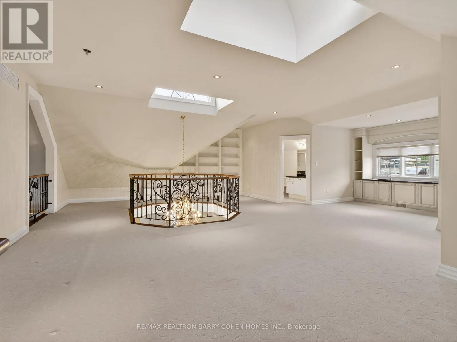 Cross Streets: Bathurst/Yonge/Centre St. ** Directions: Oakbank Pond, in-between Yonge St. and Bathurst St. Rarely available executive bungalow backing directly onto Thornhill Golf Club, nestled in one of Thornhill's most prestigious neighbourhoods. Designed by renowned architect Lorne Rose, this gated residence offers a perfect blend of luxury, privacy, and timeless elegance on an impressive 100' x 300' mature, treed lot that could serve as a canvass for your future dream estate.A circular drive leads to a grand entrance, where a dramatic double-height foyer sets the tone for the home's soaring ceiling heights and opulent finishes throughout. The main level features expansive principal rooms, ideal for both grand entertaining and comfortable family living. The stunning Great Room boasts impressive vaulted ceilings and a gas fireplace. Gourmet kitchen w/granite counters and a centre island, flows seamlessly into a bright breakfast area overlooking the private, landscaped grounds. A formal dining room with elegant coffered ceilings provides the perfect setting for hosting. The luxurious primary bedroom suite is a true retreat, featuring a coffered ceiling, serene garden views, his-and-hers walk-in closets, and a marble 6-piece ensuite. Two additional bedrooms on the main level share a semi-ensuite bath. A sprawling second-floor loft offers incredible versatility as a fourth bedroom, family's family room, or office and features a 4pc ens. wet bar, vaulted ceilings, and a charming Juliette balcony. The walk-out lower level is designed for full-scale living and entertaining, featuring a spectacular bar open to the recreation room, a large office with built-ins, an additional bedroom, sauna, spacious mudroom, and abundant storage. Outdoors, the breathtaking backyard oasis showcases mature landscaping, golf course views, an outdoor cooking area, basketball court, and plenty of green space with room for a pool and cabana. With dramatic architectural details, and unparalleled setting, this remarkable bungalow lifestyle is truly one-of-a-kind. (id:27476)