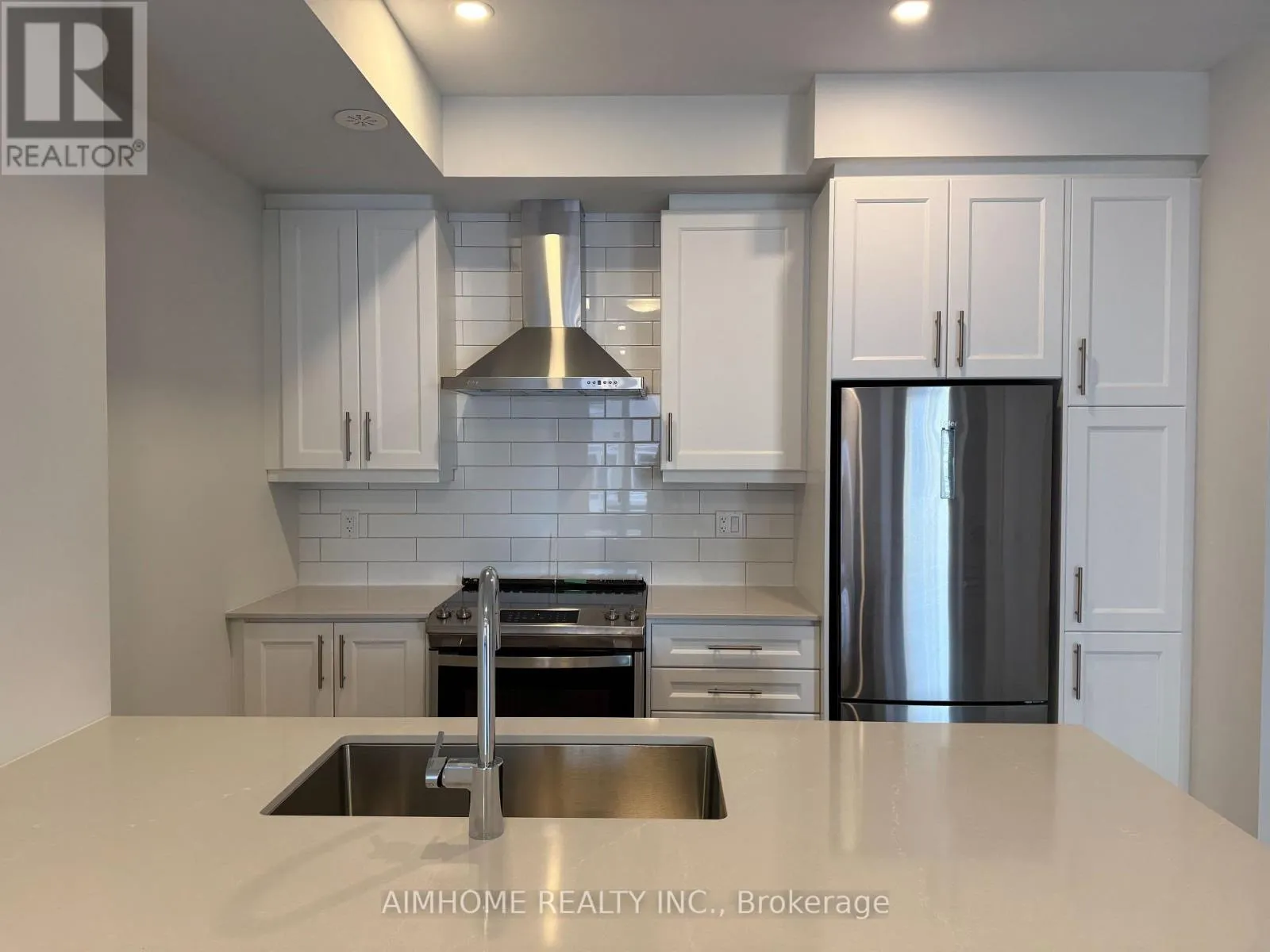 Cross Streets: Hwy 7 & Jane. ** Directions: overlooking community park. **Many builder upgrades included** Upper-level stacked townhouse features stylish vinyl flooring throughout and many premium upgrades - all purchased from the builder. Enjoy a high-end kitchen hood, Blanco single undermount sink, upgraded glass panels and porcelain tiles in bathrooms, extra pot lights, valance lighting, and upgraded kitchen cabinetry. A private locker was also purchased by the landlord for additional storage. The rooftop terrace features BBQ gas line. One parking space and one locker are included. Short walk to TTC subway station. Easy access to Highways 400 and 407. (id:27476)
