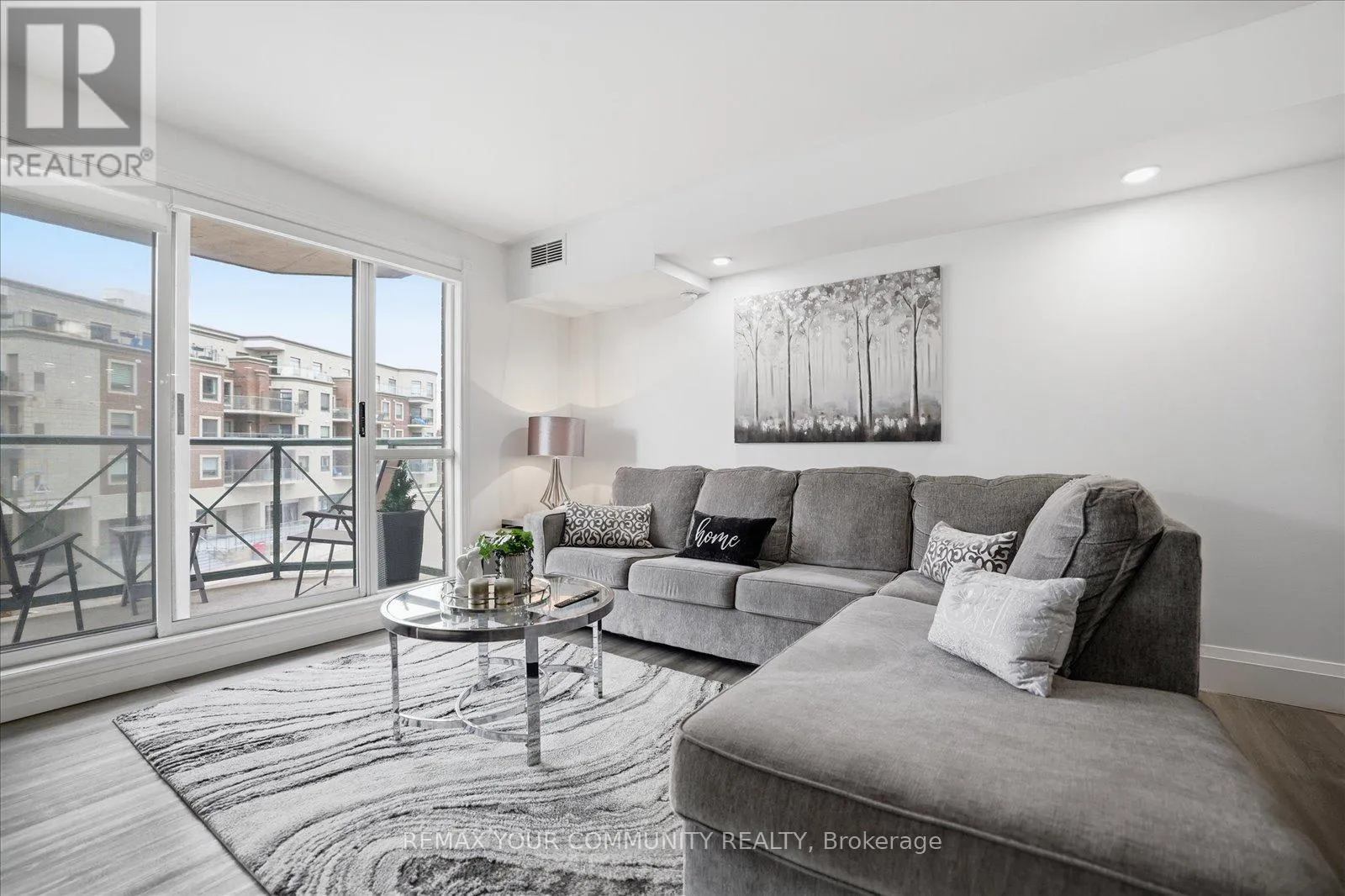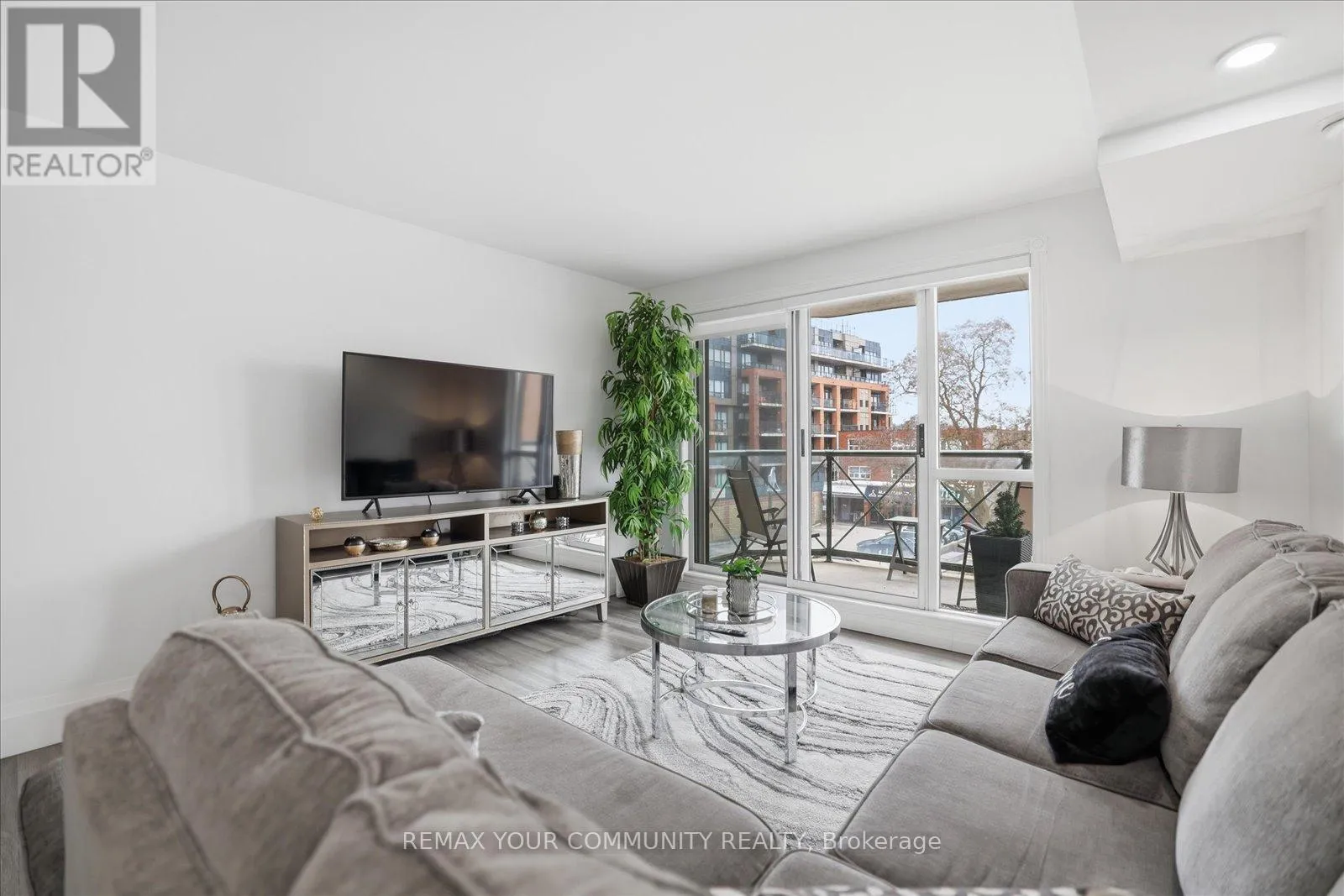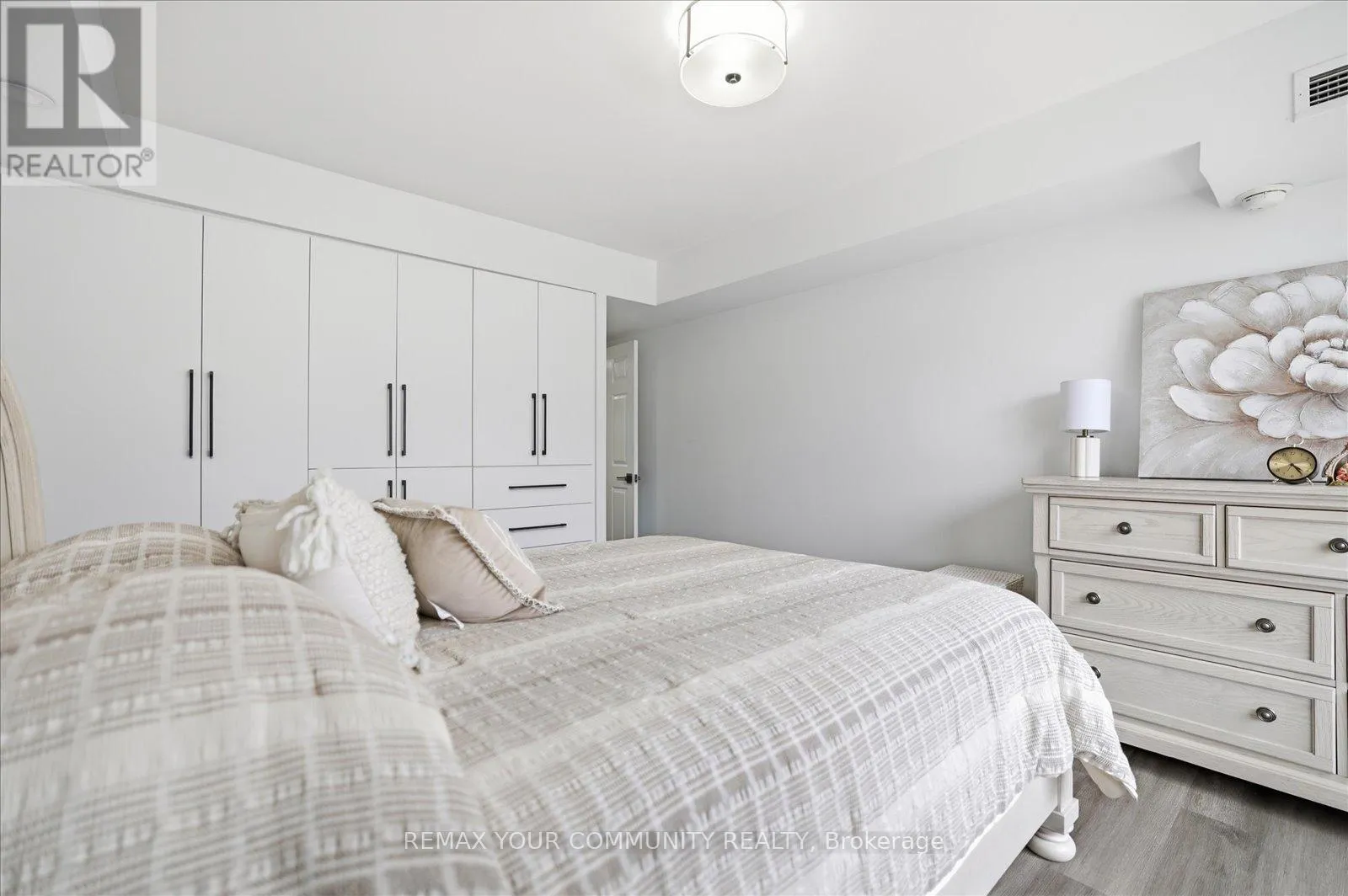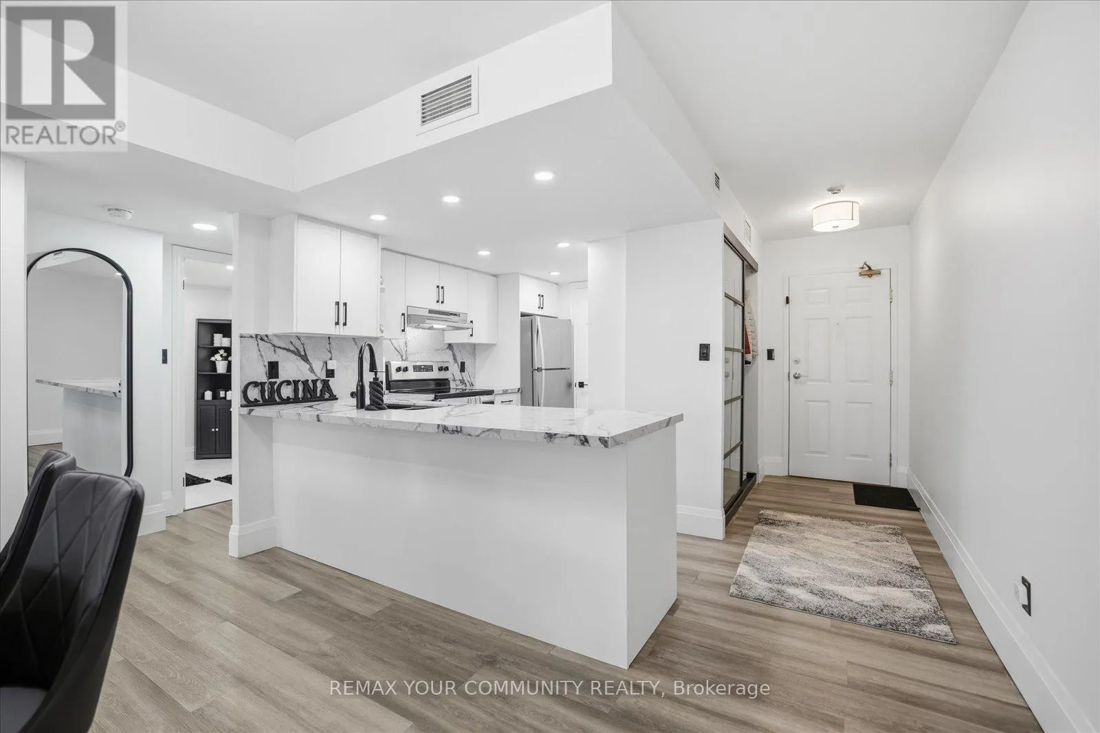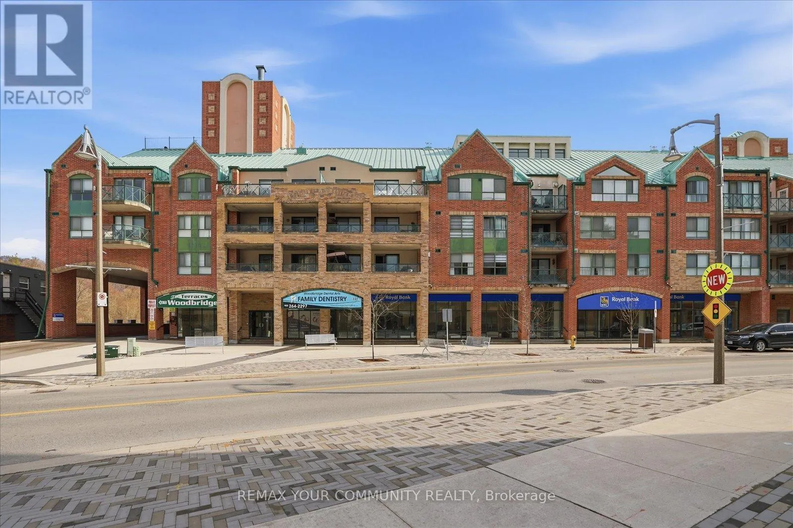 Woodbridge Ave & Islington Ave Step into elevated living at The Terraces of Woodbridge, where modern luxury meets the charm of historic Market Lane in the heart of the Woodbridge Heritage Conservation District. This rare, beautifully renovated suite, offering approximately 1,122 sq ft of thoughtfully designed space is perfect for downsizers seeking effortless comfort or young professionals desiring a stylish, turnkey home in a vibrant, walkable community. This meticulously updated interior features a brand-new kitchen with elegant quartz countertops and sleek new appliances, along with beautifully redesigned bathrooms and custom closet organizers throughout. The functional layout boasts two generously sized bedrooms, two bathrooms, and a bright open-concept living and dining area-perfect for both everyday living and entertaining. A versatile laundry/storage room adds convenience, while the balcony offers picturesque views overlooking charming Woodbridge Avenue. Ideally situated in the heart of Market Lane, enjoy unparalleled walkability just steps to boutique shops, cafés, restaurants, daily essentials, and scenic trails along the Humber River. Commuters will appreciate easy access to major highways 400, 427 & 407 and transit options, being only 12 minutes from the VMC Subway. Residents of this well-managed building enjoy a host of premium amenities, including a private terrace, fitness centre with sauna and change rooms, party/meeting room, guest suite, visitor parking, on-site management, and a beautifully landscaped courtyard. Maintenance fees conveniently include heat, water, TV, and internet-offering exceptional value and peace of mind. Experience refined living in a vibrant and historic community! This turnkey home is ready to impress its next owner. (id:27476)