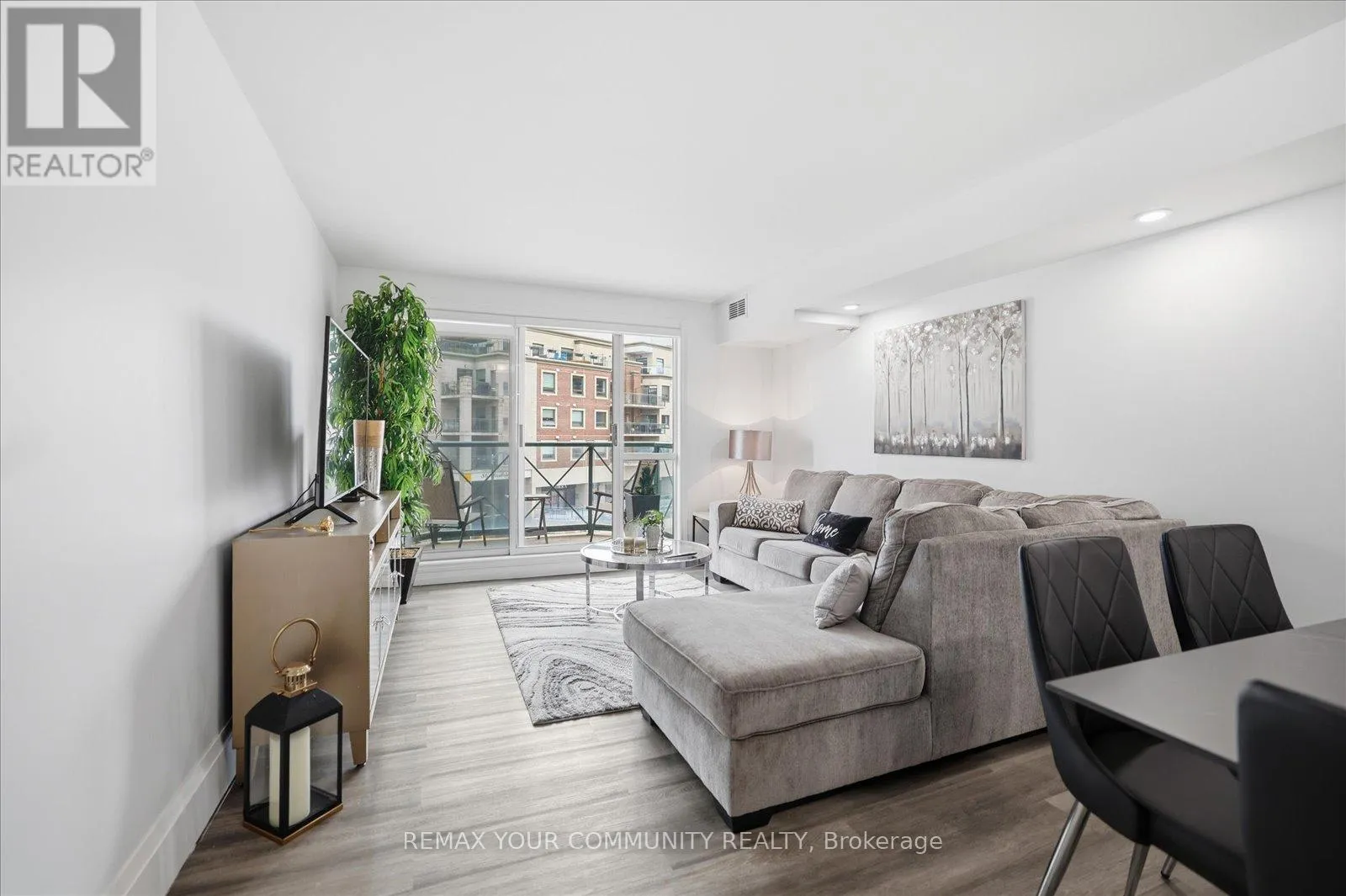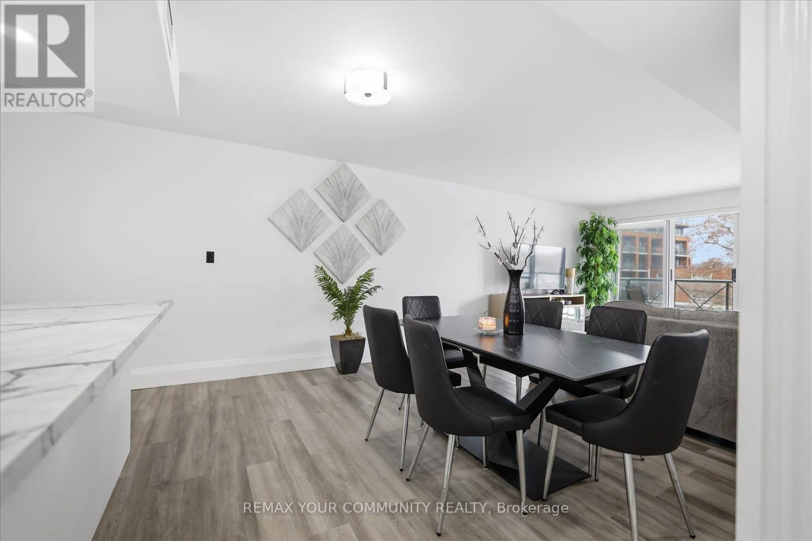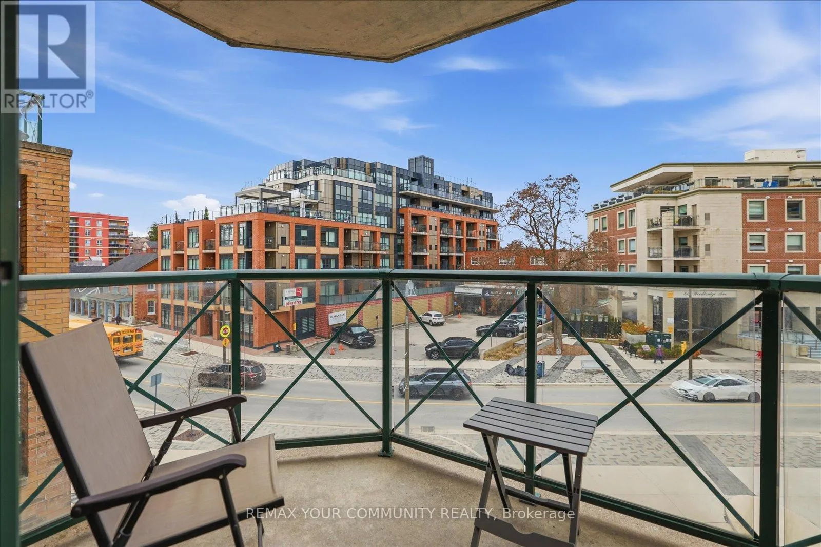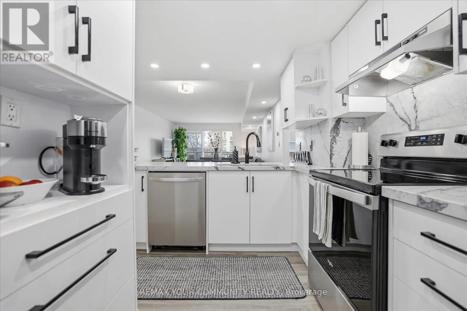Woodbridge Ave & Islington Ave Step into elevated living at The Terraces of Woodbridge, where modern luxury meets the charm of historic Market Lane in the heart of the Woodbridge Heritage Conservation District. This rare, beautifully renovated suite, offering approximately 1,122 sq ft of thoughtfully designed space is perfect for downsizers seeking effortless comfort or young professionals desiring a stylish, turnkey home in a vibrant, walkable community. This meticulously updated interior features a brand-new kitchen with elegant quartz countertops and sleek new appliances, along with beautifully redesigned bathrooms and custom closet organizers throughout. The functional layout boasts two generously sized bedrooms, two bathrooms, and a bright open-concept living and dining area-perfect for both everyday living and entertaining. A versatile laundry/storage room adds convenience, while the balcony offers picturesque views overlooking charming Woodbridge Avenue. Ideally situated in the heart of Market Lane, enjoy unparalleled walkability just steps to boutique shops, cafés, restaurants, daily essentials, and scenic trails along the Humber River. Commuters will appreciate easy access to major highways 400, 427 & 407 and transit options, being only 12 minutes from the VMC Subway. Residents of this well-managed building enjoy a host of premium amenities, including a private terrace, fitness centre with sauna and change rooms, party/meeting room, guest suite, visitor parking, on-site management, and a beautifully landscaped courtyard. Maintenance fees conveniently include heat, water, TV, and internet-offering exceptional value and peace of mind. Experience refined living in a vibrant and historic community! This turnkey home is ready to impress its next owner. (id:27476)