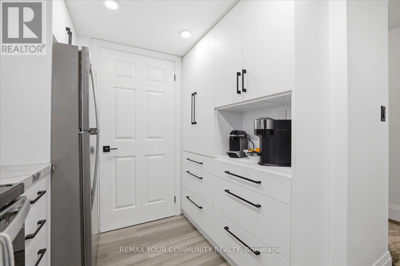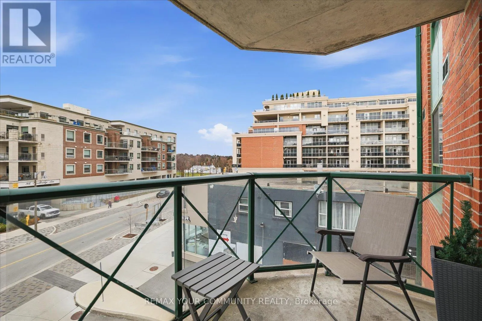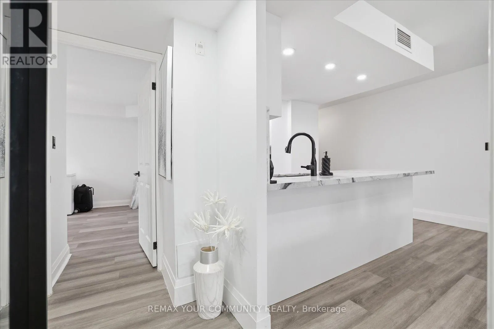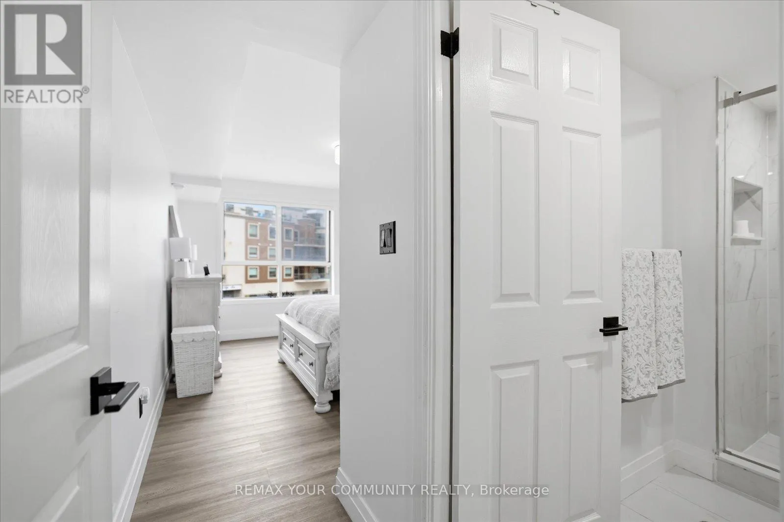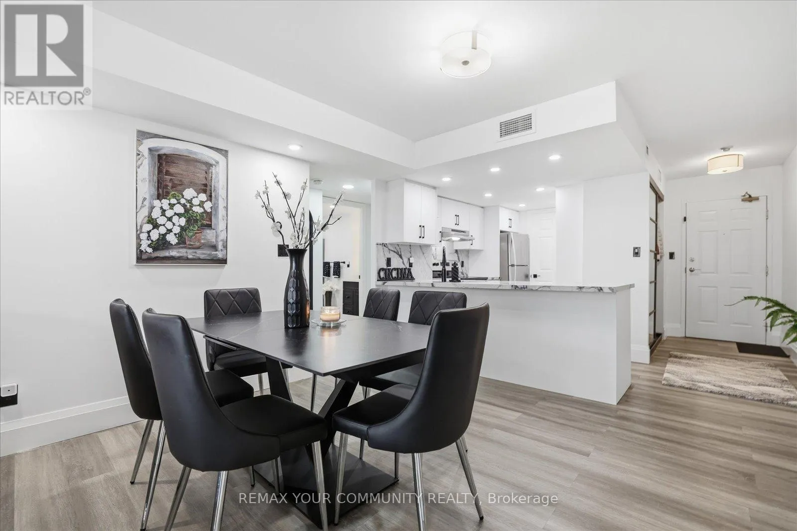 Woodbridge Ave & Islington Ave Step into elevated living at The Terraces of Woodbridge, where modern luxury meets the charm of historic Market Lane in the heart of the Woodbridge Heritage Conservation District. This rare, beautifully renovated suite, offering approximately 1,122 sq ft of thoughtfully designed space is perfect for downsizers seeking effortless comfort or young professionals desiring a stylish, turnkey home in a vibrant, walkable community. This meticulously updated interior features a brand-new kitchen with elegant quartz countertops and sleek new appliances, along with beautifully redesigned bathrooms and custom closet organizers throughout. The functional layout boasts two generously sized bedrooms, two bathrooms, and a bright open-concept living and dining area-perfect for both everyday living and entertaining. A versatile laundry/storage room adds convenience, while the balcony offers picturesque views overlooking charming Woodbridge Avenue. Ideally situated in the heart of Market Lane, enjoy unparalleled walkability just steps to boutique shops, cafés, restaurants, daily essentials, and scenic trails along the Humber River. Commuters will appreciate easy access to major highways 400, 427 & 407 and transit options, being only 12 minutes from the VMC Subway. Residents of this well-managed building enjoy a host of premium amenities, including a private terrace, fitness centre with sauna and change rooms, party/meeting room, guest suite, visitor parking, on-site management, and a beautifully landscaped courtyard. Maintenance fees conveniently include heat, water, TV, and internet-offering exceptional value and peace of mind. Experience refined living in a vibrant and historic community! This turnkey home is ready to impress its next owner. (id:27476)
