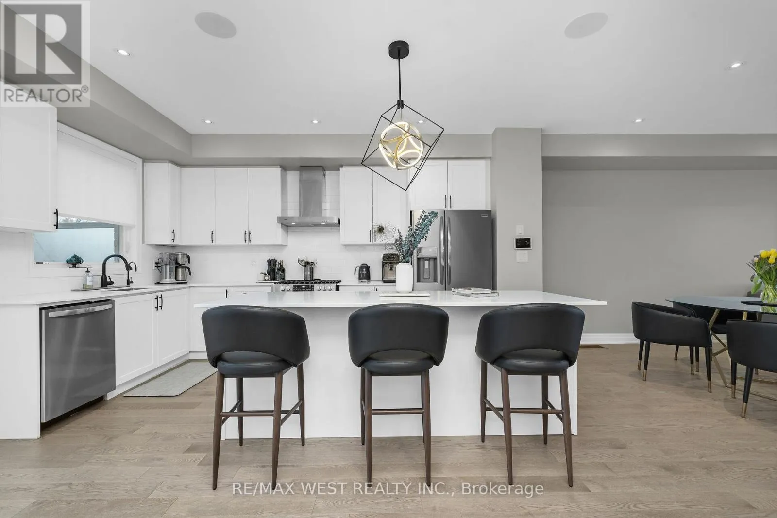 Pine Valley and Willis Don't miss out on this gorgeous 3-Storey Bright and Spacious Townhouse! Located in Desirable East Woodbridge, centrally located and close to several amenities. Open Concept layout with over 2000 sq ft of living space, and large principal rooms. Main floor boasts 9' ceilings, with pot light throughout and large balcony off the kitchen; great space to entertain guests. Upper level offers 3 Bedrms and 2 baths. Primary bedroom includes both a 5-pc ensuite and Lrg W/I closet, w closet organizers thru-out. Subtle neutral decor, with upgraded floors, pickets, countertops, audio system thru-out, alarm and security cameras, reverse osmosis, CVAC, upgraded light fixtures etc. Entire house freshly painted. This home comes equipped with central air, and BBQ gas line, and basement bathroom rough-in. (id:27476)