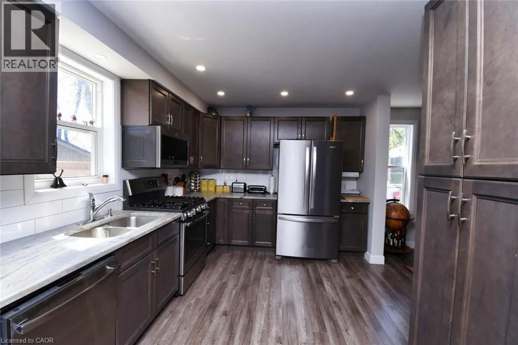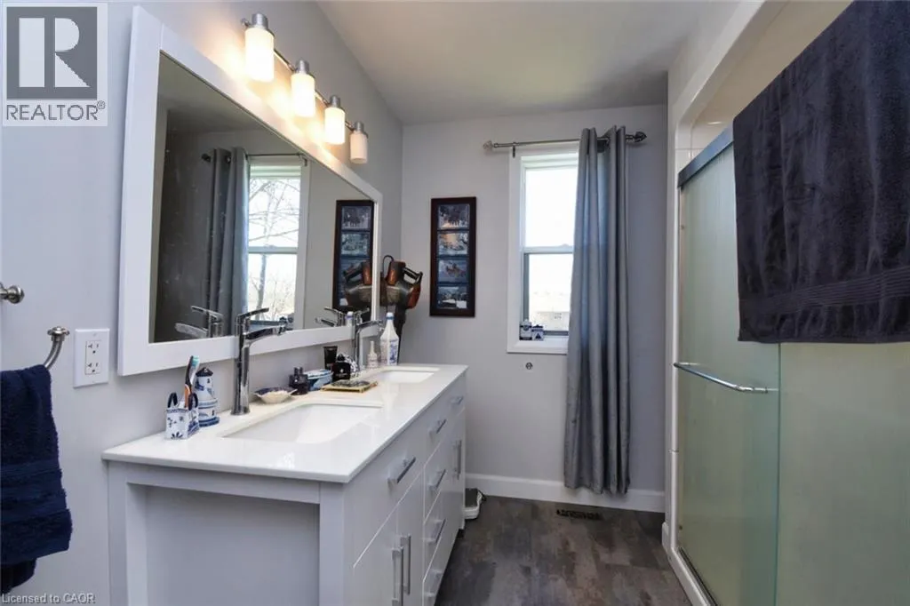 Villa Nova & Thompson Custom Country Home with Detached 2-Car Garage â Minutes to Waterford! Welcome to this beautifully crafted custom home, perfectly situated just outside Waterford, offering peaceful country living with the convenience of being only 30 minutes to Brantford or Hamilton. Set on a massive double-sized lot with stunning views, this 3-bedroom, 3-bathroom home is sure to impress from the moment you arrive. Step onto the covered front porch and enter a spacious, welcoming foyer. The main level features a bright and open layout with oak staircase, pot lighting, and laminate flooring throughout the living and dining areas. Cozy up by the natural gas fireplace in the dining room or entertain in the chefâs dream kitchen boasting solid wood cabinetry with soft-close doors, under-cabinet lighting, leathered granite countertops, and plenty of prep space. The main level 4-pc bathroom includes double sinks, a walk-in shower with upgraded shower head and jets â perfect for guests or family. From the kitchen, step through sliding glass doors onto a 26â x 16â deck with louvered walls for privacy and a gas BBQ rough-in â ideal for summer gatherings. Upstairs youâll find three generous bedrooms, including a stunning primary suite with walk-in closet, private ensuite, and water closet discreetly tucked behind elegant glass barn doors. A convenient 2-pc bath and laundry area complete the upper level. Need more space? The lower level offers a bright rec room with pot lights and large windows, partial rough-in for a 4th bathroom, a cold room, and a tidy mechanical area â perfect for a future bedroom, party room, or workshop. This home also includes a detached 2-car garage with hydro, spray foam insulation in the basement, and R60 insulation in the attic for energy efficiency. Enjoy peaceful mornings or evening sunsets from your private backyard oasis â country living at its finest! (id:27476)