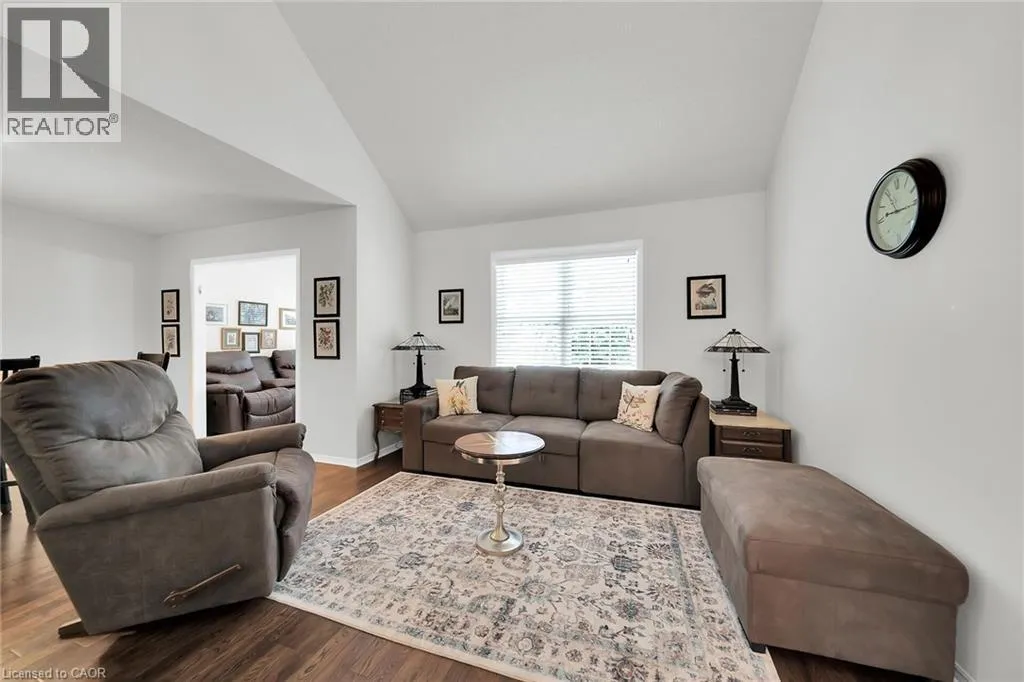 From QEW to Victoria Av to Frederick Av to Butternut Court More spacious than it looks! Welcome to this extremely well maintained bungaloft with attached garage and interior entry- a front covered porch and backyard deck. The main floor features an open concept layout for easy access complete with a 4 season sunroom, 2 bedrooms with ample closets, 2 full bathrooms, living room/dining room and separate laundry room with extra storage. The spacious upper bungaloft has a large bedroom area with sitting room and 3pc bathroom. The lower level features tons of additional space including a large rec room, a large flex space/bonus room/workshop, 2 pc bath, utility room and office/den. . This fabulous property is located in Heritage Village, Vineland - a senior friendly adult lifestyle community with nearby Clubhouse - for owners' exclusive use- with a heated salt water pool, saunas, gym, wood-working shop, craft room and more. Many services are included for your comfort and the property is surrounded by vineyards, orchards and parks. Shopping is close-by, also close to highway access and dining. Nestled between the Niagara Escarpment and Lake Ontario on the Niagara Wine Route. Come and view your new home! (id:27476)