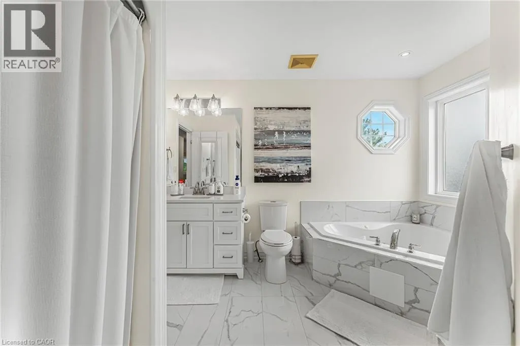 Niagara Stone Rd to Line 1 Rd to Casselman Blvd to Loretta Opportunity is knocking! Fabulous 2 storey home on a very desirable street in Virgil, Niagara-on-the-Lake. ALL 4 Bedrooms on one level, ideal for the growing family or a buyer enjoying the extra space for home office and guest rooms for friends and family. Renovated, updatedâ¦nothing to do but move in and enjoy! Built by Mountainview Homes, a premier builder in Niagara. The layout on the main floor is open-concept. Includes kitchen with S/S appliances, stone countertops including island, spacious living room and dining room areas with walk-out to a covered porch and your own stunning heated in-ground pool. Next to the pool is a large grass area, perfect to plant a garden or have kids/grandkids play. A pie shaped lot. The back of the property measures 73 ft across. Fully fenced, private, planted trees along the border, and bonus no neighbours behind, just the ravine. On the upper level are 4 bedrooms, 1 full bath with soaker tub and separate shower. The staircase and railing are custom made, 100% hardwood, while the floors throughout the main level and second floor are new engineered hardwood. The lower level has a full bath, bedroom, living room, and exercise space. Over all, the home is over 2,700 sqft on 3 levels. Another bonus is you are only a few steps to a beautiful park complete with walking trails, seating areas, and splash pad for the kids. See photos #3 and #4 for floorplans, upgrades, and features. Treat yourself and come to view this stunning home! (id:27476)