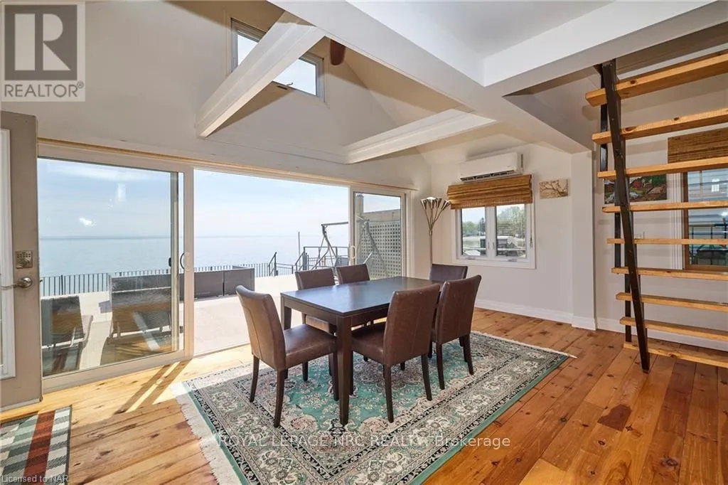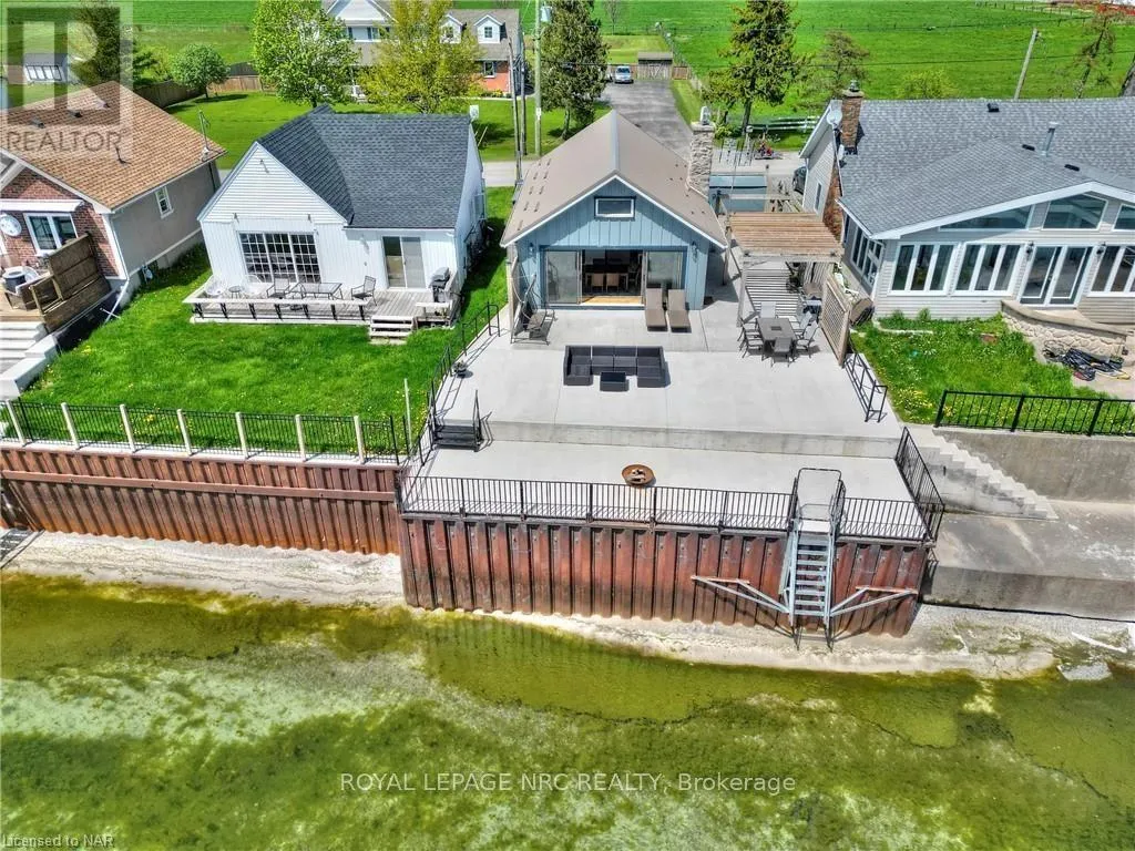 Drive down burnaby road, right on lakeshore road. Location location location. Centre of bay, elevated 15 feet off of a cliff, overlooking the shallowest and warmest of the great lakes, Lake Erie, this cottage cannot be compared to. Solid concrete back and front patio means no maintenance required and giant recreation area for guests, the outdoor living is so unique it can only be experienced. Whether you want to feel the cool breeze off the lake in the hot summer or enjoy a night under stars with a bon fire, anything is possible in this fully winterized cottage. Swim in the lake and experience the true cottage life with direct water access. Invite family and friends over for barbecues, beach days, get a tan near the beautiful pergola, or float on water tubes, the possibilities are endless! Large break wall prevents erosion to the property and there are two levels of concrete with a metal railing and stairs for safety. Natural gas fireplace and heat pump provides low-cost heat and natural well water means no water and sewer charges. The interior of the cottage is the perfect size with giant sliding doors for those lazy summer days, bathroom with a glass shower, large dining area, 2 bedrooms, and a beautiful kitchen. Located 2 minutes from long beach, and 10 minutes from grocery stores, gas stations, fast food restaurants, convenience stores, golf, sky diving, schools, and churches. The cottage is move-in ready with all appliances included, new metal roof (2021), new paved driveway (2022) and 240v amp-plug for EV-charging in the garage This picture-perfect view is remarkable, don't miss your chance to see it! (id:27476)