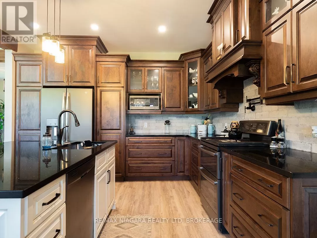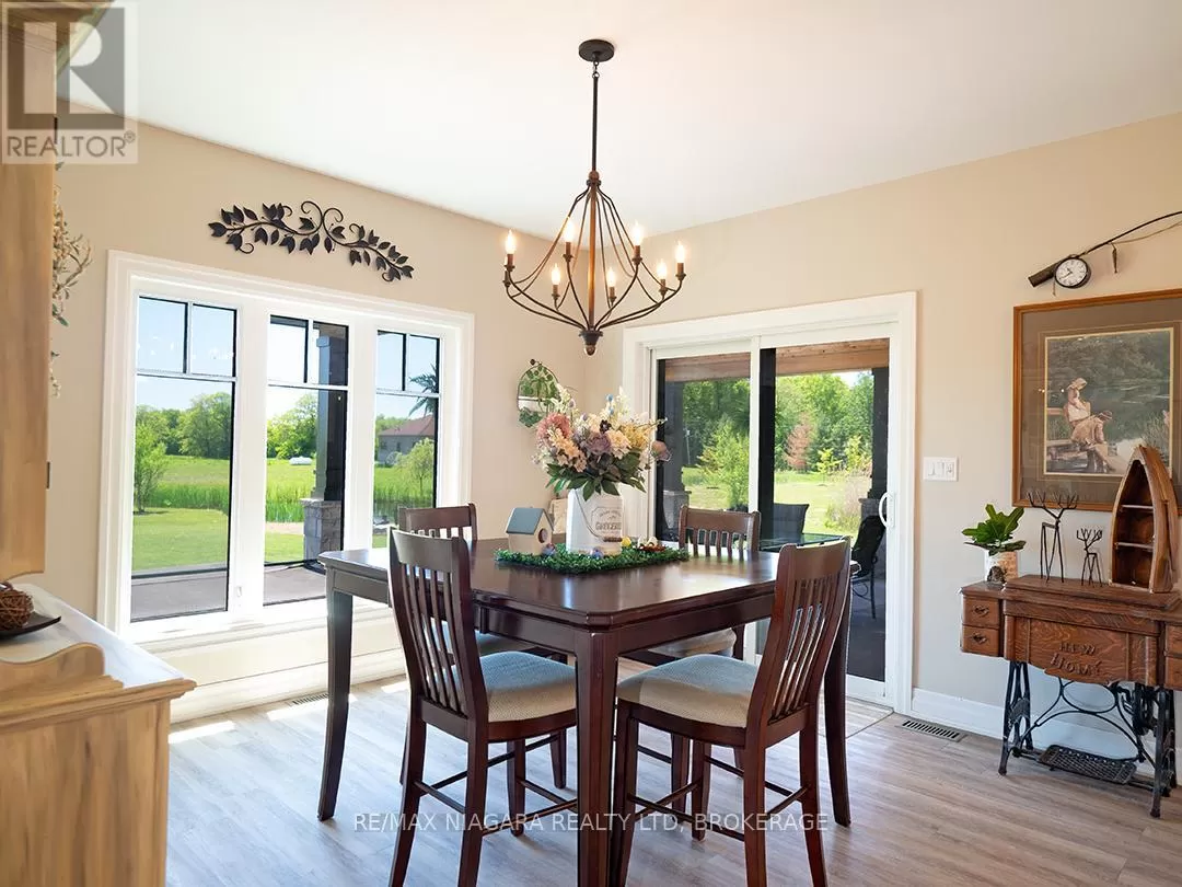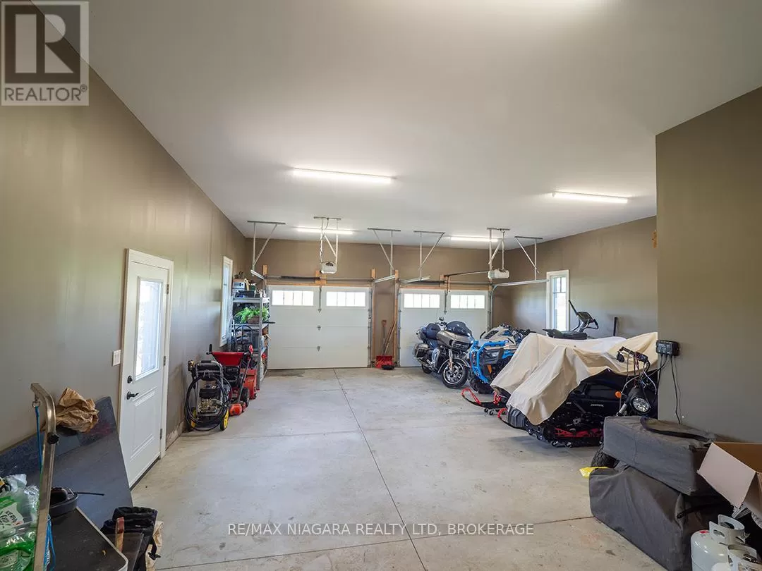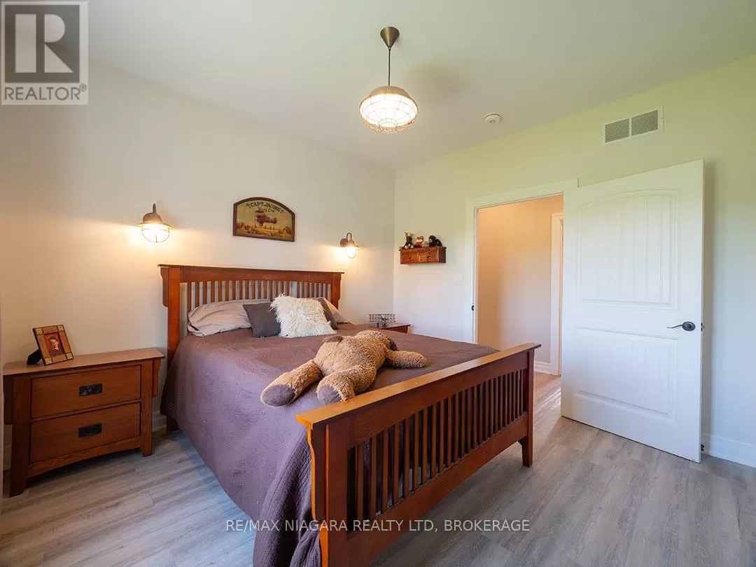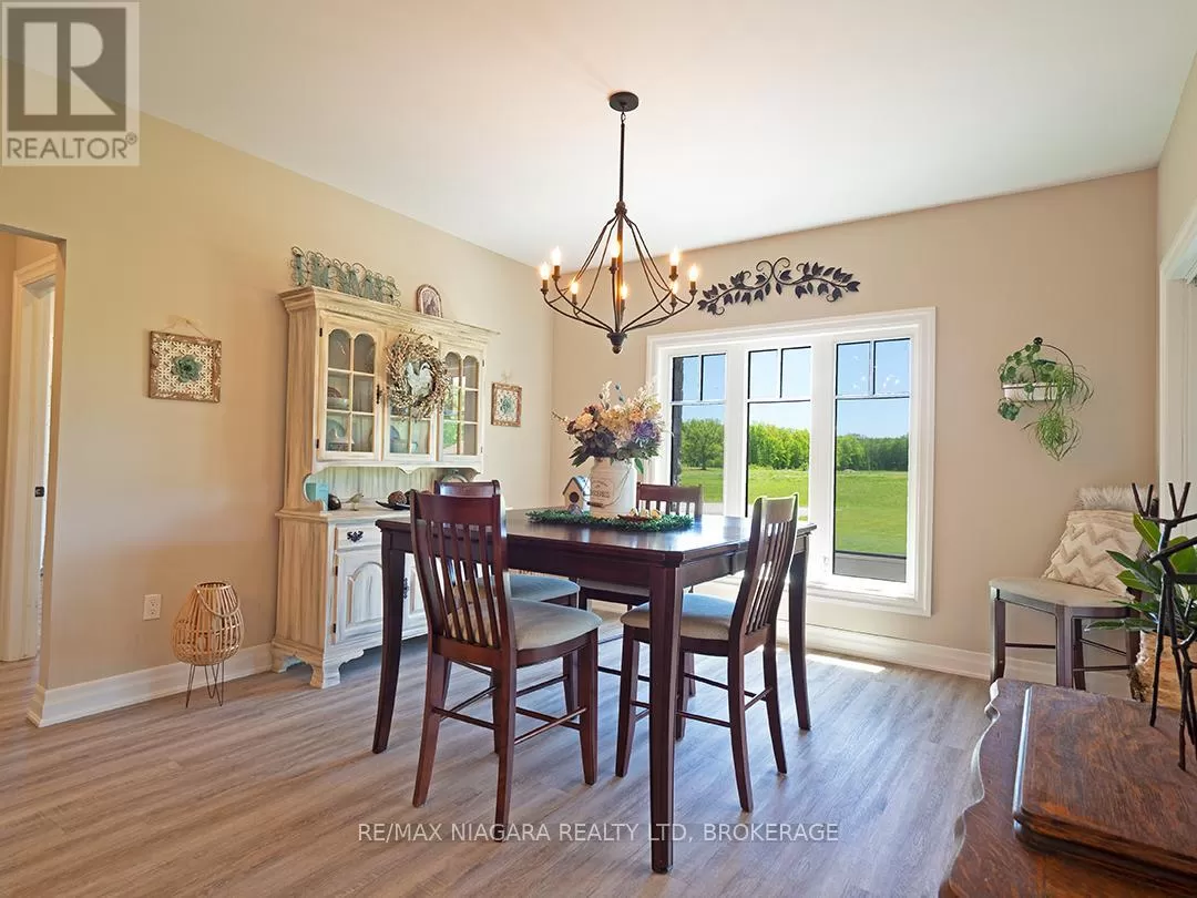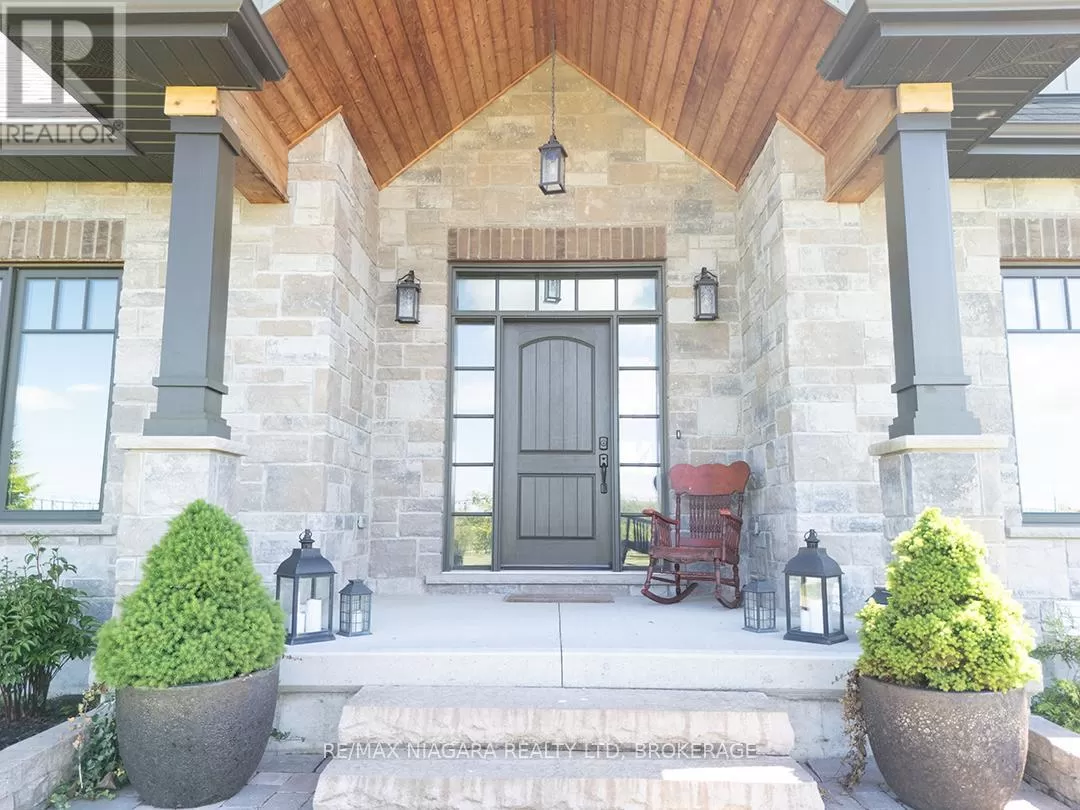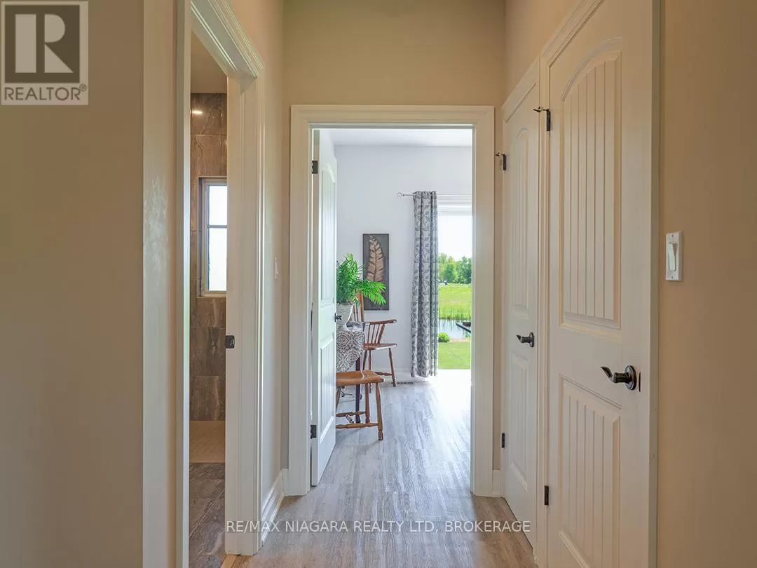 Cross Streets: Green Road. ** Directions: Phillps Road, south to Lambert, west to the home. Carefully designed, custom-built bungalow offering nearly 3,000 sqft of main floor living with 4 bedrooms, 3 bathrooms, and a full, unfinished basement on beautifully landscaped 2.11 Acre lot. A 32' x 40' detached garage/workshop that's fully outfitted with an auto hoist, compressor and airlines, overhead heater, concrete floor, and 200 Amp service is an added bonus! The home's layout was purposefully planned with two distinct living areas-an east wing & a west wing. The east wing features the primary suite, complete with a large walk-in closet, luxurious five-piece ensuite, and direct access to the backyard deck and hot tub. The west wing functions as a fully self-contained in-law suite with its own separate front entrance, spacious living room with kitchenette, bedroom with sliding doors to the backyard, laundry closet, and a three-piece bathroom with a zero-entry walk-in shower. At the heart of the home is an expansive open concept kitchen, dining, and living area that ties everything together. The Oakridge Premium kitchen is outfitted with granite counters and opens onto a bright dining room with sweeping backyard views. The living room is anchored by a stone fireplace and features vaulted ceilings with dramatic two-storey, floor-to-ceiling windows that lead out to a stunning covered pavilion designed to match the interior vaulted ceiling profile. An attached double garage leads into a large, bright laundry and mudroom with plenty of storage. Accessibility was top of mind in the home's design, with wide 36" doorways and 48" hallways throughout. Energy efficiency is another standout feature, with triple-pane windows, double-pane sliding doors, and on-demand hot water. The outdoor space is just as impressive, with extra parking, a landscaped sandy firepit area overlooking a serene pond with windmill aeration, and the kind of quiet country setting that's hard to find yet close to everything - offering central access to all points in Niagara, Haldimand, and Hamilt (id:27476)