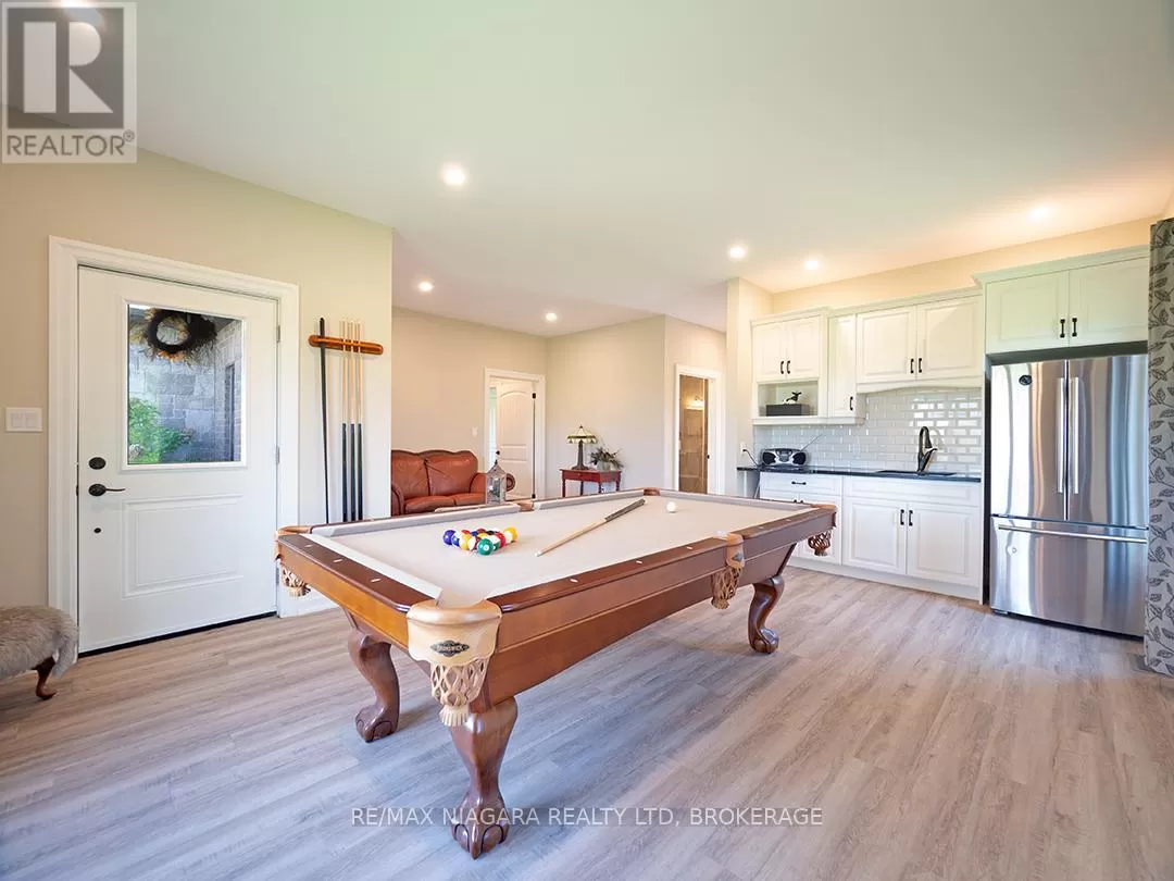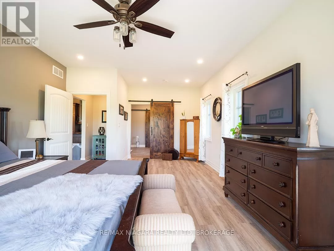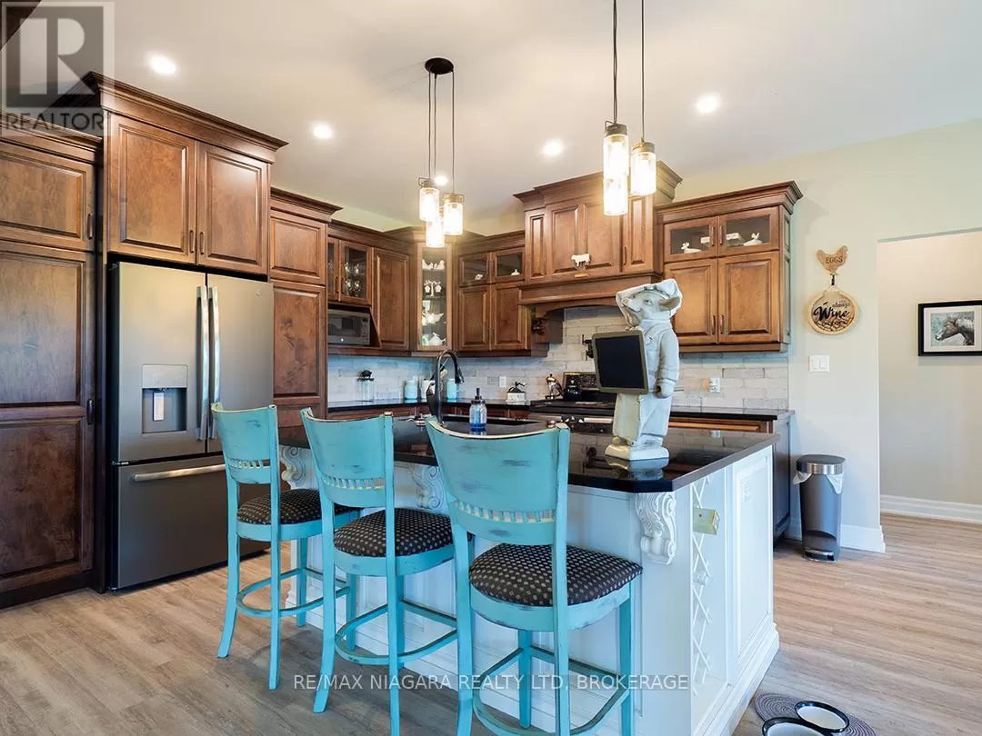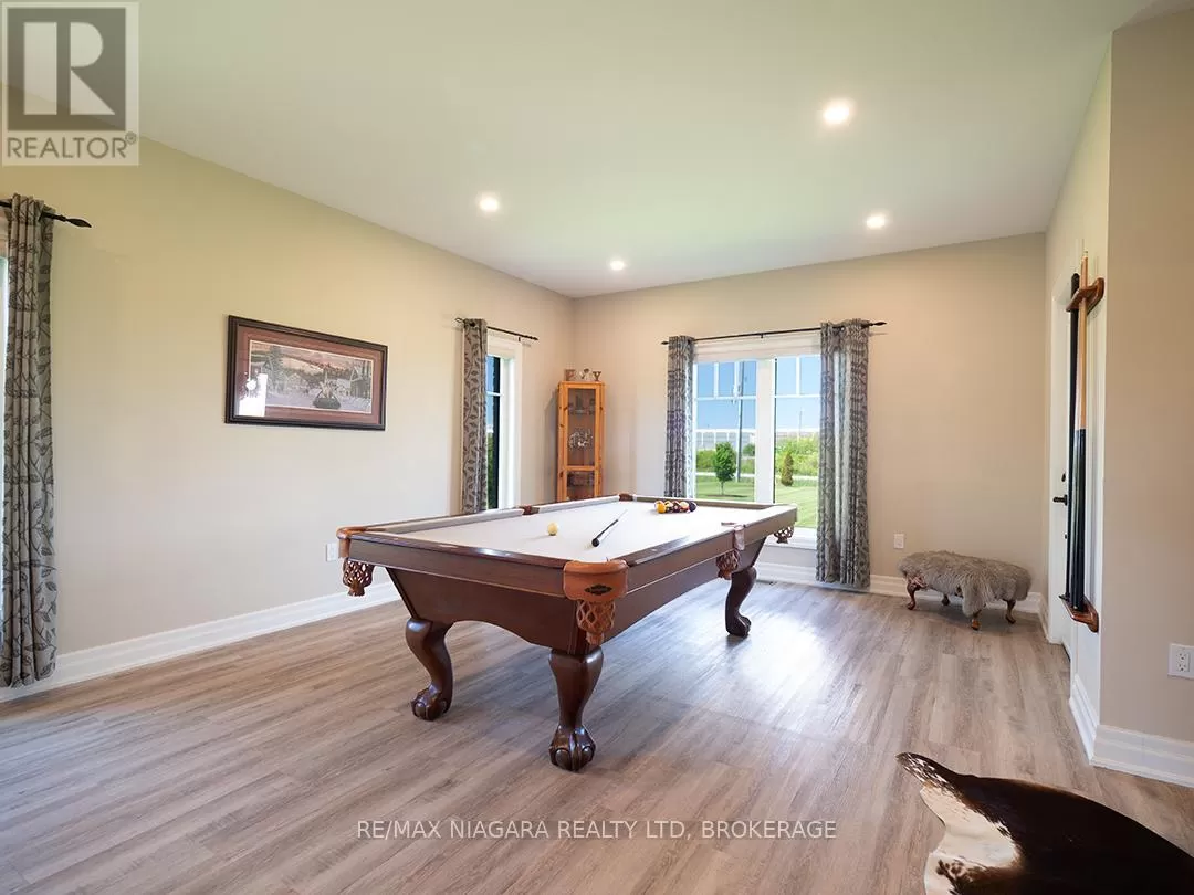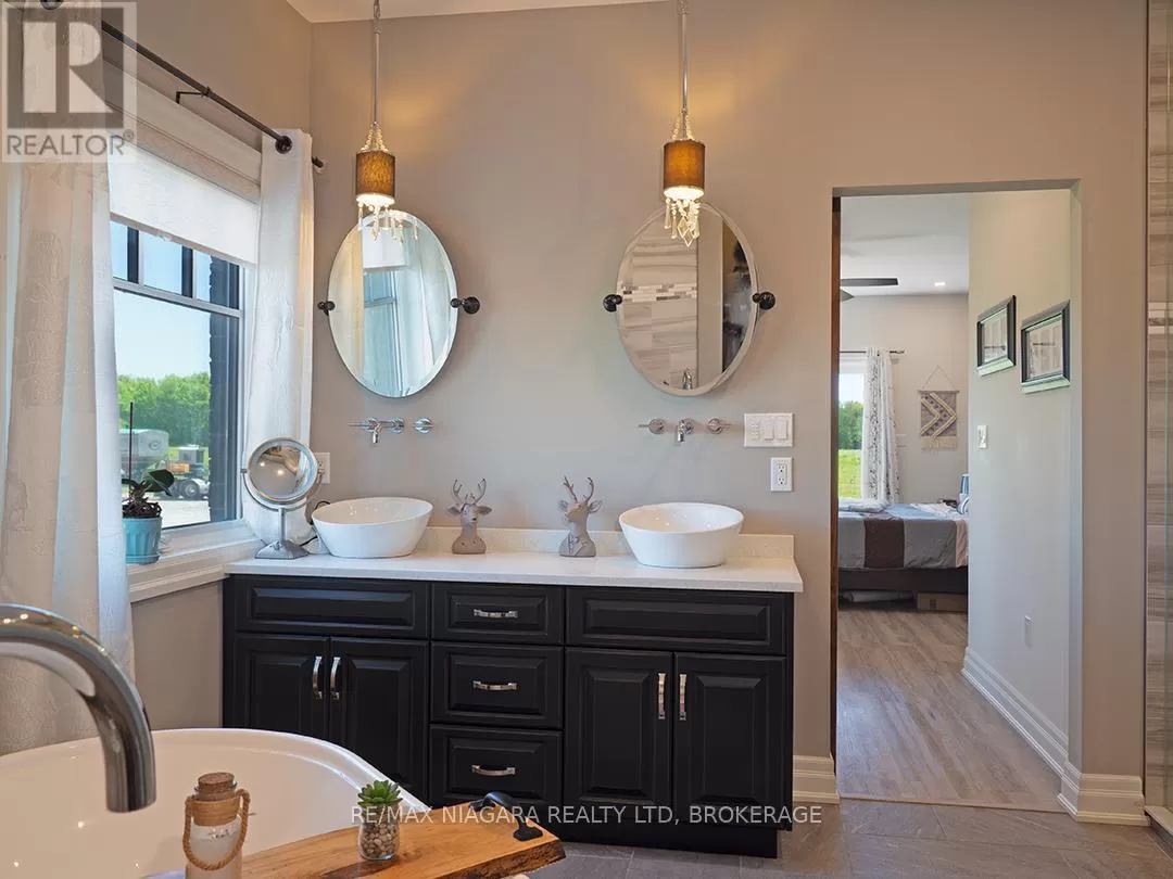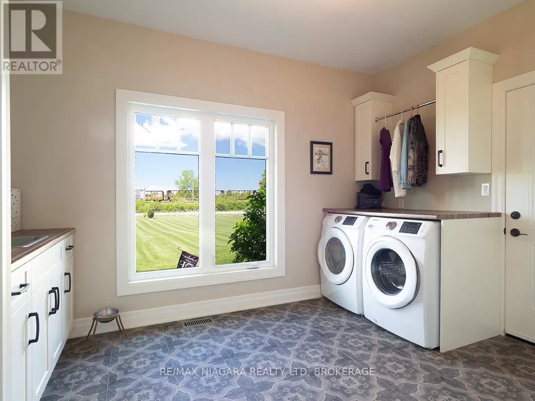 Cross Streets: Green Road. ** Directions: Phillps Road, south to Lambert, west to the home. Carefully designed, custom-built bungalow offering nearly 3,000 sqft of main floor living with 4 bedrooms, 3 bathrooms, and a full, unfinished basement on beautifully landscaped 2.11 Acre lot. A 32' x 40' detached garage/workshop that's fully outfitted with an auto hoist, compressor and airlines, overhead heater, concrete floor, and 200 Amp service is an added bonus! The home's layout was purposefully planned with two distinct living areas-an east wing & a west wing. The east wing features the primary suite, complete with a large walk-in closet, luxurious five-piece ensuite, and direct access to the backyard deck and hot tub. The west wing functions as a fully self-contained in-law suite with its own separate front entrance, spacious living room with kitchenette, bedroom with sliding doors to the backyard, laundry closet, and a three-piece bathroom with a zero-entry walk-in shower. At the heart of the home is an expansive open concept kitchen, dining, and living area that ties everything together. The Oakridge Premium kitchen is outfitted with granite counters and opens onto a bright dining room with sweeping backyard views. The living room is anchored by a stone fireplace and features vaulted ceilings with dramatic two-storey, floor-to-ceiling windows that lead out to a stunning covered pavilion designed to match the interior vaulted ceiling profile. An attached double garage leads into a large, bright laundry and mudroom with plenty of storage. Accessibility was top of mind in the home's design, with wide 36" doorways and 48" hallways throughout. Energy efficiency is another standout feature, with triple-pane windows, double-pane sliding doors, and on-demand hot water. The outdoor space is just as impressive, with extra parking, a landscaped sandy firepit area overlooking a serene pond with windmill aeration, and the kind of quiet country setting that's hard to find yet close to everything - offering central access to all points in Niagara, Haldimand, and Hamilt (id:27476)