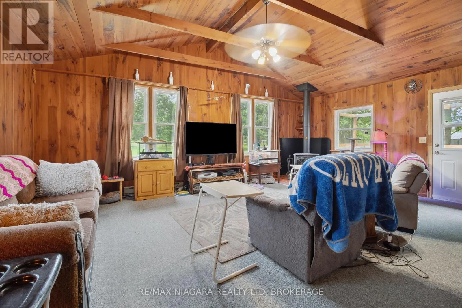 HWY 3 TO GOLF COURSE RD Welcome to 11284 Golf Course Road, a charming 2-storey home nestled in the peaceful and picturesque community of Wainfleet. Situated on a generous 1.154-acre lot, this property offers plenty of space for outdoor living and recreation, complete with a dream garage/workshop featuring a trailer amp and additional storage.Recent updates include a new roof (2023) and nearly all new windows, ensuring peace of mind and energy efficiency. Additional features include a boiler hot water tank, a water filtration system, and a cistern conveniently located on the left side of the home.Step inside to a warm and welcoming main floor. The kitchen, with its classic hardwood flooring, offers functionality and style, including two pantries for ample storage. The spacious family room is carpeted for comfort and designed for relaxation or entertaining. It showcases a vaulted wood ceiling and a newer gas fireplace, adding character and coziness during cooler months.From the family room, walk out onto a 16' x 15' newer deck, perfect for outdoor dining, lounging, or enjoying the tranquility of the surrounding nature.This is a rare opportunity to own a beautifully maintained home on a spacious lot in a sought-after rural setting. Don't miss your chance to experience the charm and space of country living just minutes from city conveniences. (id:27476)