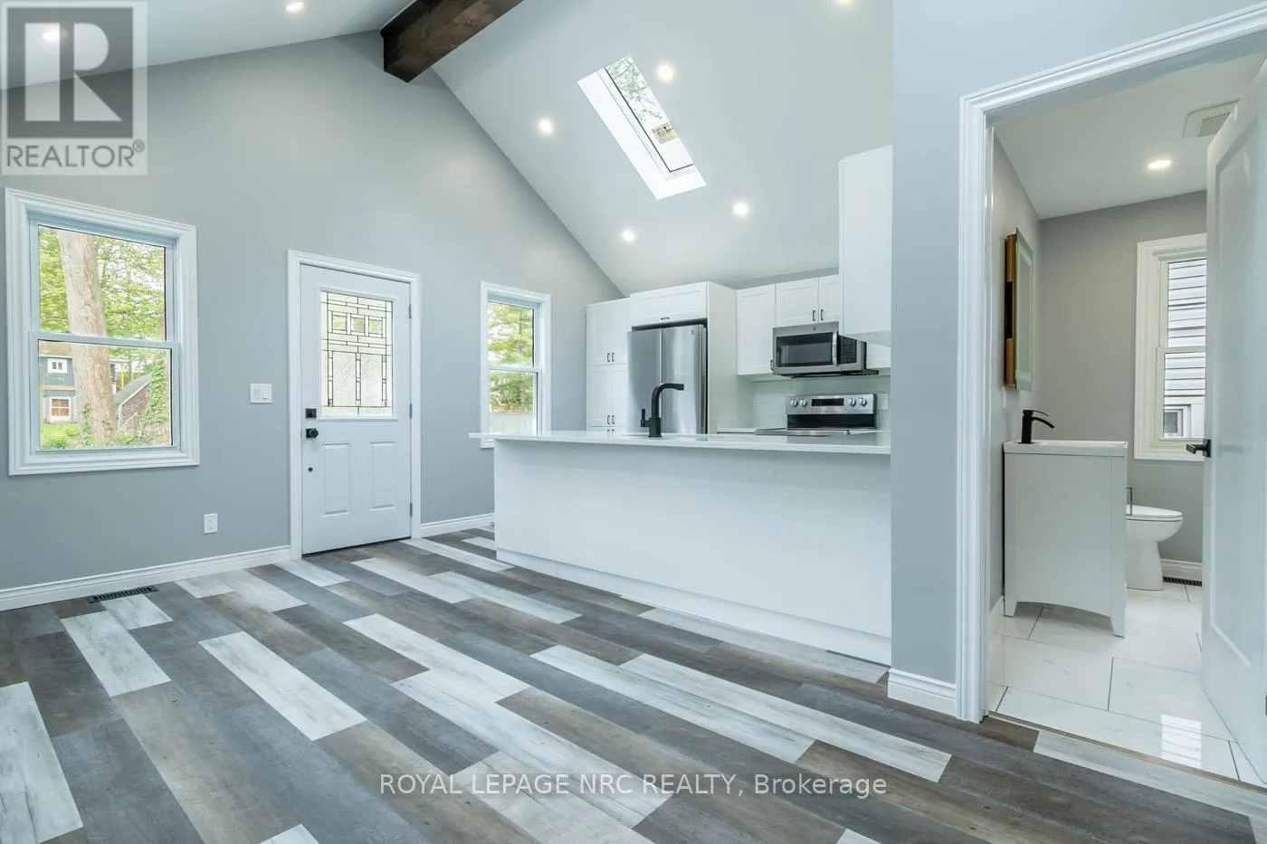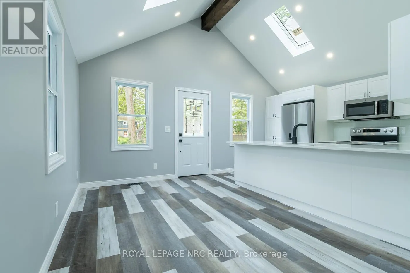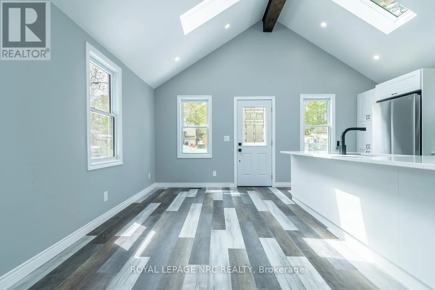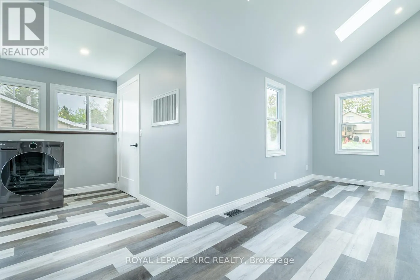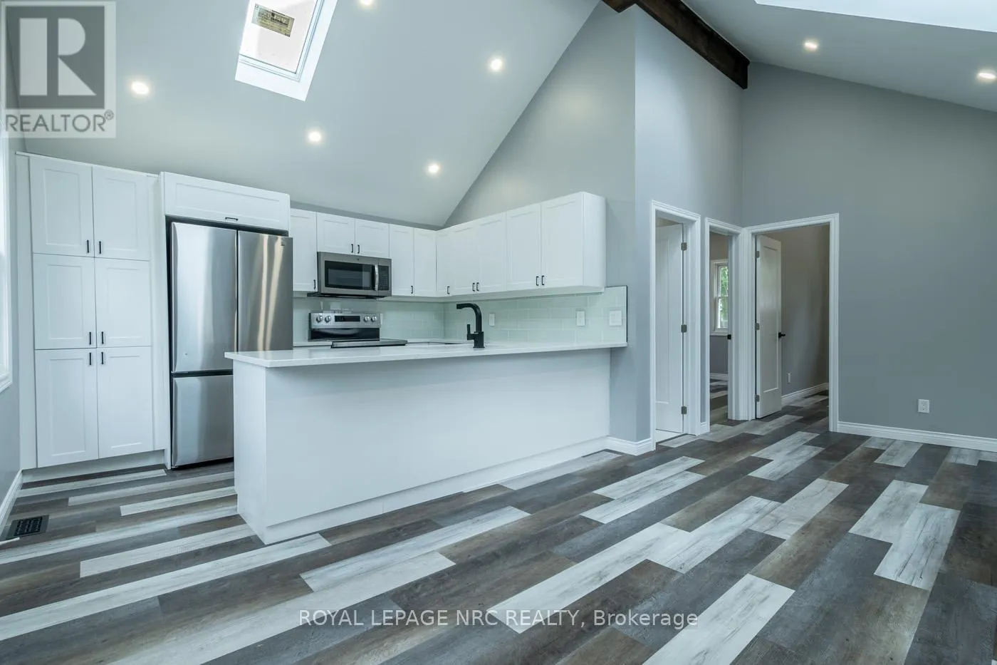 Cross Streets: Quarry and Lakeshore. ** Directions: lakeshore to quarry, to woodland. Welcome home to 10556 Woodland Drive, located on a dead end street in beautiful Wainfleet! Whether you are a retiree, first time buyer, airbnb investor, cottager or downsizer, this is the place for you! This home has Sand beach access on Lake Erie and has been fully renovated top to bottom! When you arrive at the home you'll be greeted by a new double concrete driveway, front and rear concrete patios, new siding, fascia and eaves! The Septic system is all new in late 2024 (25 year warranty), The Well has a new pump, pressure tank, and Culligan whole home filtration system! This eliminates any water/sewer bill, and provides peace of mind for years to come! The home is heated with new forced air gas furnace, cooled with new central air, and has a owned tankless water heater! The interior of the home features 13 foot vaulted ceilings, 3 new skylights, vinyll flooring throughout, potlights galore and a beautfiul wood beam! The kitchen features new cabinetry with slow close hinges, quartz countertop, glass backsplash, black granite sink, and a bar overhang! The bathroom is complete with huge porcelain tiles, new soaker tub, new vanity, new bluetooth/lighted mirror and new fan! All included appliances are brand new (fridge, stove, dishwasher, microwave rangehood and 2 in 1 washer/dryer combo). All wiring and plumbing has been updated, and the roof was reshingled in 2018! The crawl space is dry, has a sump pump and has been newly spray foam insulated this year! Close to public beach access, Gord Harry conservation trail, The Quarries, skydiving, horseplay niagara, restaurants and more! Truly turnkey, nothing to do but enjoy! Can close anytime! (id:27476)