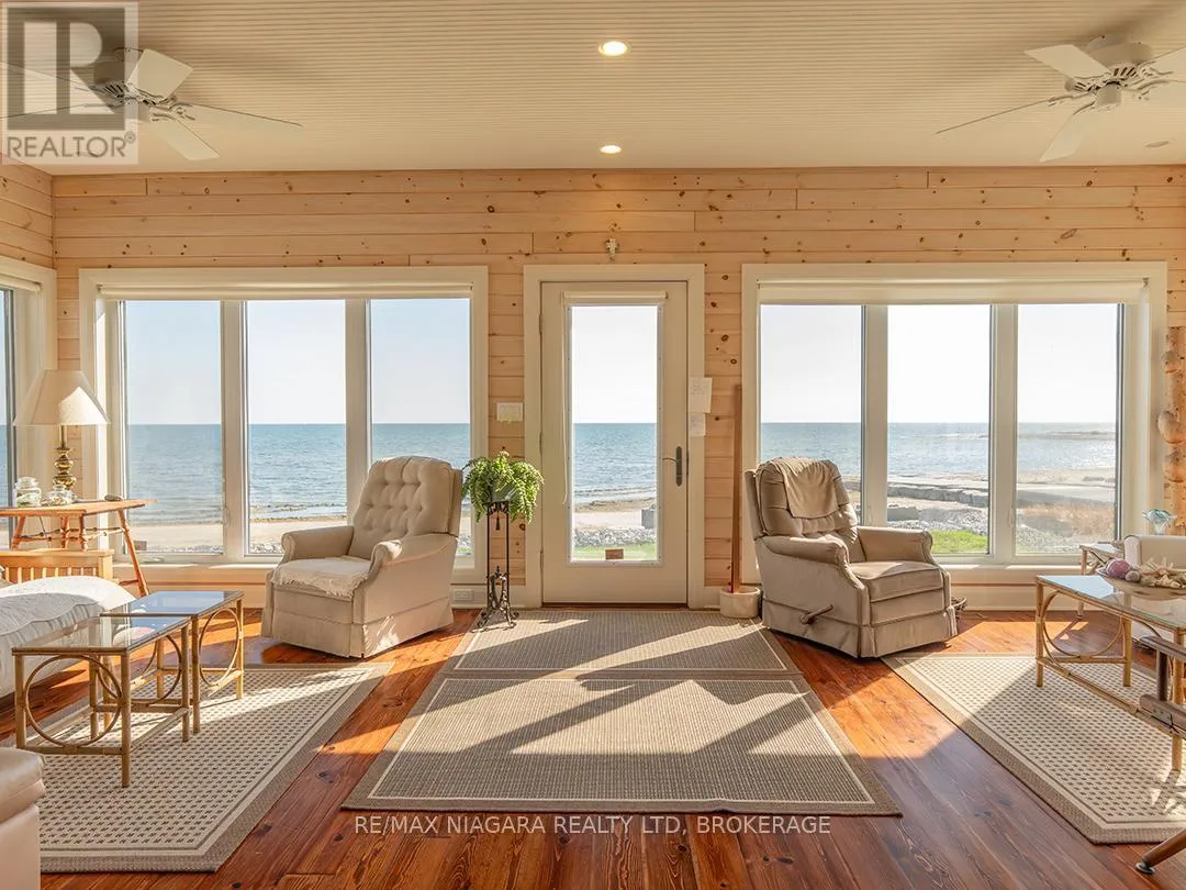 Cross Streets: Lakeshore Road. ** Directions: Just east of Long Beach Conservation. Year-Round Lakefront Living! There's still time to enjoy beach days this season at 12895 Old Lakeshore Road in Wainfleet. This 2,264 sq.ft. year-round home sits at the west end of Old Lakeshore Road, right beside Long Beach Conservation Area, and offers a prime setting on the shores of Lake Erie. Built new in 2009, this two-storey, 3 bedroom, 2 bath home sits on a 300 deep lot that extends into the lake and includes its own sandy beach. Solidly constructed with Maibec siding-valued for its long-lasting finish and durability-a metal roof, and high-quality windows, its a home built to stand the test of time on the waterfront.The open-concept main floor includes two bedrooms, a full bath, and a bright kitchen with custom cabinetry that flows into the living and dining areas. A gas fireplace adds warmth, while the front room lined with wall-to-wall windows frames the water and fills the space with natural light. A walk-out leads to the sunny front patio and lawn, stretching to the protective seawall and sandy beach with shallow, family-friendly waters.Upstairs, a spacious loft with vaulted ceilings, large lake-facing windows, a private 4-piece bath, and walk-in closet serves as an ideal, private primary suite or an airy gathering space. Wood accents throughout bring a relaxed beach house feel, with lake views enjoyed from almost every room. Additional highlights include a whole-home natural gas generator, outdoor shower for rinsing off after a day on the beach, full insulated basement ready for finishing or storage, and a detached single garage. The home is serviced by a cistern and an extensive water treatment system that includes reverse osmosis, a whole-home UV light, and additional filtration.A rare opportunity to own a lakefront property in one of Niagara's most loved communities. (id:27476)