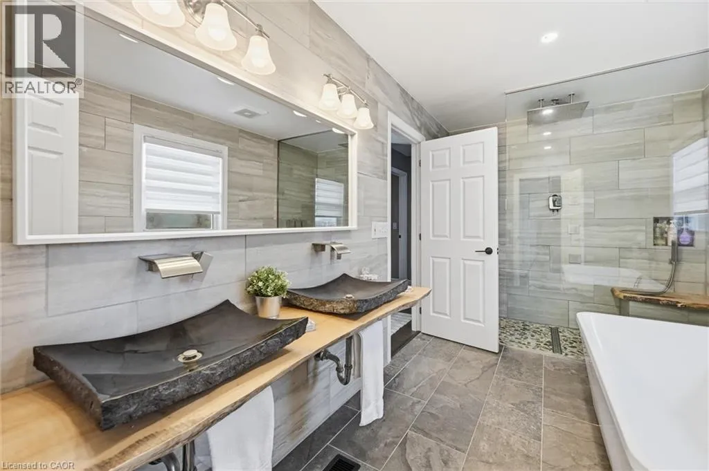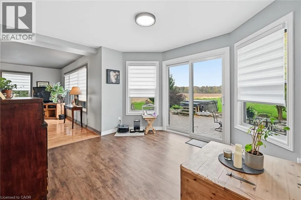 Forks Rd and Highway 3 Escape to your own slice of countryside paradise with this beautifully updated hobby farm set on over 4 picturesque acres in the heart of Niagara. Perfectly blending modern comfort with rural tranquility, this property offers endless possibilities. The detached, fully renovated home spans over 3700 square feet of living space with 4 bedrooms, 3 baths and features bright, open-concept living with high-end finishes, a gourmet kitchen with quartz island & high end appliances, master bath with spa like glass shower, his/her sink, radiant floor heat & standalone tub, cozy fireplace, expansive windows overlooking rural scenery and an attached garage with walk-up from the finished basement. Step outside to your covered porch with soffit lighting and enjoy peaceful morning coffees, evening sunsets, and views of your private acreage. The perfect mix of modern living with country character. Main heating/cooling provided by new 3 ton heat pump. The perfect family home with a swimmable pond(15â deep), hot tub, ample space & parking, room for all the recreational toys. Located near Niagaraâs renowned wineries, Dorothy Rungeling airport, school bus pickup at end of drive for elementary & HS, 12 mins to Port Colborne marina, 4 mins to the arena and library, Fire & ambulance 4 minutes from home. Perfect for large families, move in and enjoy. (id:27476)