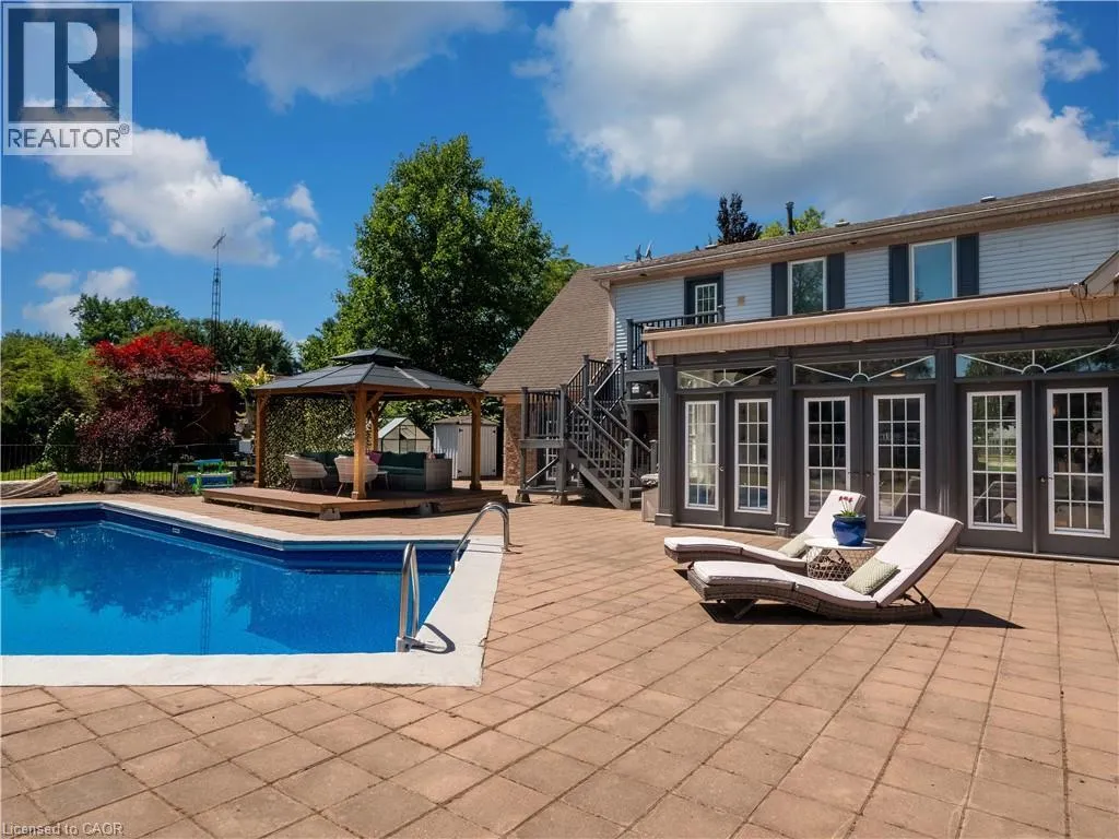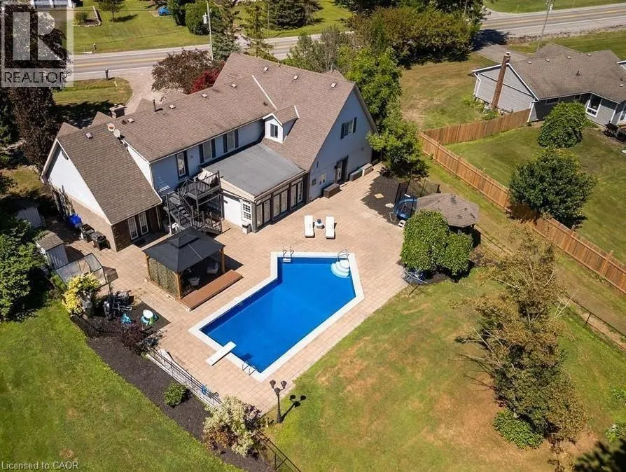Victoria Ave E (Regional Rd 24) to Hwy 3 Welcome to 42573 Highway 3, a truly unique and beautifully maintained boutique home offering over 4,300 square feet of luxury country living on a sprawling 1-acre lot. Designed for flexibility, warmth, and multigenerational comfort, this 2-storey residence features 5 bedrooms, 5 bathrooms, and a separately accessed main-floor in-law suite that is fully independent and not located in a basement. Perfect for large families, extended family living, or a charming bed-and-breakfast style arrangement. Steeped in character, the home showcases four fireplaces, original architectural details, and a grand open staircase that fills the space with timeless charm. The expansive primary suite offers a five-piece ensuite, walk-in closet, and an inviting balcony overlooking the property. Most bedrooms include ensuites or semi-private bathrooms, adding exceptional comfort for guests or family members. Outside, enjoy a luxurious saltwater swimming pool, gazebo, pergola, multiple sheds, and a fully fenced section of the yard ideal for pets or children. Beyond the fence lies a peaceful pond framed by mature trees, creating a serene country backdrop. The convenient turnaround driveway provides ample parking for family vehicles, RVs, or recreational equipment. Surrounded by long-term, welcoming neighbours, this home offers the perfect blend of privacy, charm, and adaptability. Whether youâre raising a large family, accommodating multiple generations, working from home, or embracing a refined country lifestyle, this exceptional property can truly do it all. (id:27476)