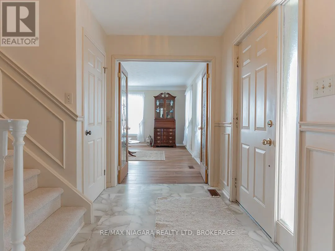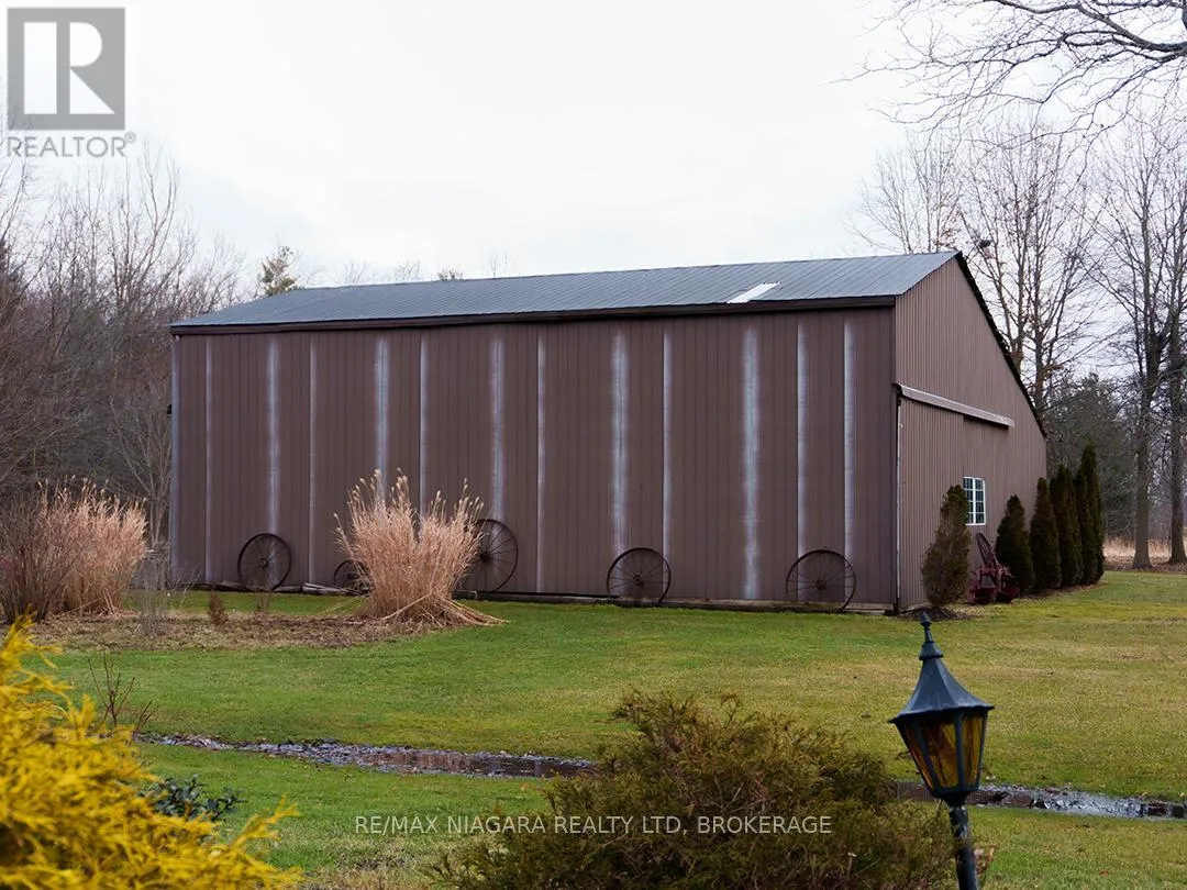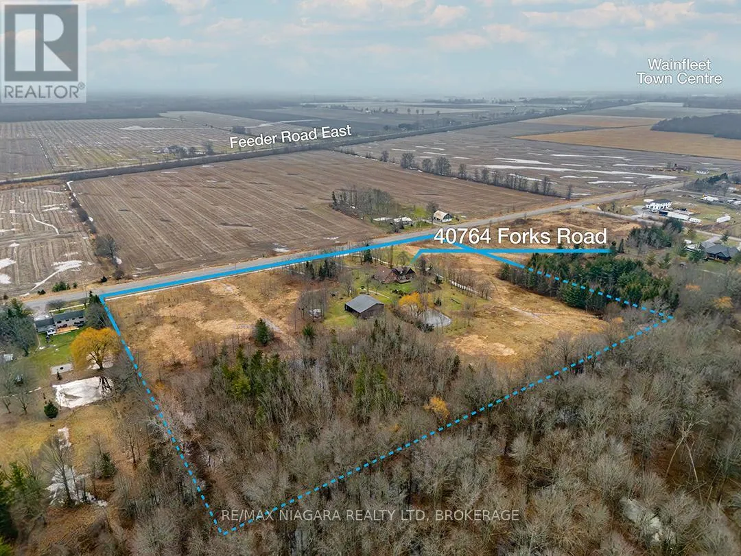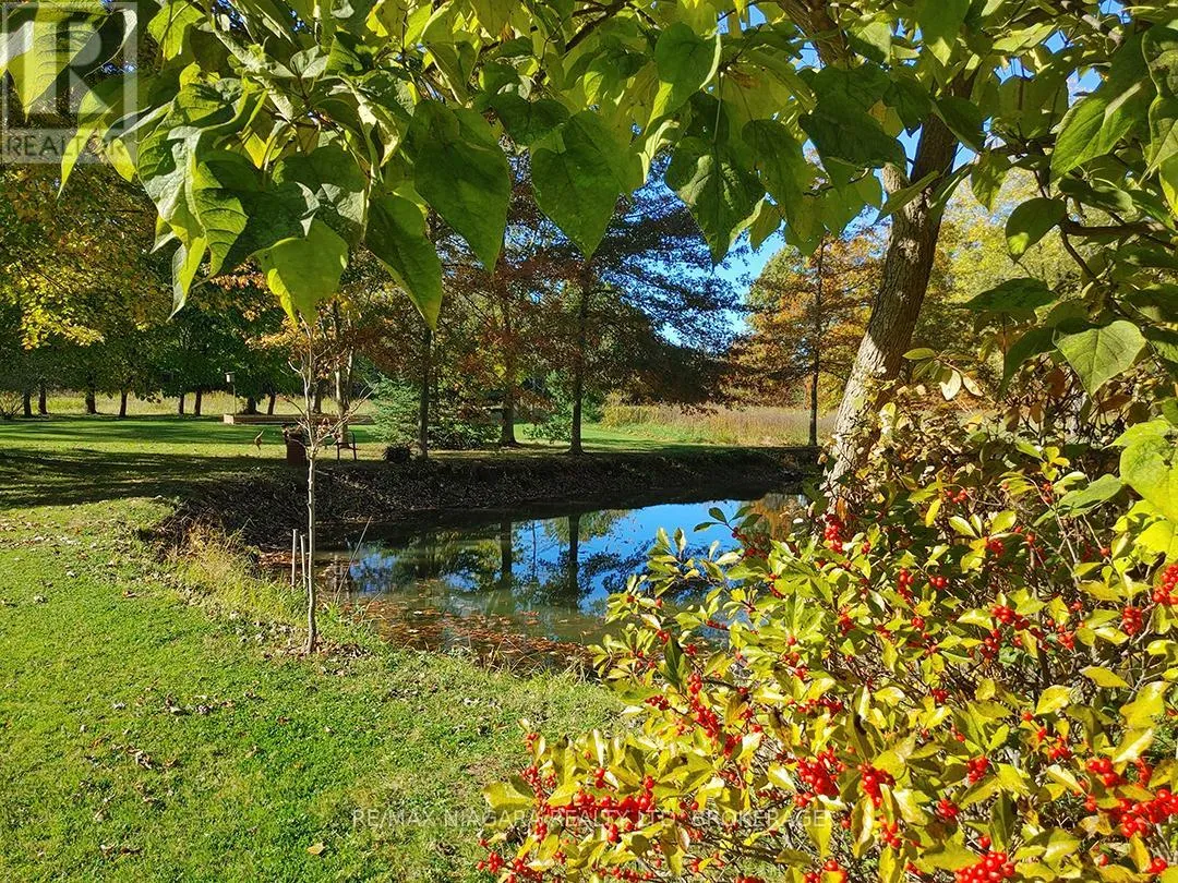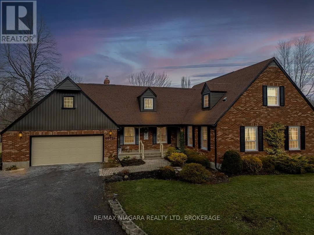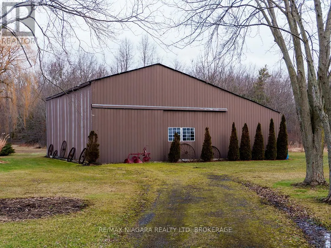 Cross Streets: O'Reilly's and Forks Road. ** Directions: West of O'Reilly's Road. Set back from the road on a curved, tree-lined driveway, this custom built, one-owner brick home offers privacy, space, and a true country setting on 11.9 beautifully treed and landscaped acres. Offering 2,200 sq. ft., this 4 bedroom, 2 bath home is surrounded mature trees, lawn, manicured perennial gardens and a large pond. An interlock walkway leads to the covered front porch and the main entrance to this well maintained home. A large foyer welcomes you to the main floor living room and family room. The family room is anchored by a full brick, floor-to-ceiling fireplace with a wood-burning stove insert and wide hearth, creating a warm and inviting focal point. The kitchen features wood cabinetry, classic subway tile backsplash, ample counter and storage space, and a large bay window with views across the property, along with room for a breakfast table. A main floor laundry room provides convenient access to the backyard deck. A generous bedroom with double closet and a four-piece bathroom completes the main floor. A grand staircase leads to the second level and 3 additional bedrooms, including one with a walk-in closet and ensuite privilege with the full bathroom featuring a skylight over the tub. Dormer windows add character and natural light throughout. The full basement is bright and offers excellent potential for future finishing. Many recent updates including flooring, siding, fascia & soffits. Out back, the 50' x 50' workshop is a standout feature, complete with hydro and water supply-ideal for hobbyists, trades, or serious storage needs. The rural setting is balanced by a central location, making commuting to both south and north Niagara, as well as Haldimand & Hamilton, straightforward and convenient. A rare combination of land, privacy, and a well-cared-for home, all in one exceptional package. (id:27476)