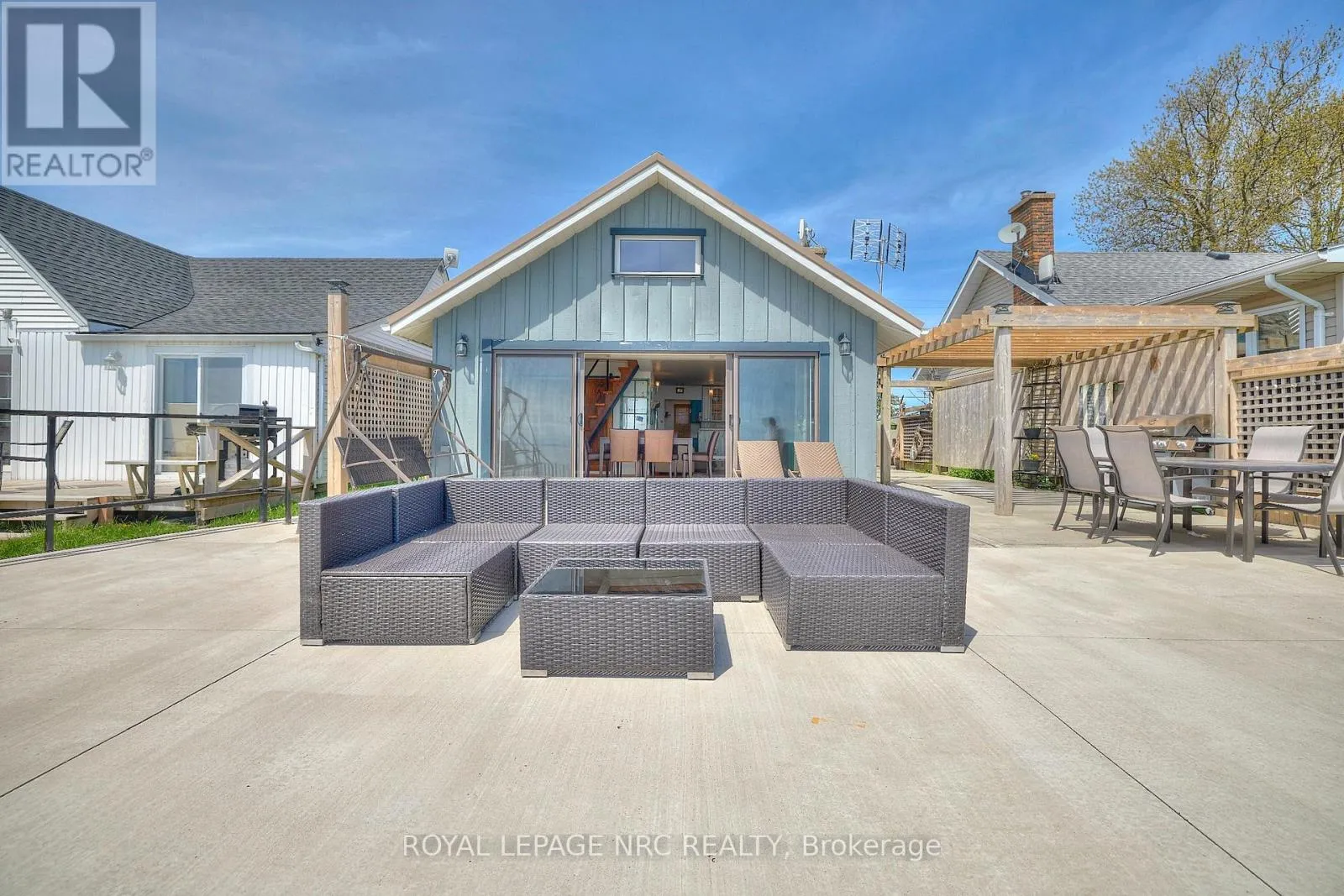 Cross Streets: Lakshore road and Burnaby road. ** Directions: Drive down burnaby road, right on lakeshore road. Location location location. Centre of bay, elevated 15 feet off of a cliff, overlooking the shallowest and warmest of the great lakes, Lake Erie, this cottage cannot be compared to. Solid concrete back and front patio means no maintenance required and giant recreation area for guests, the outdoor living is so unique it can only be experienced. Whether you want to feel the cool breeze off the lake in the hot summer or enjoy a night under stars with a bon fire, anything is possible in this fully winterized cottage. Swim in the lake and experience the true cottage life with direct water access. Invite family and friends over for barbecues, beach days, get a tan near the beautiful pergola, or float on water tubes, the possibilities are endless! Large break wall prevents erosion to the property and there are two levels of concrete with a metal railing and stairs for safety. Natural gas fireplace and heat pump provides low-cost heat and natural well water means no water and sewer charges. The interior of the cottage is the perfect size with giant sliding doors for those lazy summer days, bathroom with a glass shower, large dining area, 2 bedrooms, and a beautiful kitchen. Located 2 minutes from long beach, and 10 minutes from grocery stores, gas stations, fast food restaurants, convenience stores, golf, sky diving, schools, and churches. The cottage is move-in ready with all appliances included, new metal roof (2021), new paved driveway (2022) and 240v amp-plug for EV-charging in the garage This picture-perfect view is remarkable, don't miss your chance to see it! (id:27476)