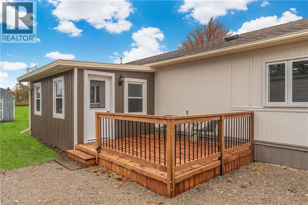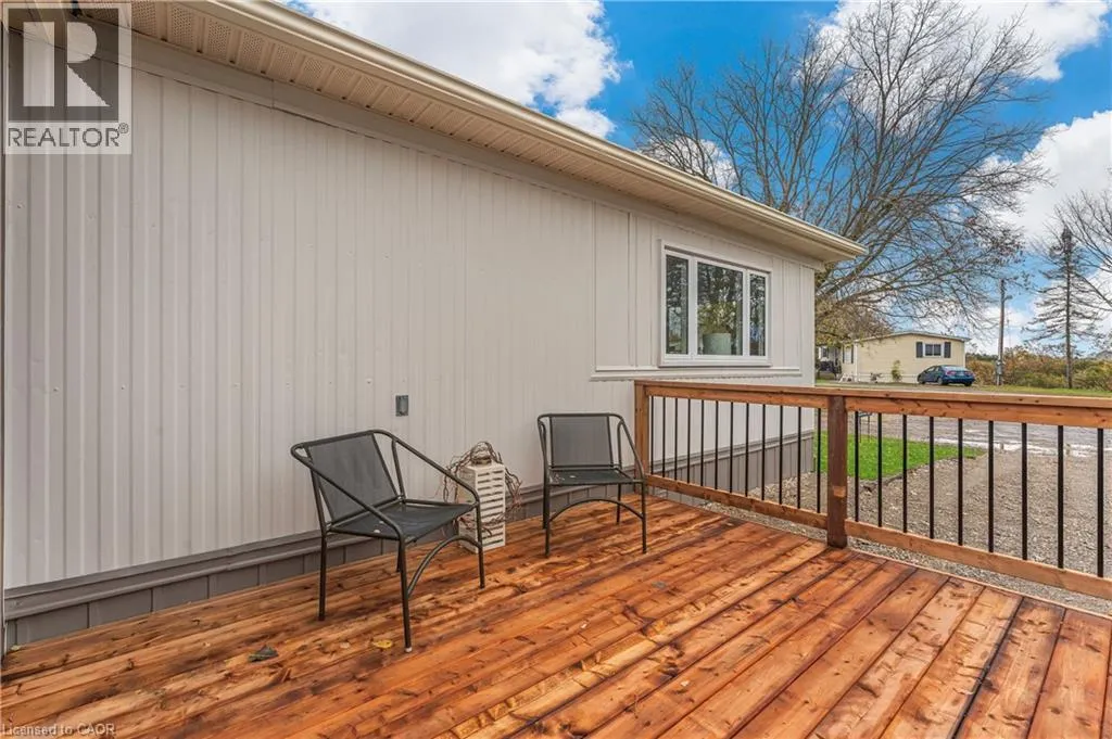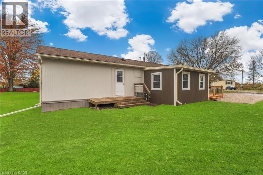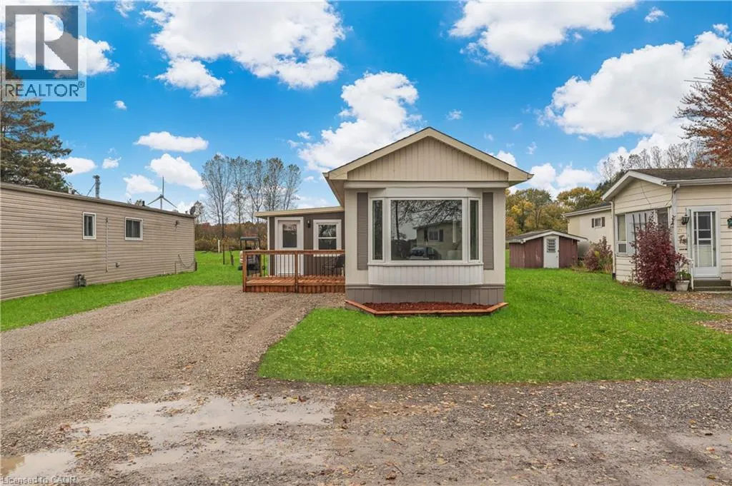 Wellandport Road to Highway 3 Welcome to Ellsworth Acres Mobile Home Community in Wainfleet! This beautifully updated mobile home has been extensively renovated and is move-in ready. The spacious, modern kitchen boasts stainless steel appliances, stylish flooring, new drywall with vapor barrier, and sleek pot lighting. The open-concept kitchen, living, and dining area is bright and inviting, featuring large vinyl/thermal windows and a charming coffee bar. The home includes two bedrooms plus a generous officeâperfect for hosting guests or working from home. The fully updated bathroom features a brand-new walk-in shower, ideal for those with mobility needs. Additional improvements include new PEX water lines, doors, trim, and a brand-new deck for outdoor enjoyment. With parking for two vehicles and a 10' x 10' storage shed, this move-in-ready home checks all the boxes. Monthly fees cover land lease, property taxes, garbage and snow removal, water, and septic services. Ideally situated just a short drive from Dunnville, Welland, and Smithville, this home offers the perfect blend of modern comfort and small-town charm. Note: some photos have been virtually staged. (id:27476)
