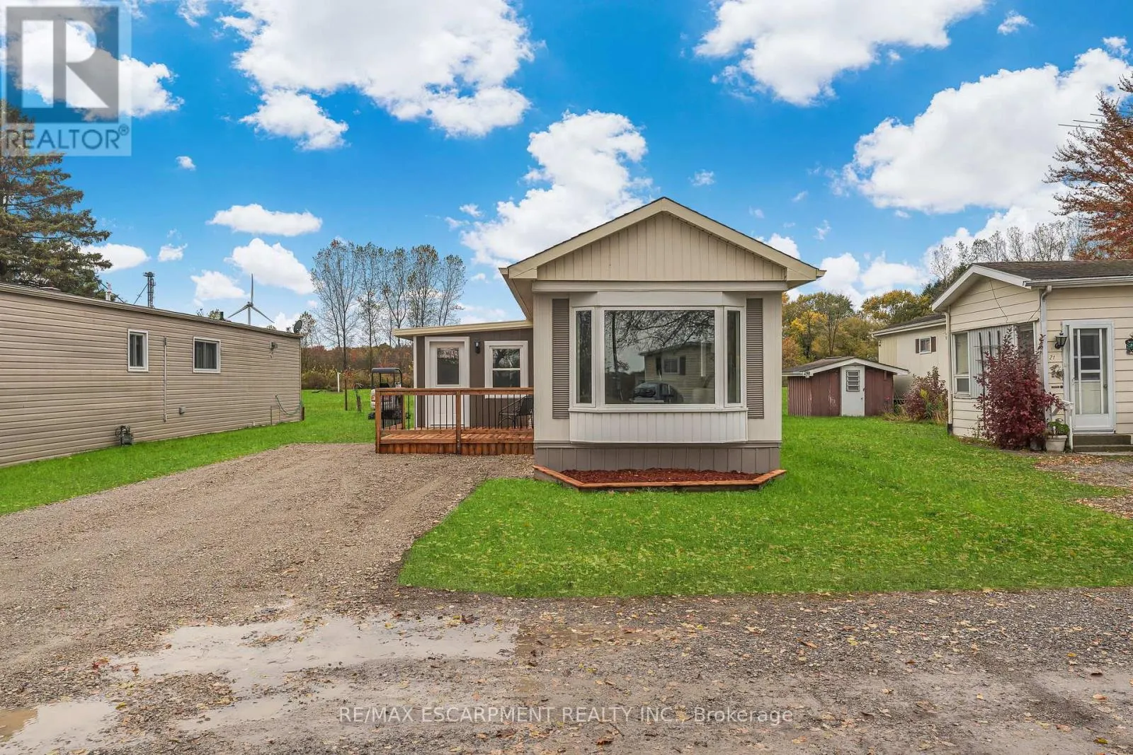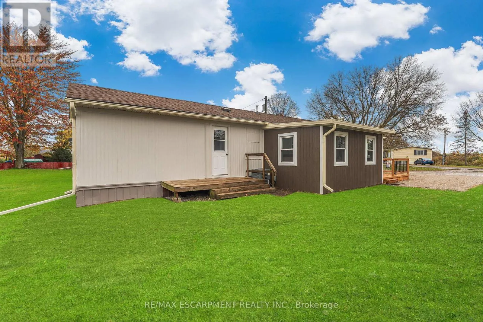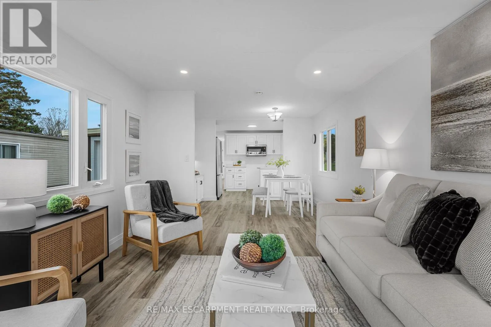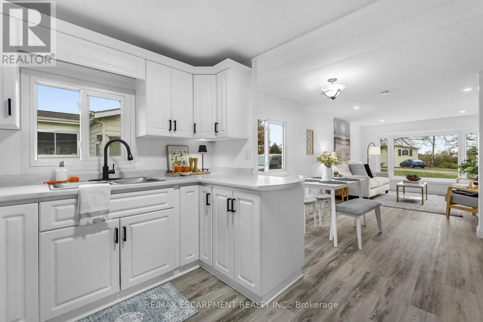 Cross Streets: Wellandport Road. ** Directions: Wellandport Road to Highway 3. Welcome to Ellsworth Acres Mobile Home Community in Wainfleet! This beautifully updated mobile home has been extensively renovated and is move-in ready. The spacious, modern kitchen boasts stainless steel appliances, stylish flooring, new drywall with vapor barrier, and sleek pot lighting. The open-concept kitchen, living, and dining area is bright and inviting, featuring large vinyl/thermal windows and a charming coffee bar. The home includes two bedrooms plus a generous office-perfect for hosting guests or working from home. The fully updated bathroom features a brand-new walk-in shower, ideal for those with mobility needs. Additional improvements include new PEX water lines, doors, trim, and a brand-new deck for outdoor enjoyment. With parking for two vehicles and a 10' x 10' storage shed, this move-in-ready home checks all the boxes. Monthly fees cover land lease, property taxes, garbage and snow removal, water, and septic services. Ideally situated just a short drive from Dunnville, Welland, and Smithville, this home offers the perfect blend of modern comfort and small-town charm. Note: some photos have been virtually staged. (id:27476)