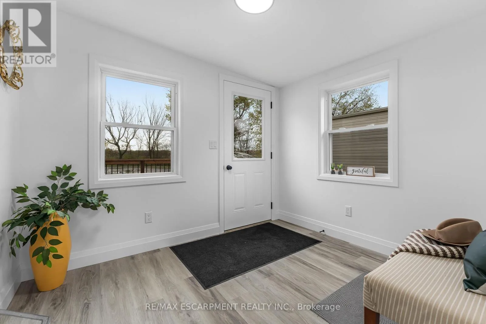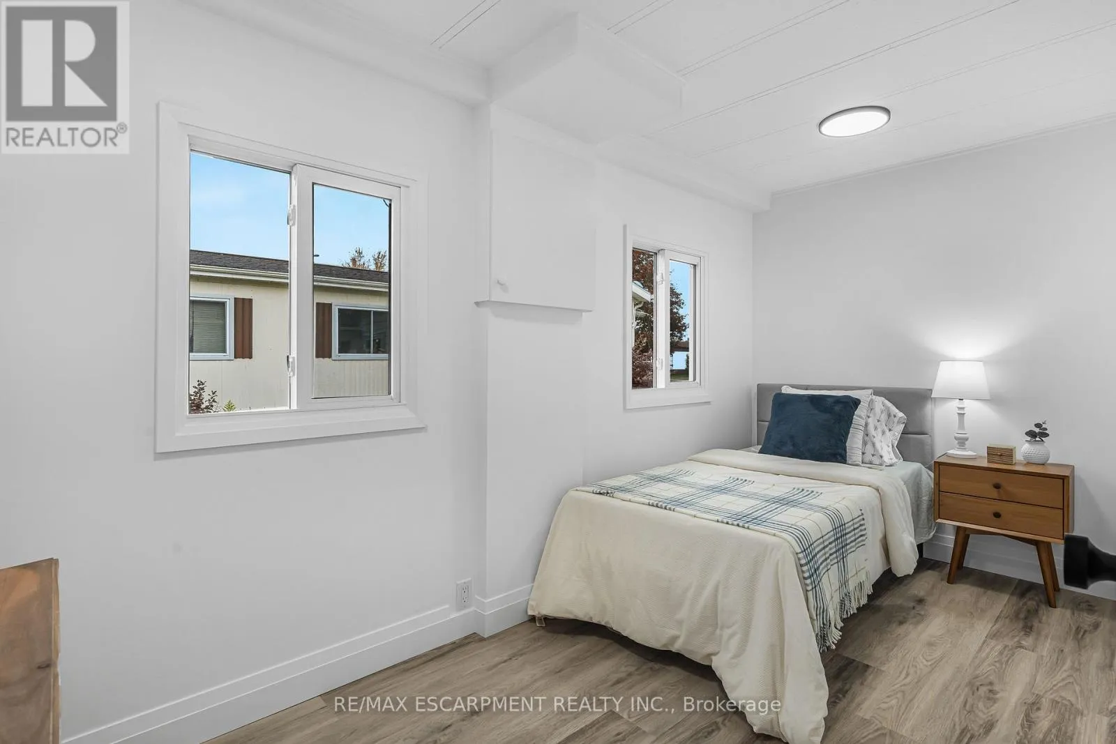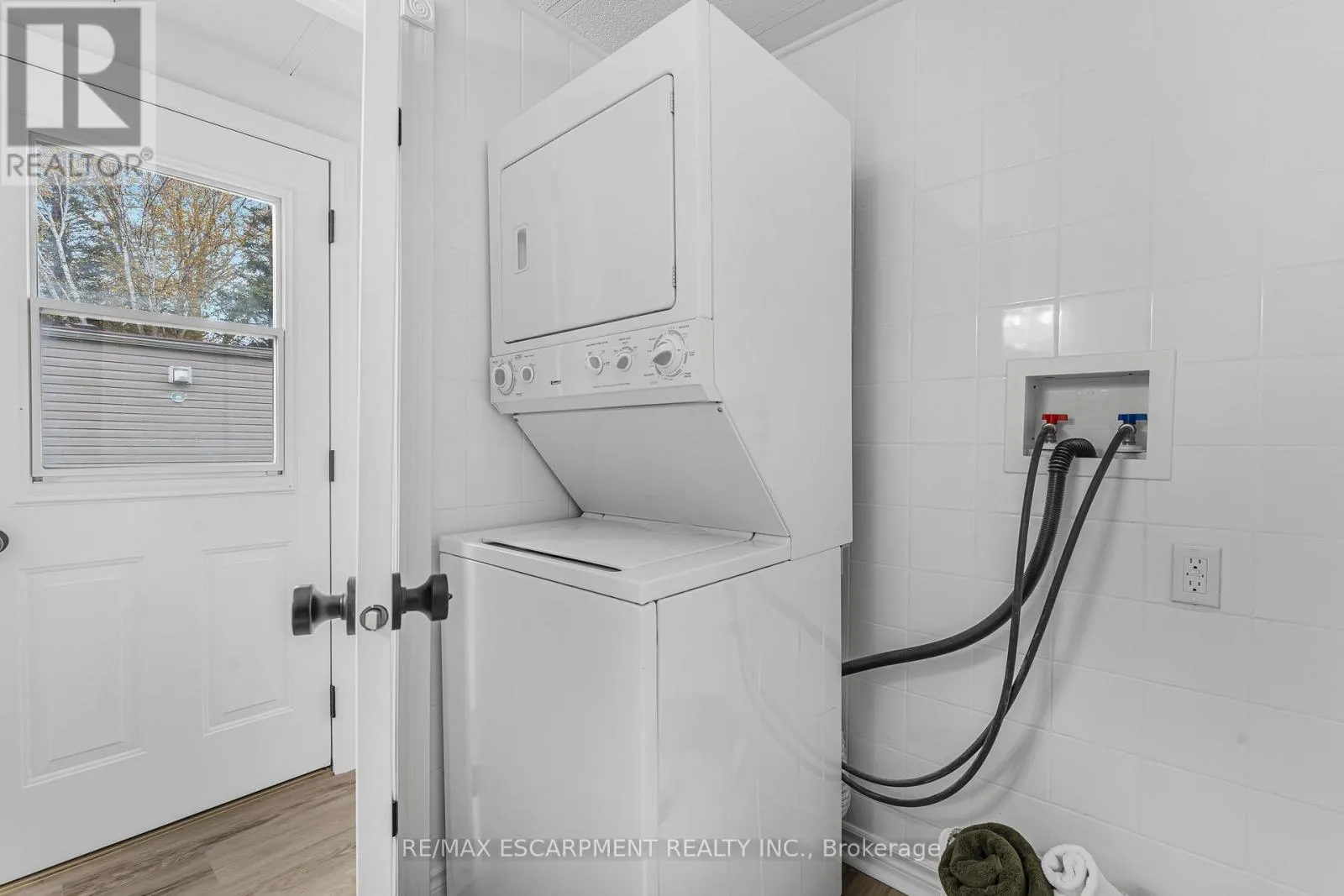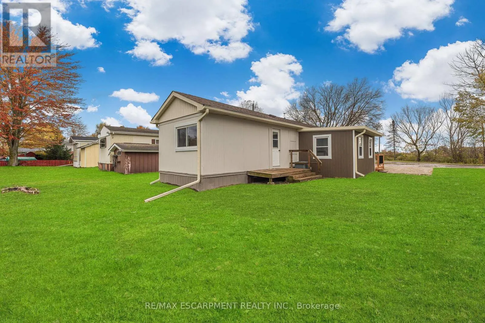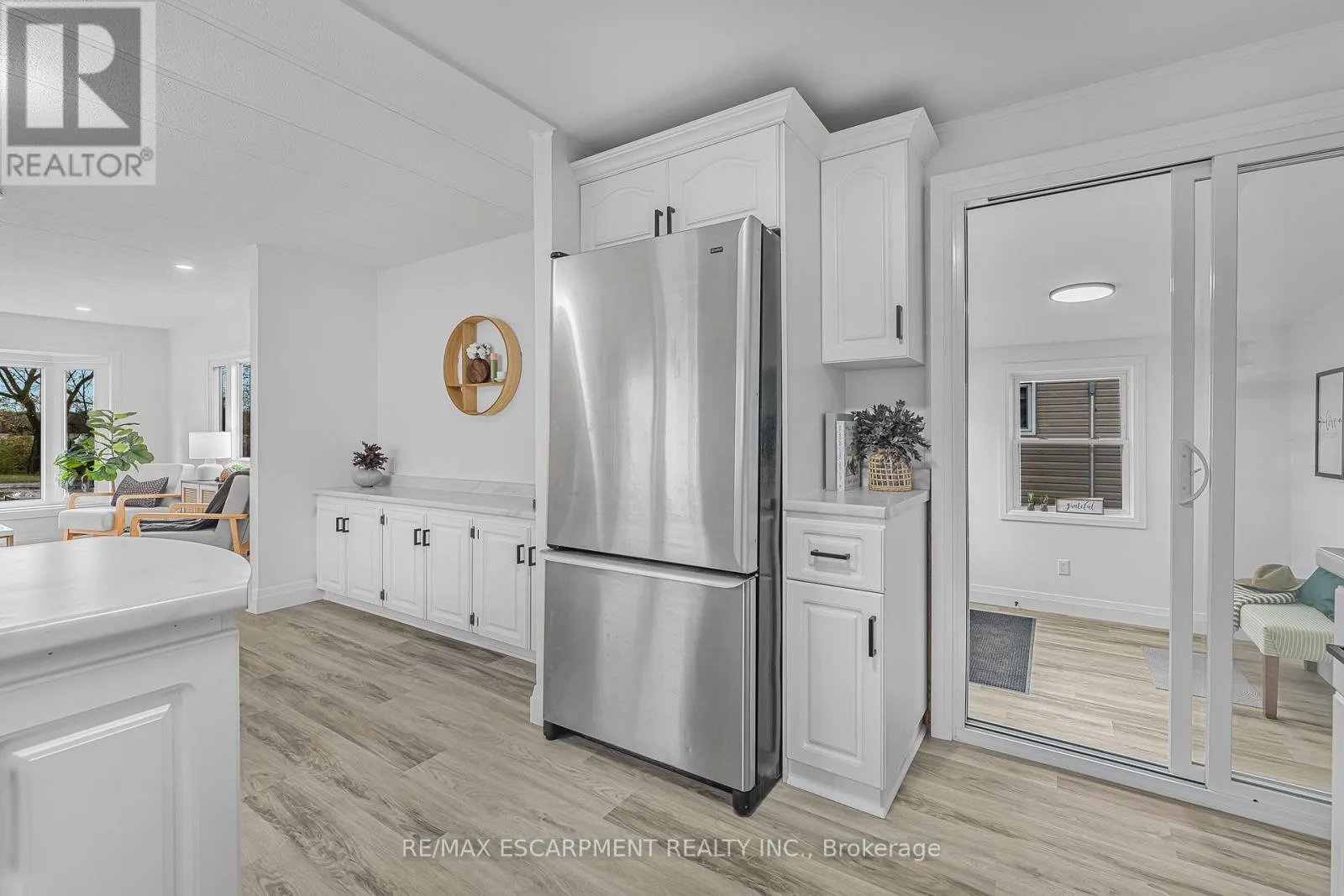 Cross Streets: Wellandport Road. ** Directions: Wellandport Road to Highway 3. Welcome to Ellsworth Acres Mobile Home Community in Wainfleet! This beautifully updated mobile home has been extensively renovated and is move-in ready. The spacious, modern kitchen boasts stainless steel appliances, stylish flooring, new drywall with vapor barrier, and sleek pot lighting. The open-concept kitchen, living, and dining area is bright and inviting, featuring large vinyl/thermal windows and a charming coffee bar. The home includes two bedrooms plus a generous office-perfect for hosting guests or working from home. The fully updated bathroom features a brand-new walk-in shower, ideal for those with mobility needs. Additional improvements include new PEX water lines, doors, trim, and a brand-new deck for outdoor enjoyment. With parking for two vehicles and a 10' x 10' storage shed, this move-in-ready home checks all the boxes. Monthly fees cover land lease, property taxes, garbage and snow removal, water, and septic services. Ideally situated just a short drive from Dunnville, Welland, and Smithville, this home offers the perfect blend of modern comfort and small-town charm. Note: some photos have been virtually staged. (id:27476)