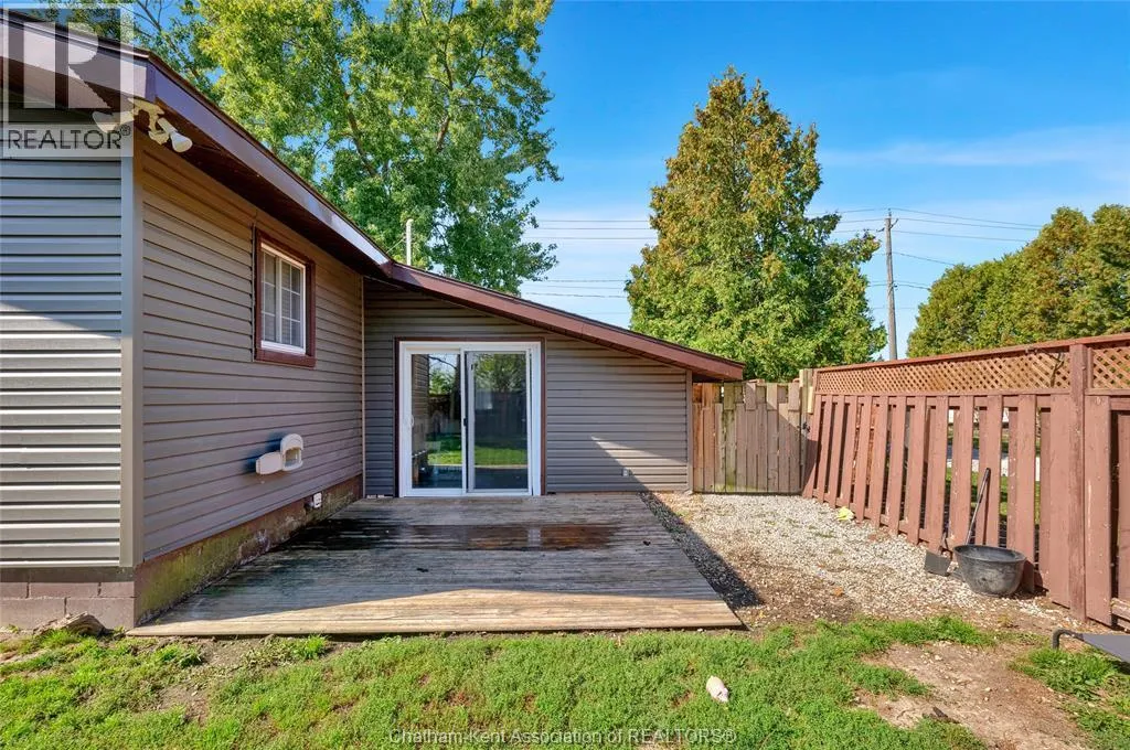 North on Main left on Thomas and turn right on Water st house will be on the right hand side **Charming Bungalow at 120 Water St, Wallaceburg, Ontario** Welcome to 120 Water St., a beautiful 3-bedroom, 1-bathroom bungalow nestled on a serene, dead-end street in Wallaceburg. Perfectly situated across from the picturesque Sydenham River, this home offers tranquility and comfort, with parks and schools just a stone's throw away and easy access to all your shopping needs. Step inside to discover a home with great curb appeal, featuring an updated kitchen and an open-concept living and dining area, perfect for entertaining or cozy nights in. The bathroom is recently updated, and the spacious master bedroom provides a relaxing retreat. The former garage has been transformed into a fantastic bonus room, ready to accommodate your lifestyleâwhether you envision a gym, studio, or additional living space. The fully fenced backyard offers privacy and a sense of seclusion, making it an ideal sanctuary for relaxation or play. This home is the perfect choice for first-time buyers or retirees seeking easy living in a charming community. Discover the beauty and convenience of 120 Water St.âschedule your visit today and experience this gem for yourself! (id:27476)