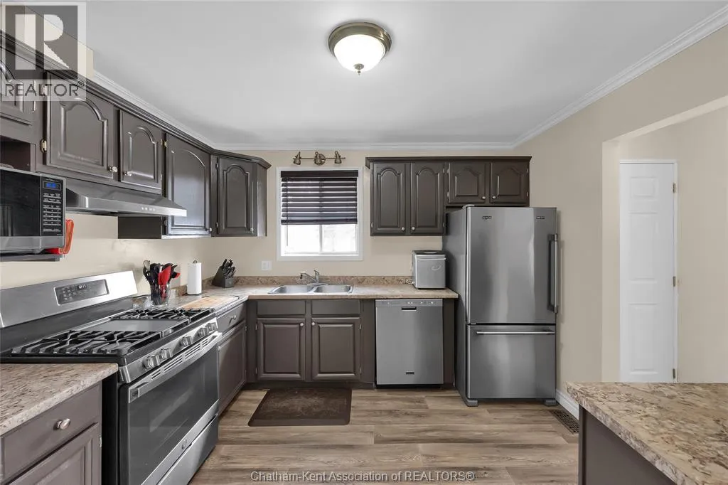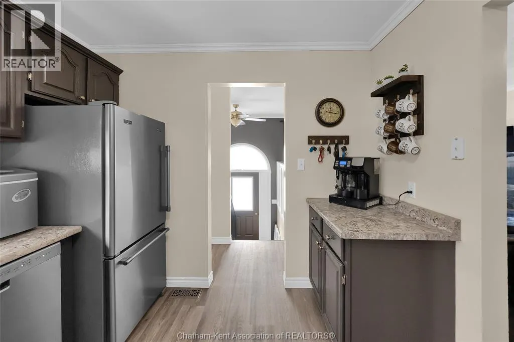 Hey House Hunter, welcome to this nicely updated 5 bedroom, 2 full bathroom, semi-detached gem in a desirable neighbourhood in Wallaceburg. This home is perfectly situated in a great location just a short walk from schools, parks, restaurants, and shopping. On the main level youâll find a comfortable living room, nicely laid out kitchen with gas stove (could have electric stove instead), 3 good sized bedrooms and a full bathroom. On the lower level, thereâs a spacious family room, 2 more bedrooms (one is currently outfitted for a hair salon), a full bathroom, and a great utility/storage area with a grade entrance out to the back yard. Speaking of the back yard, youâll be happy to entertain in your easy-to-manage, fenced in yard which features raised garden beds, screened in gazebo with hot tub, and a 10Ã16 workshop with a 6Ã8 addition for your lawn care equipment. Thereâs plenty of parking in the neat and tidy concrete driveway (new in 2022) complete with large gate to pull through to the back if needed. There is also a large gate on the side of the property so getting your boat or trailer in the backyard is easily done. Updates include â flooring 2022, appliances 2020/21, furnace and a/c 2015, front windows, 2017, fence new in 2021, back shed new in 2022, owned hot water tank 2025. Roof was done in 2014. Donât wait too long to book your appointment or this one will be SOLD! *gas fireplace in basement is not in working order and the current owners have never used it* (id:27476)