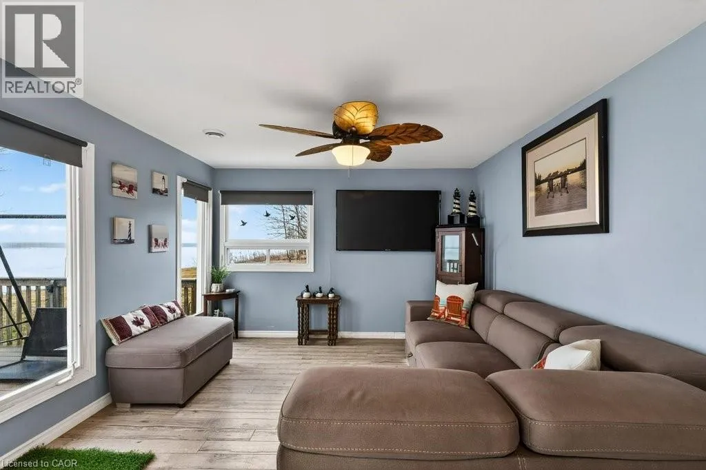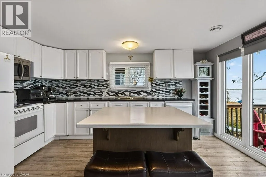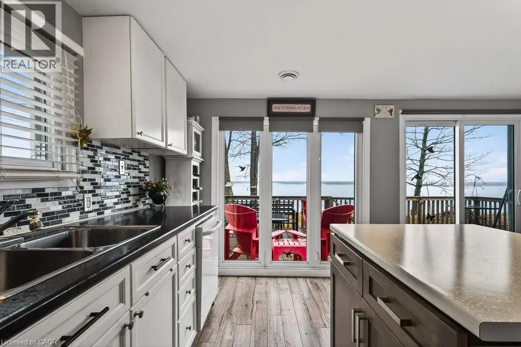 See map URL,Please note if using google maps the pin location is not correct, it is too far west. there is a green garbage bin at the end of the laneway, also a number marker for 1112-1118.Property might be under Port Dover or Sandy Cove in some GPS Private and secluded location on Lake Erie! Cottage life awaits a new owner to make many new memories! Family sized cottage with 2.5 bedrooms, and 1.5 bathrooms, large eat in kitchen and living room with tons of lake facing windows. Large deck on the front and back allows many options to escape or chase the sun! Many updates and improvements have been completed over the years with full shore protection completed 2021 with a walkable ramp to the base and a few large stepping blocks to access the water. Ready to enjoy the morning sunrises, some summer swimming, and fall/winter sunsets, you have found it? Approx. Ages of Updates include Furnace, Siding, most windows, and shingles 2017. (id:27476)